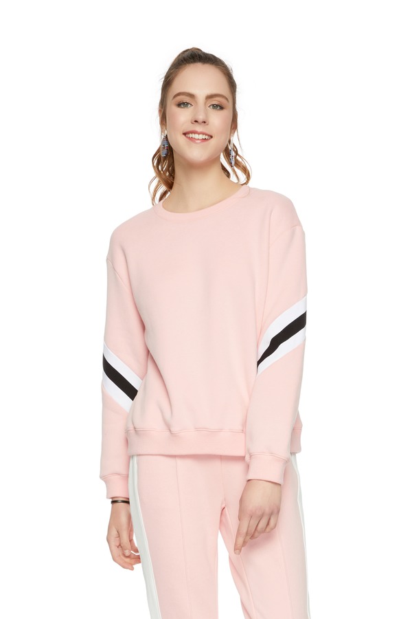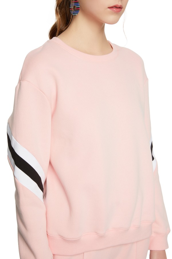 EVA OUXIU伊华欧秀 条纹饰粉色套头卫衣 6081