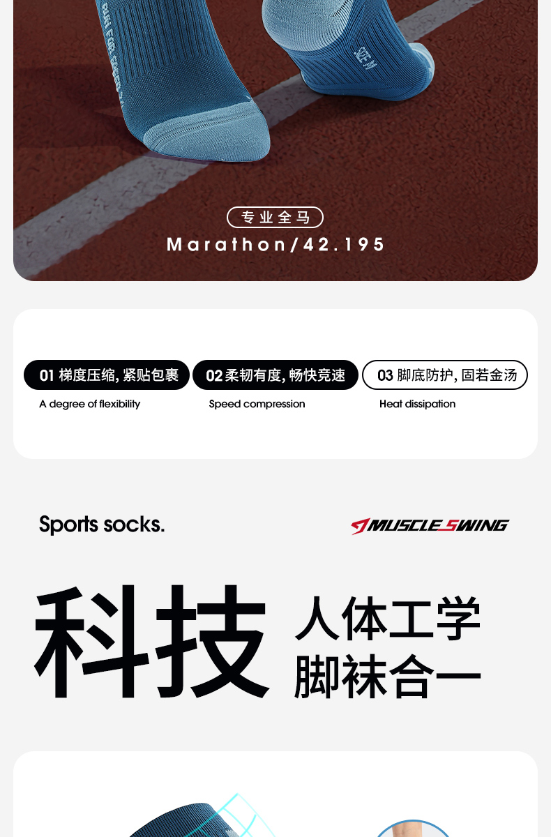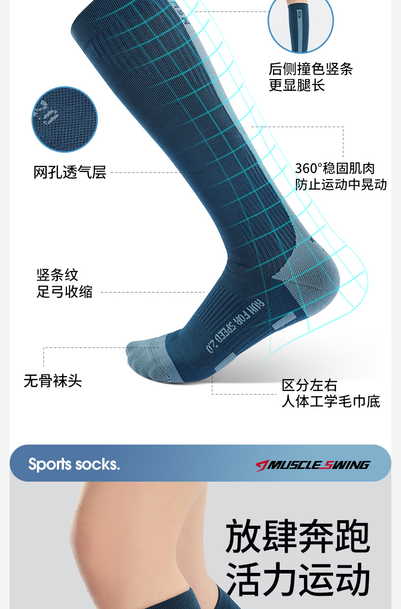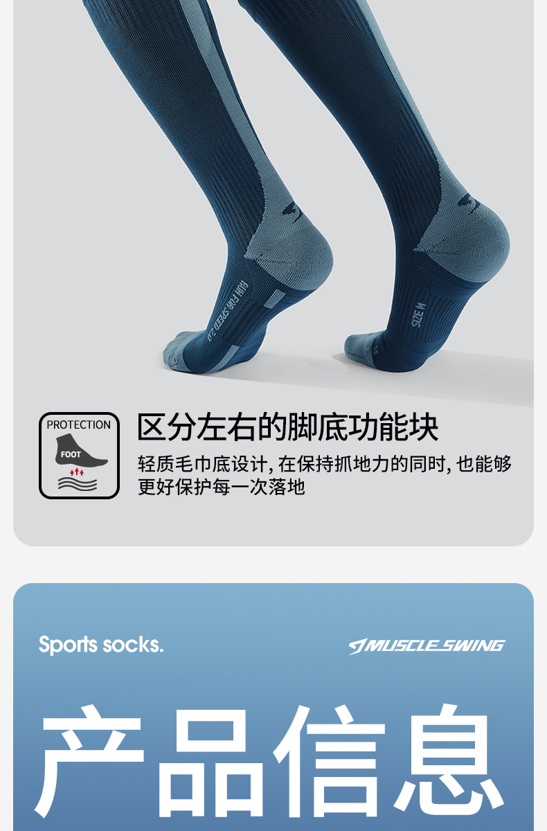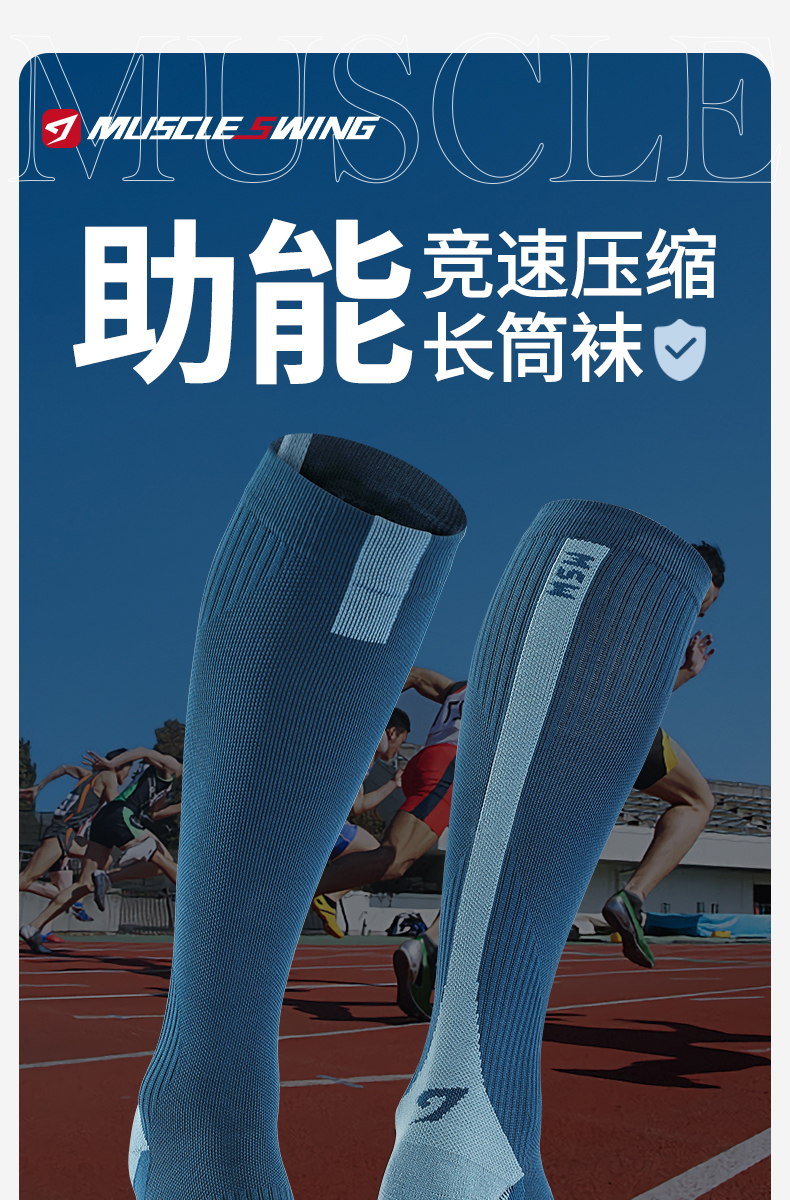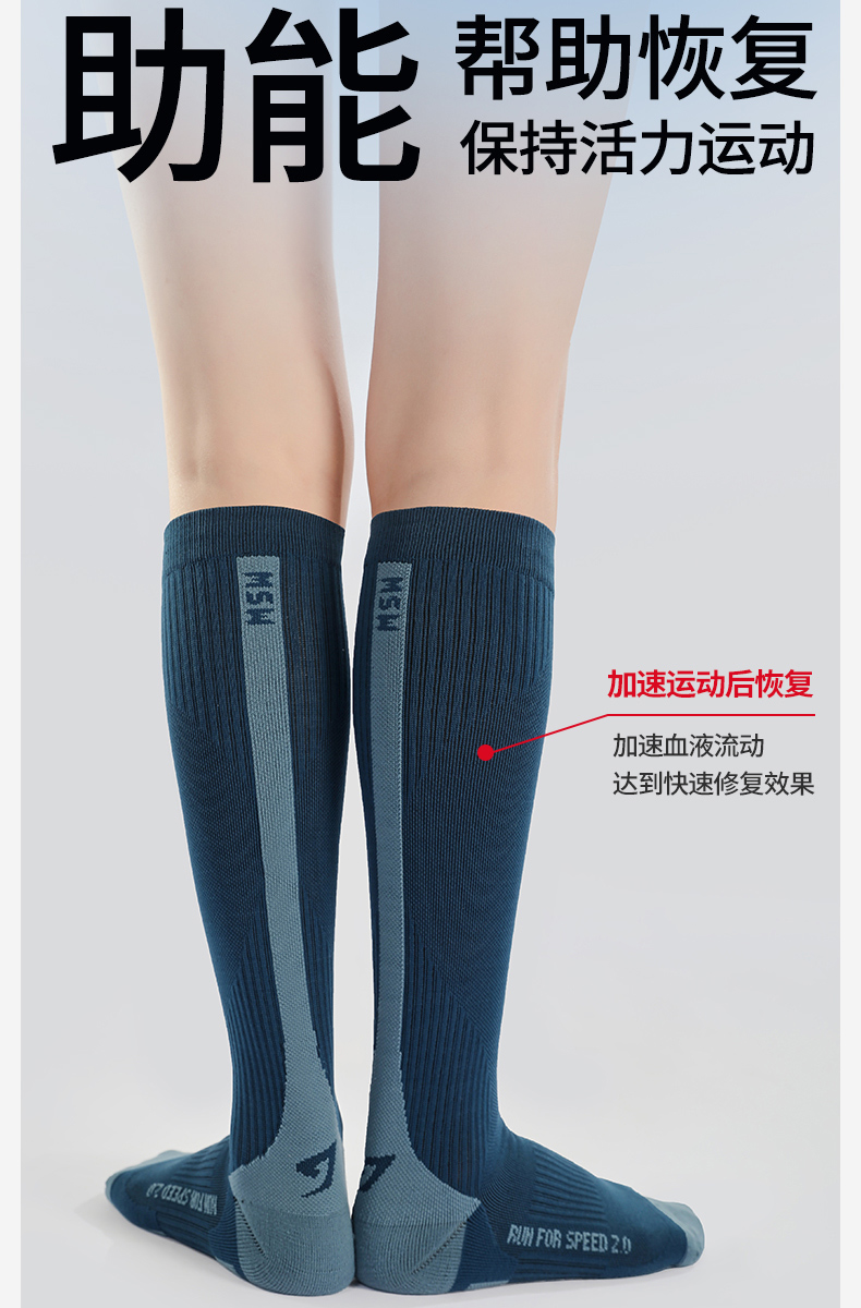 肌动720助能长筒压缩袜男专业马拉松跑步袜速干越野骑行毛巾底运动袜