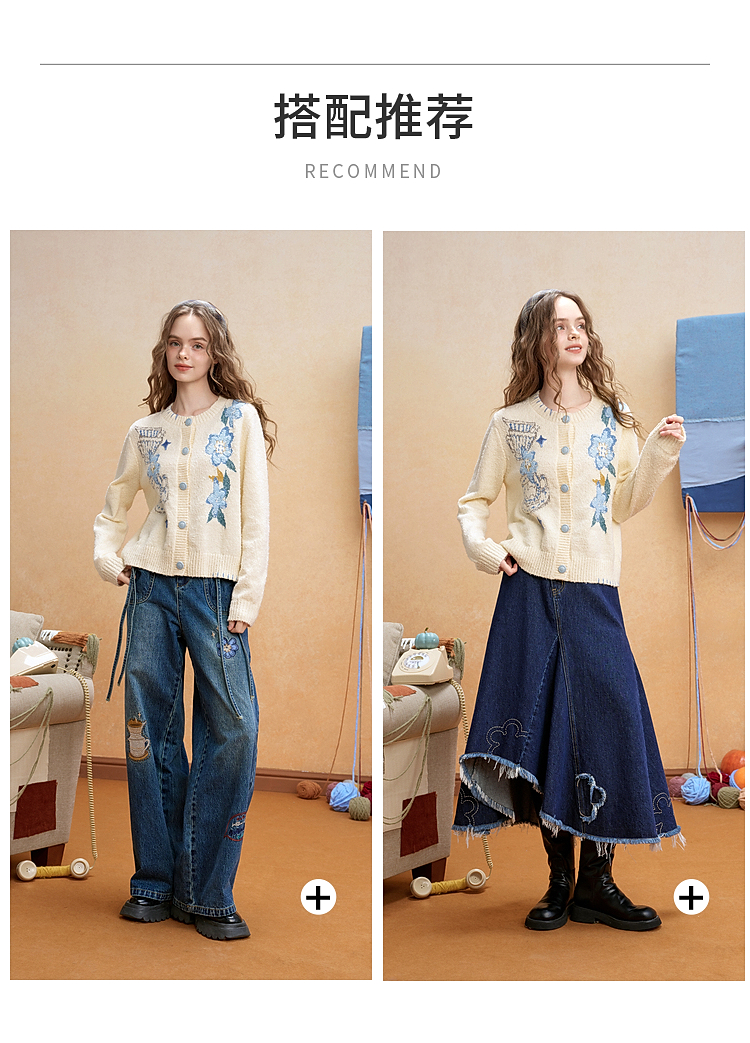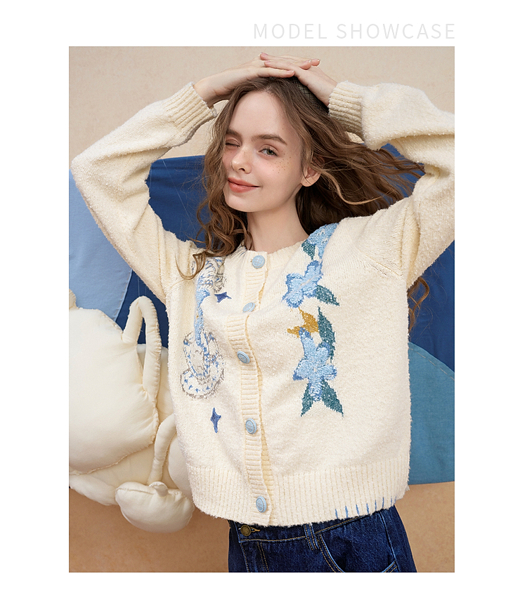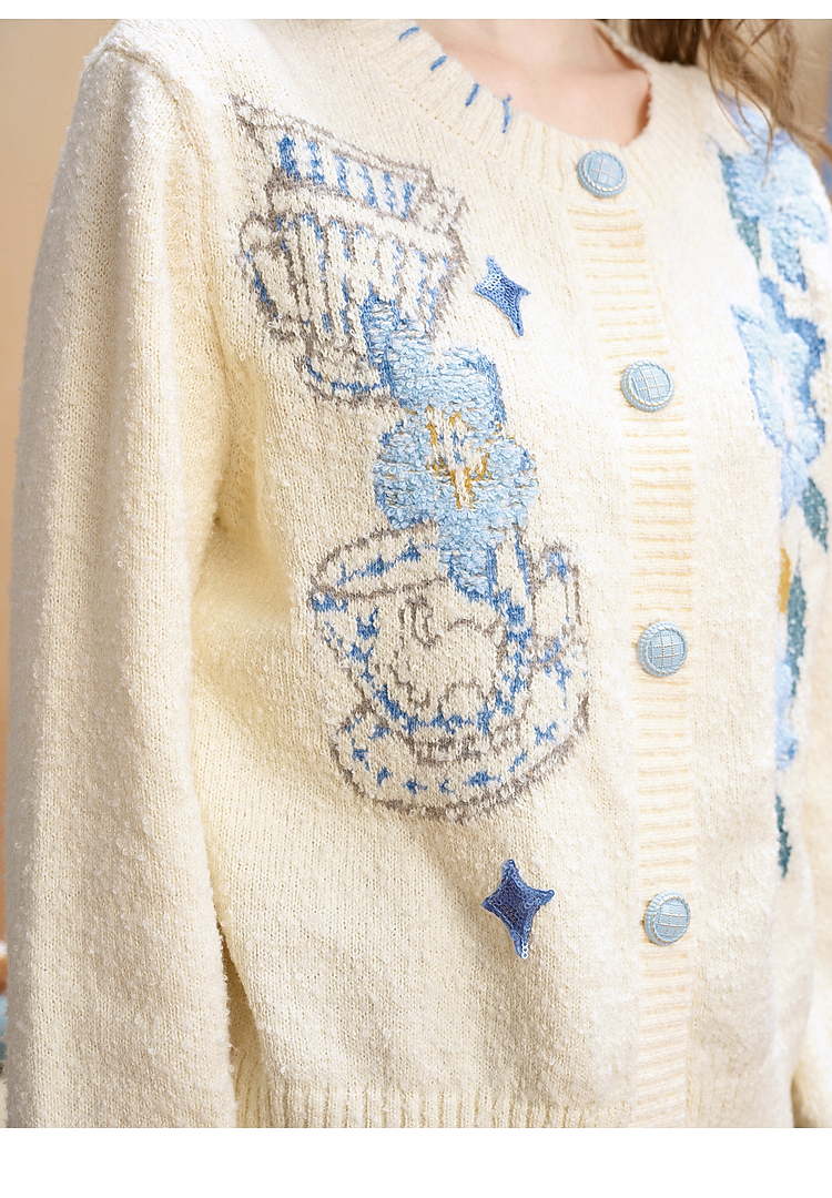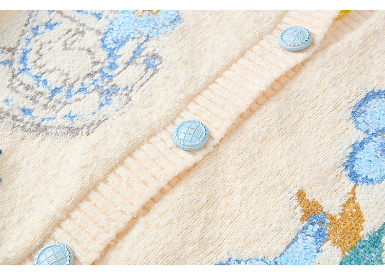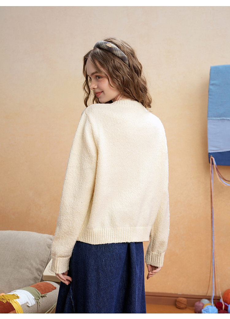 两三事 融雪之时 2025冬季新款甜美提花刺绣毛衣开衫女宽松