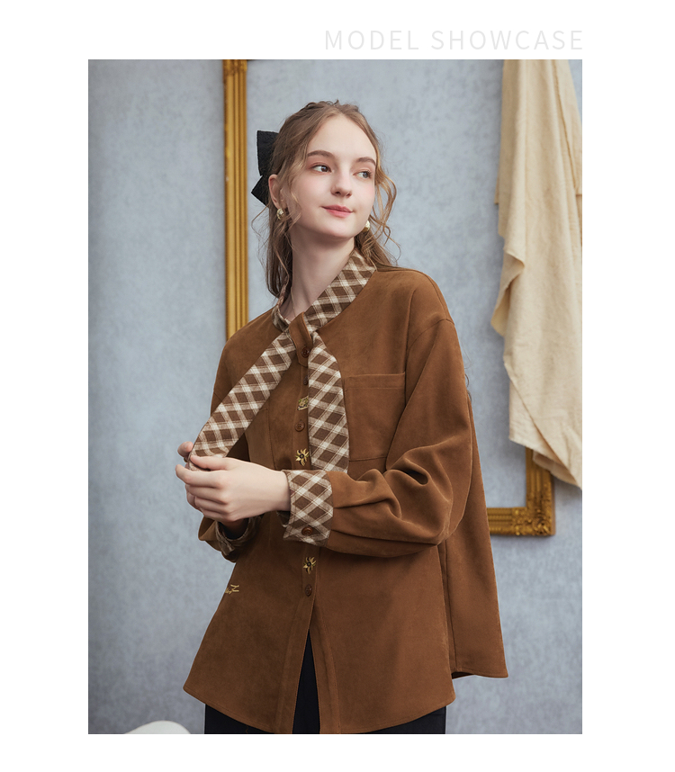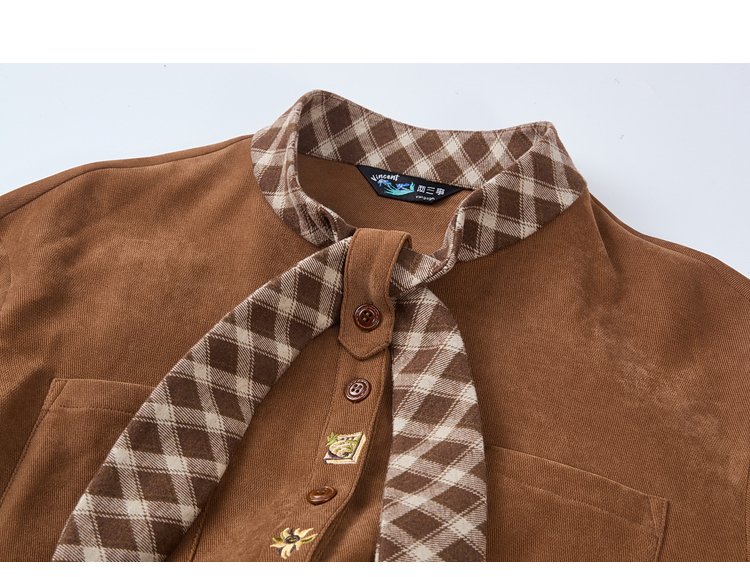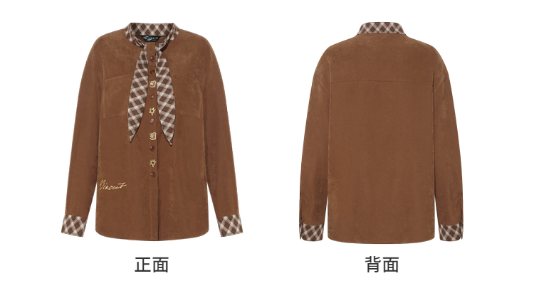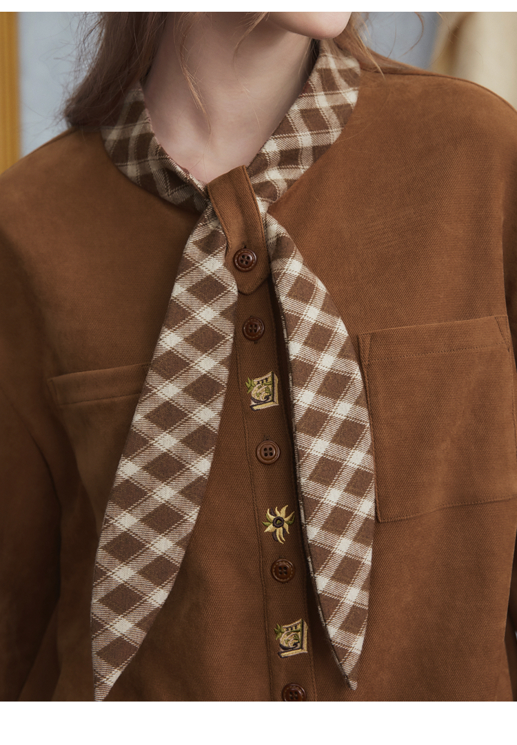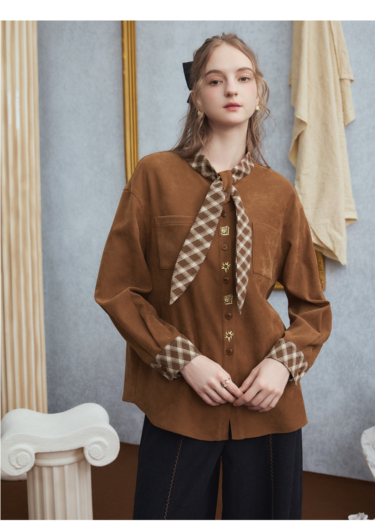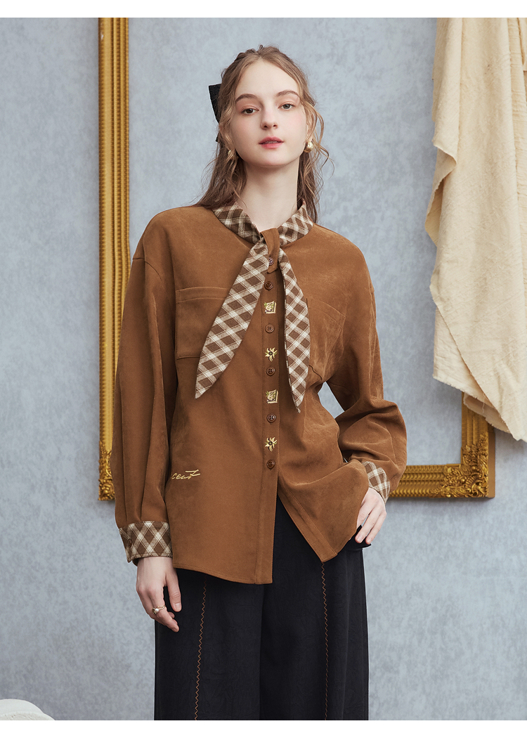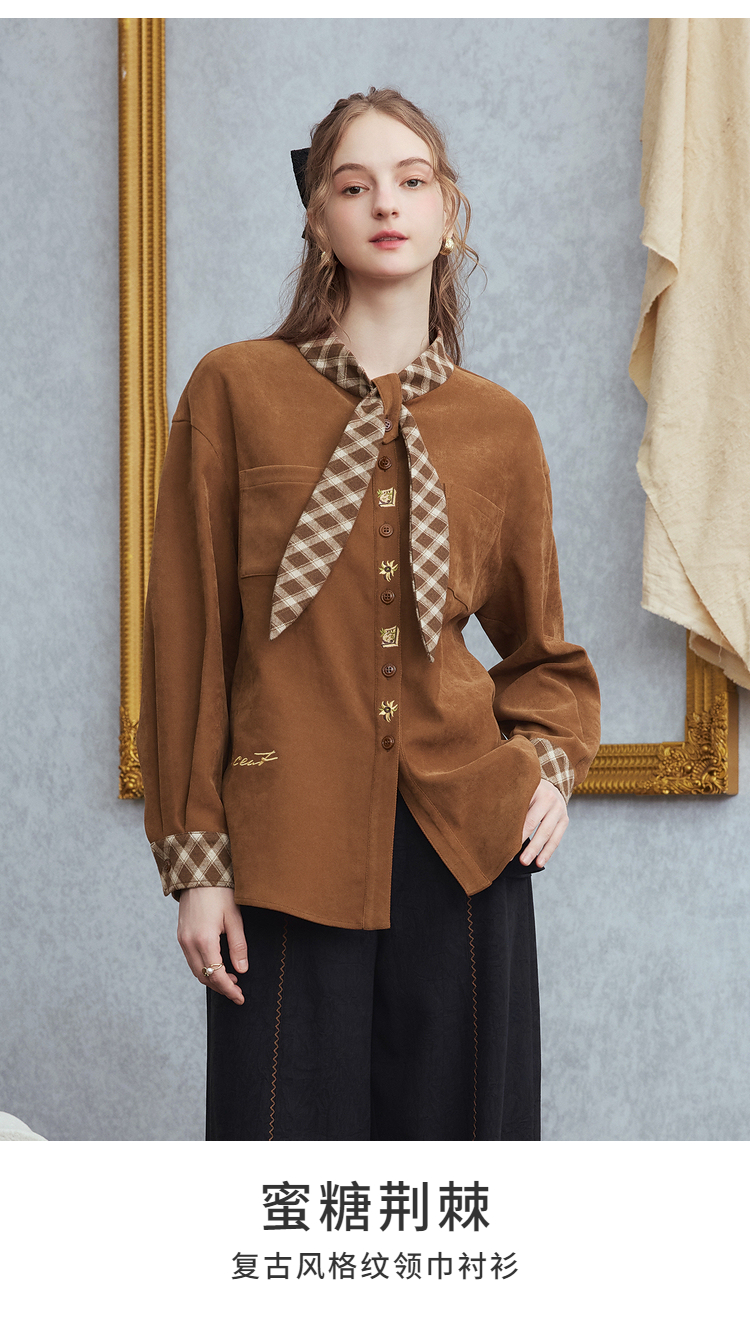两三事梵高文艺 蜜糖荆棘 2025冬季新款格子领带刺绣长袖衬衫女