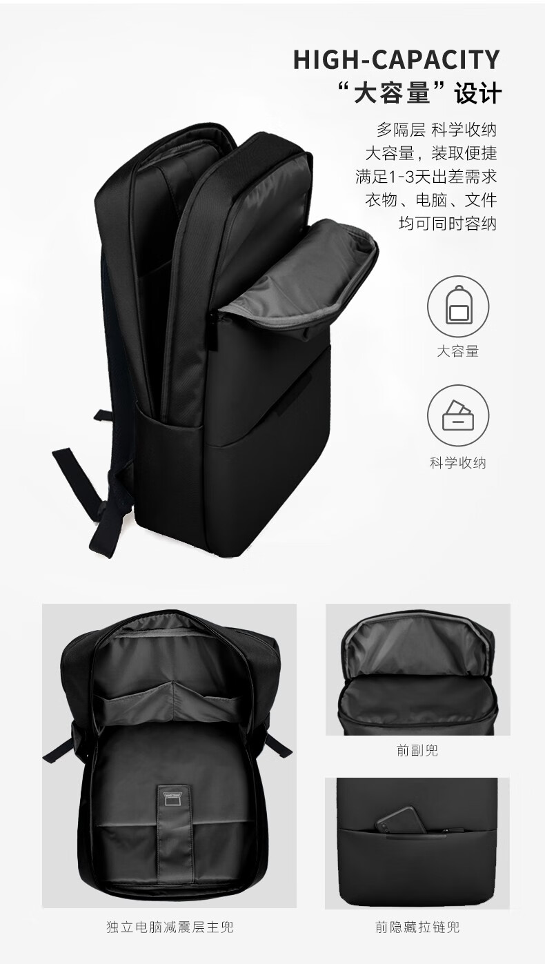 凯亚仕(KIYERSY)极简都市多功能双肩包KYS-B8905 黑色