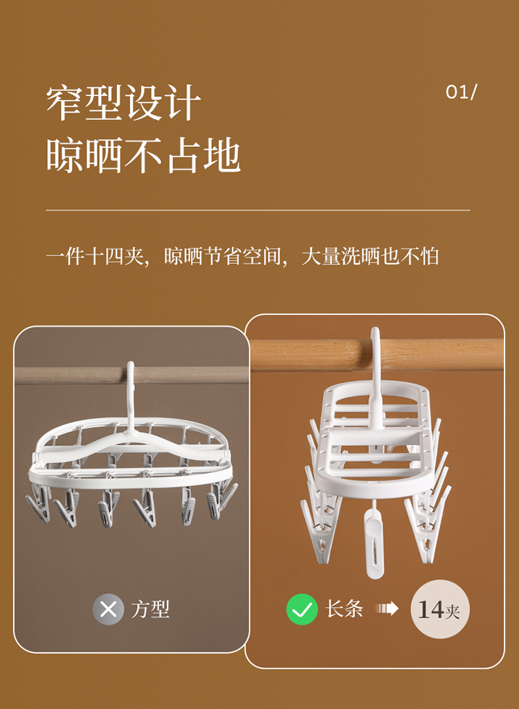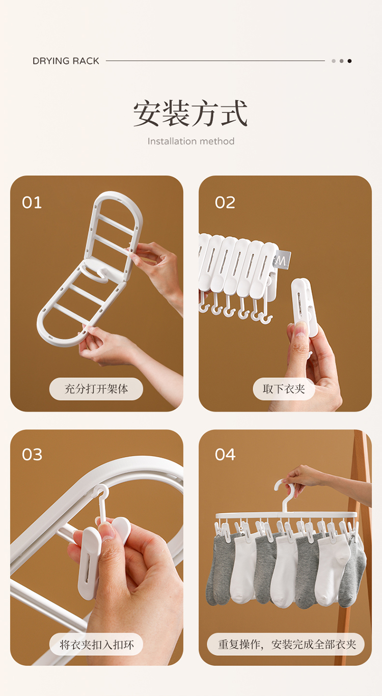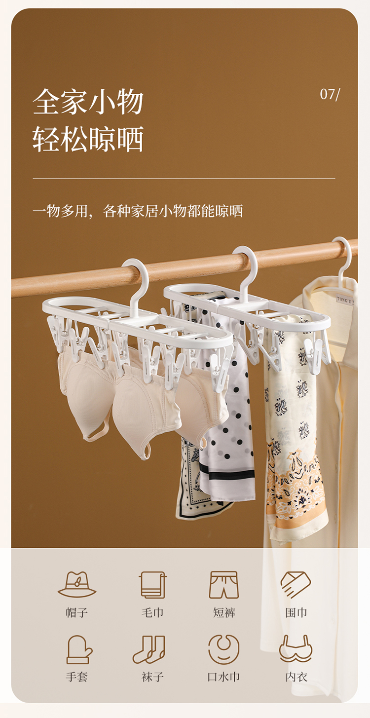FaSoLa折叠晾晒架多夹子家用晾袜子内衣神器多功能阳台防风晾衣架