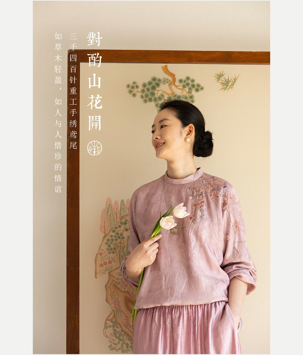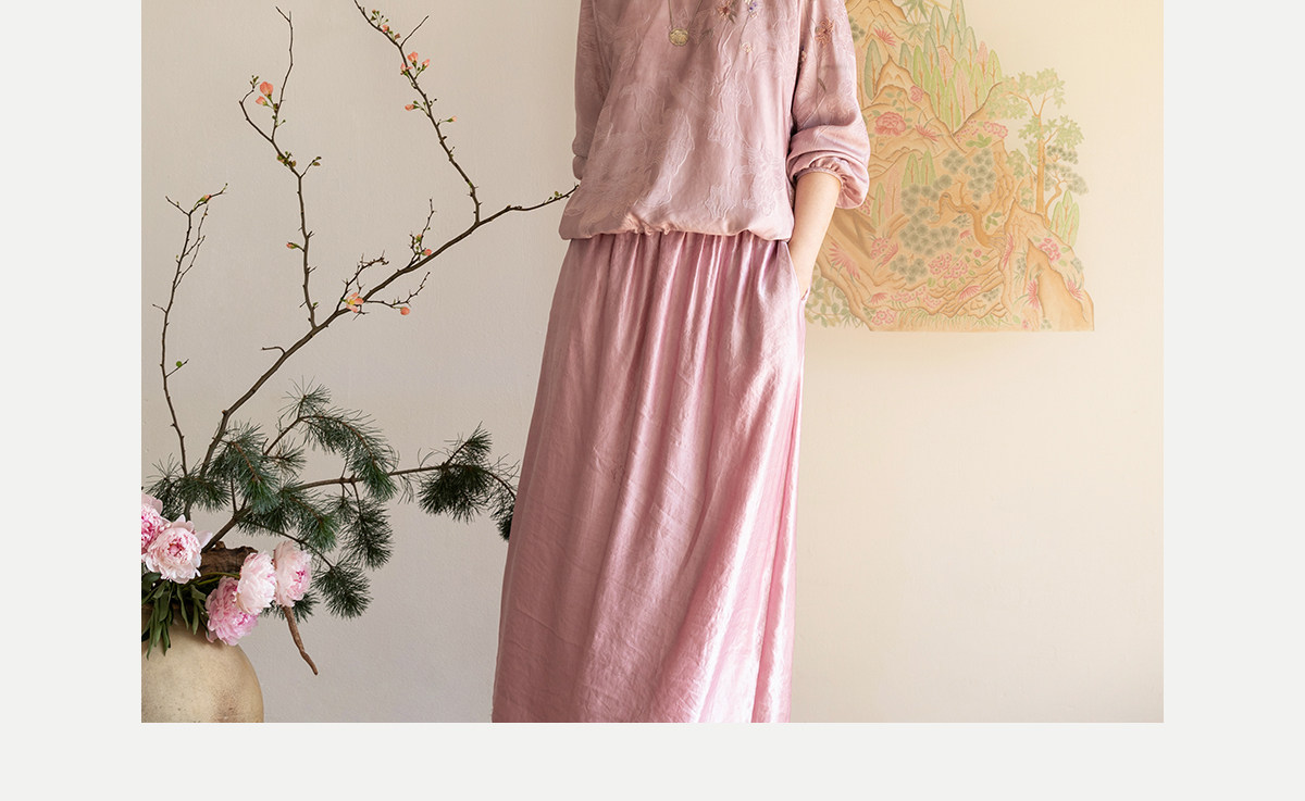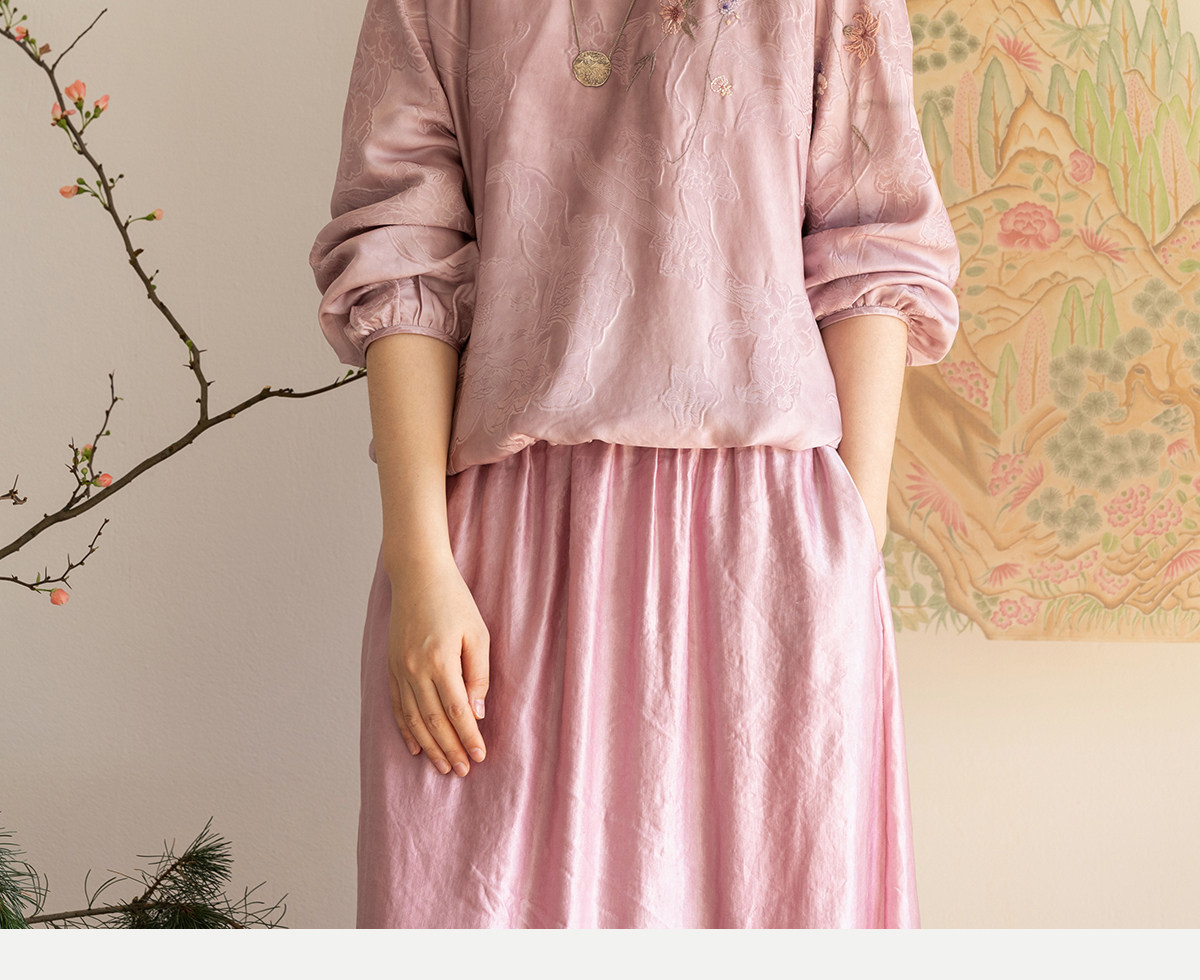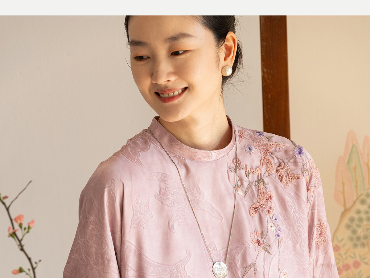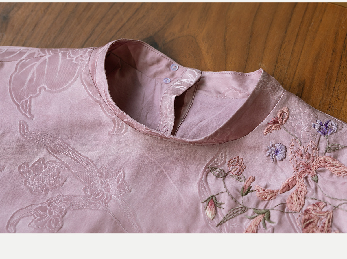 牧衣游原创 24姆米重磅桑蚕丝混纺重工手绣小衫宽松圆领套头 禾时