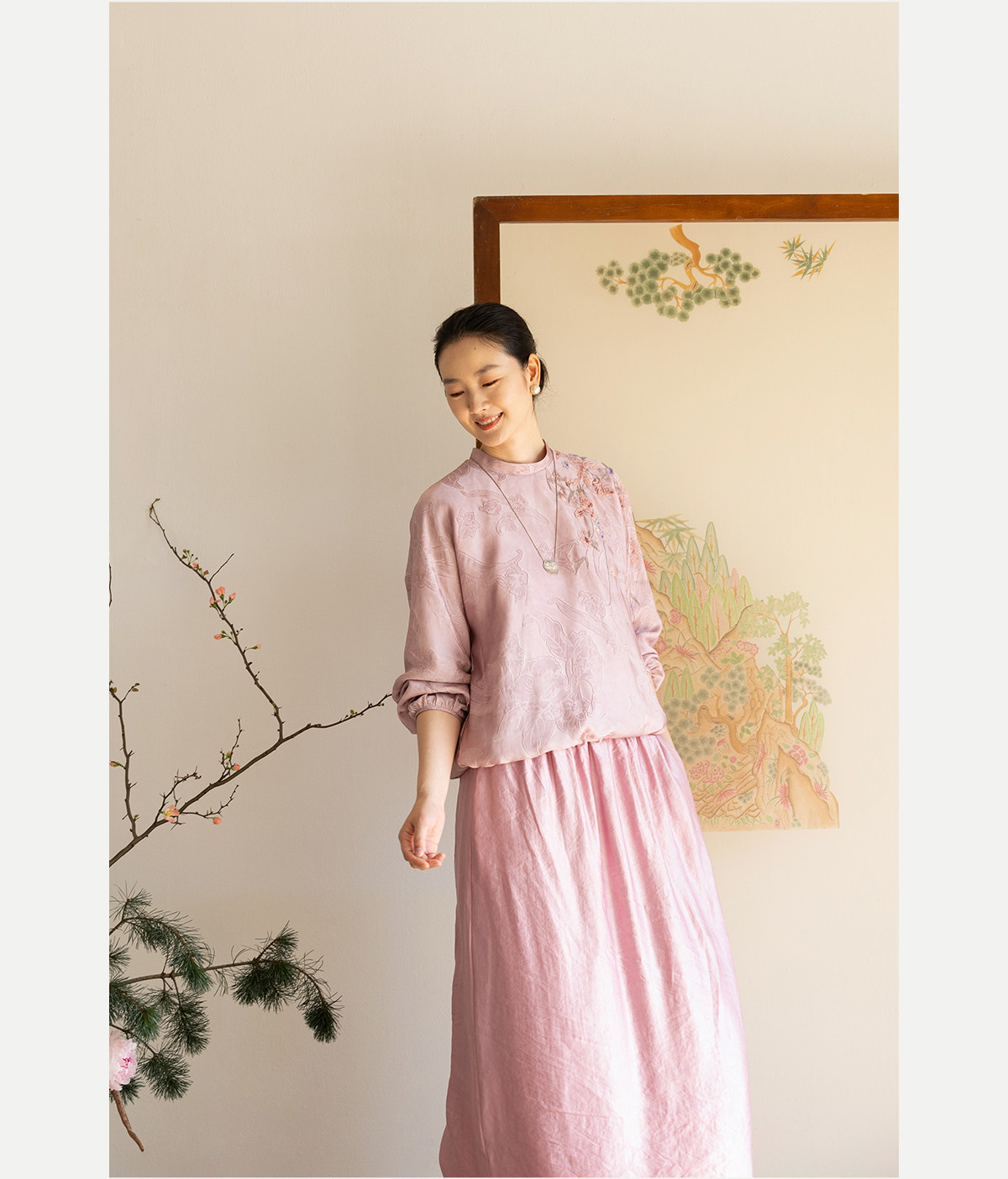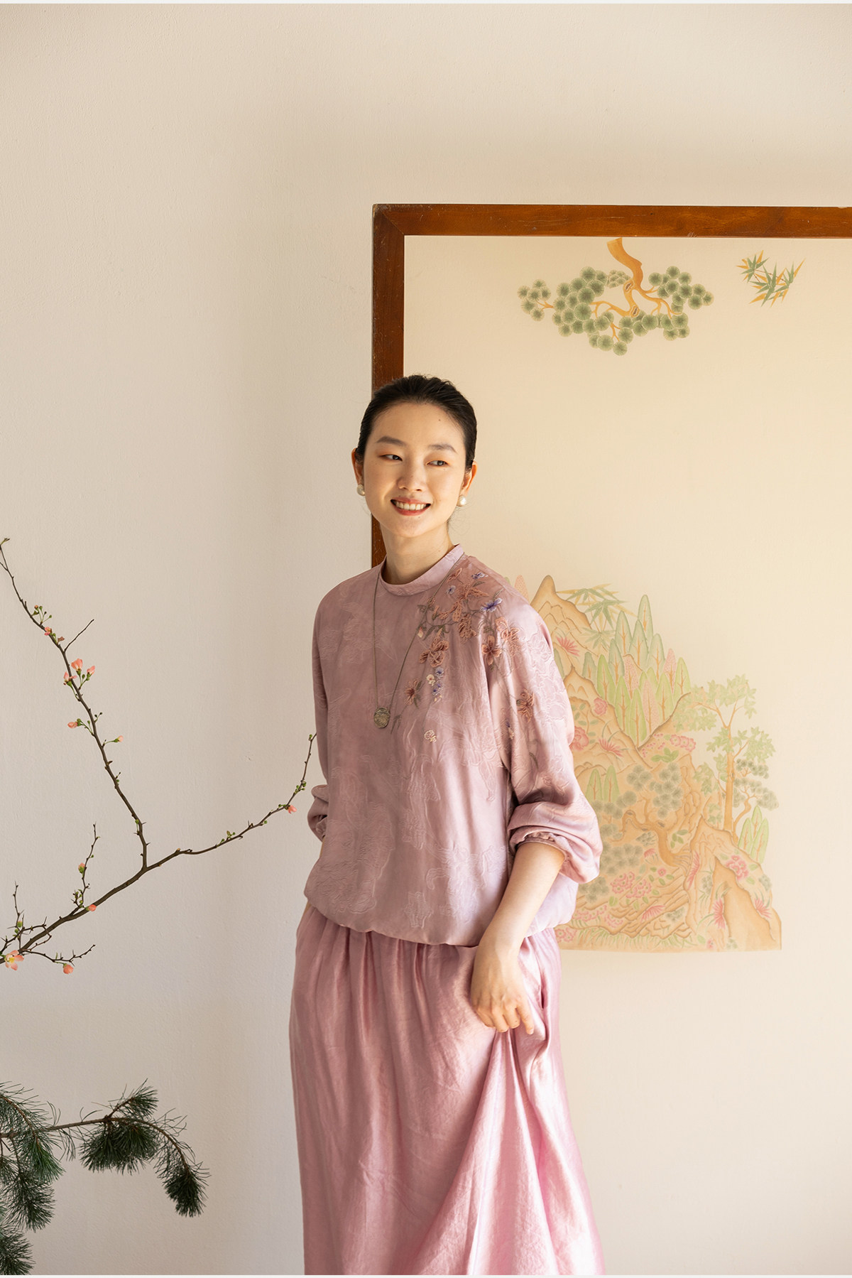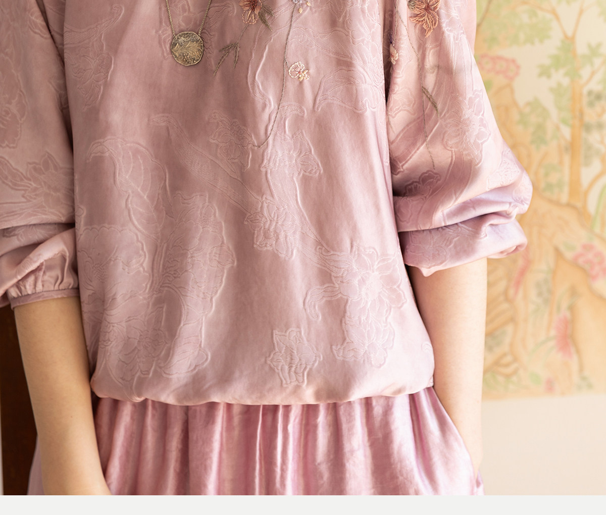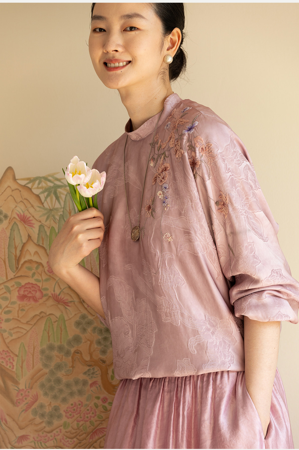 牧衣游原创 24姆米重磅桑蚕丝混纺重工手绣小衫宽松圆领套头 禾时