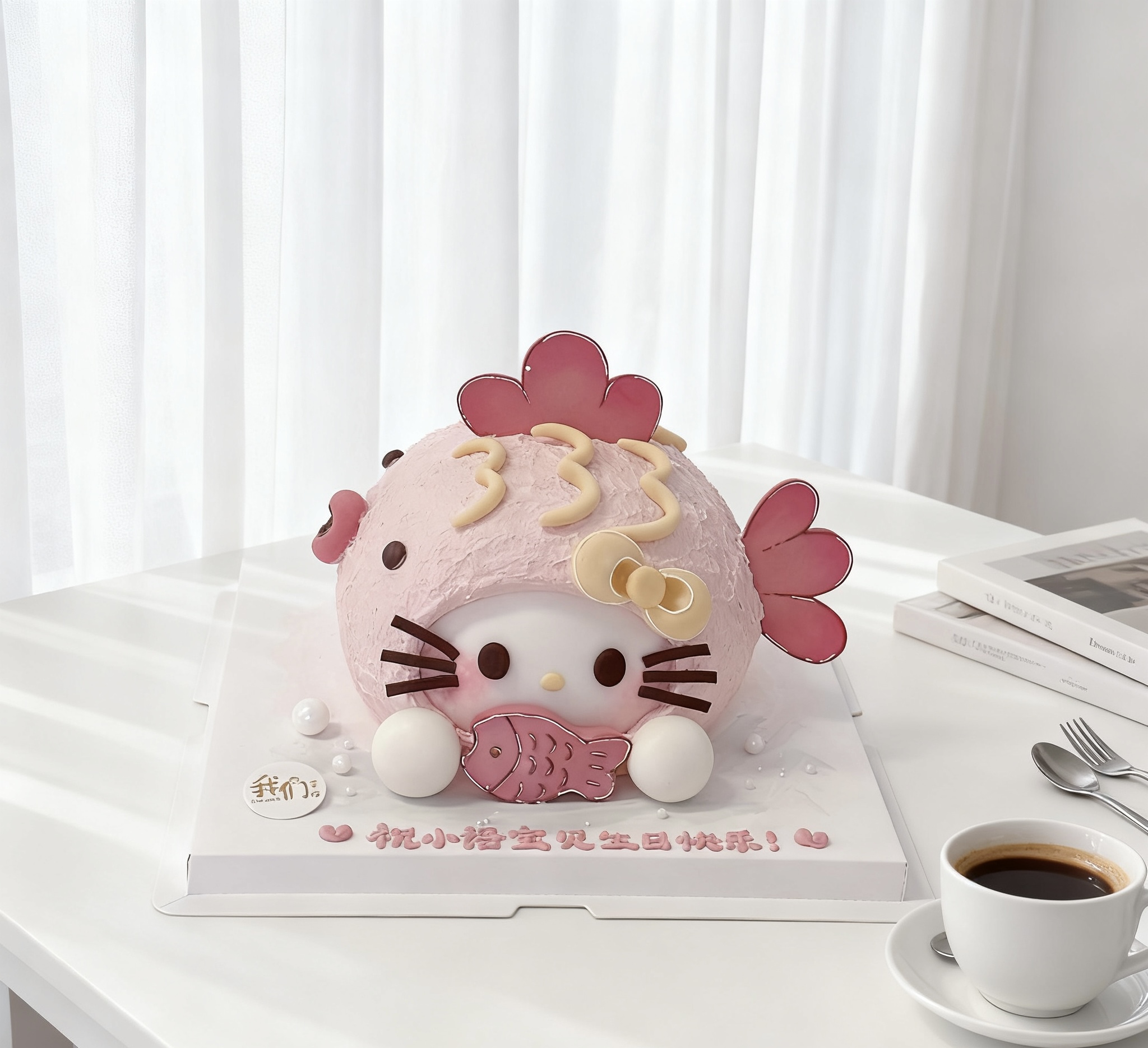 hellokitty小鱼儿双鱼座合体版卡通蛋糕-低糖处理无添加