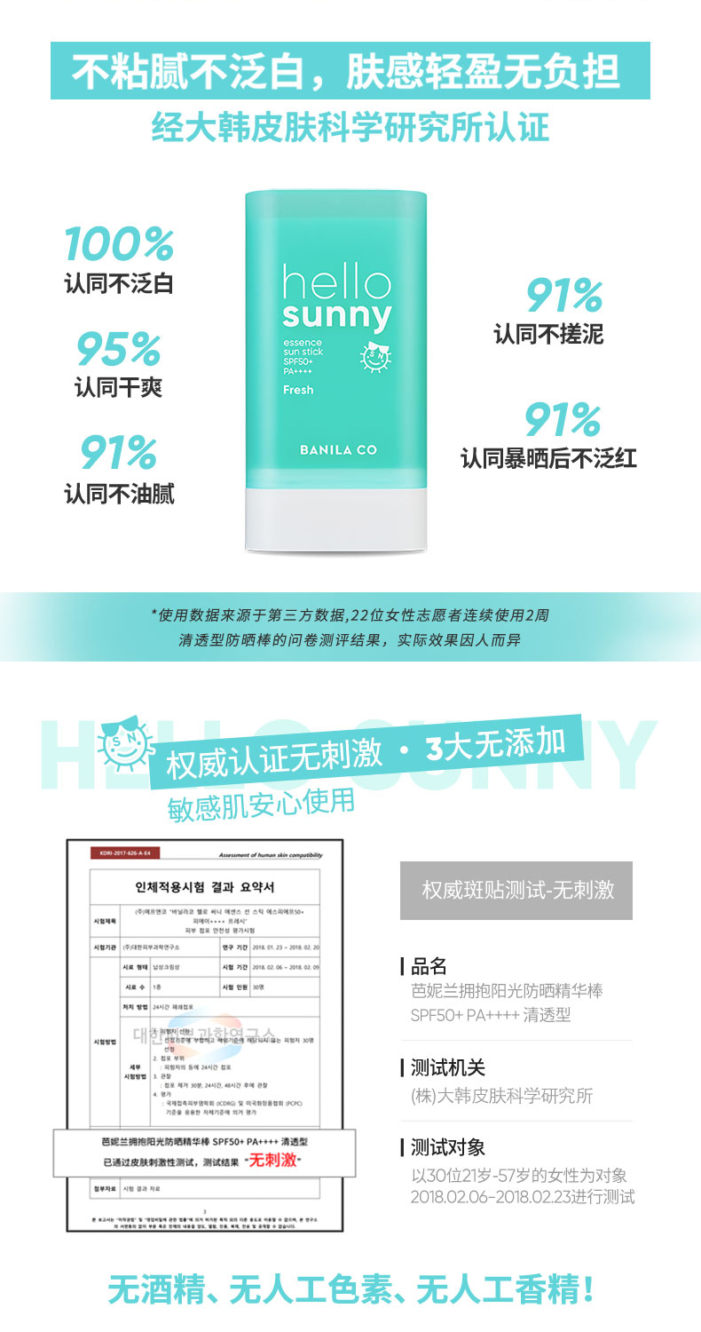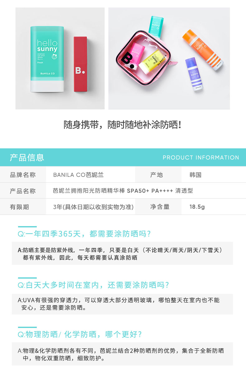 芭妮兰拥抱阳光防晒精华棒 SPF50+ PA++++ 清透型