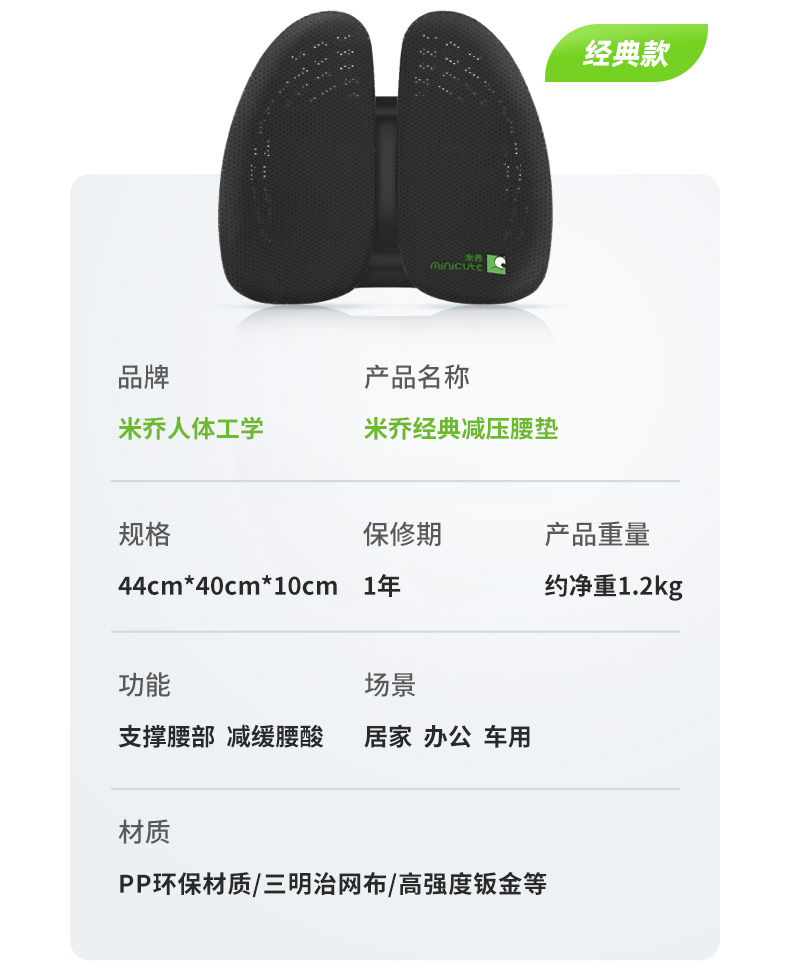 米乔减压腰垫(经典版)WP-0442  黑色 商品图0