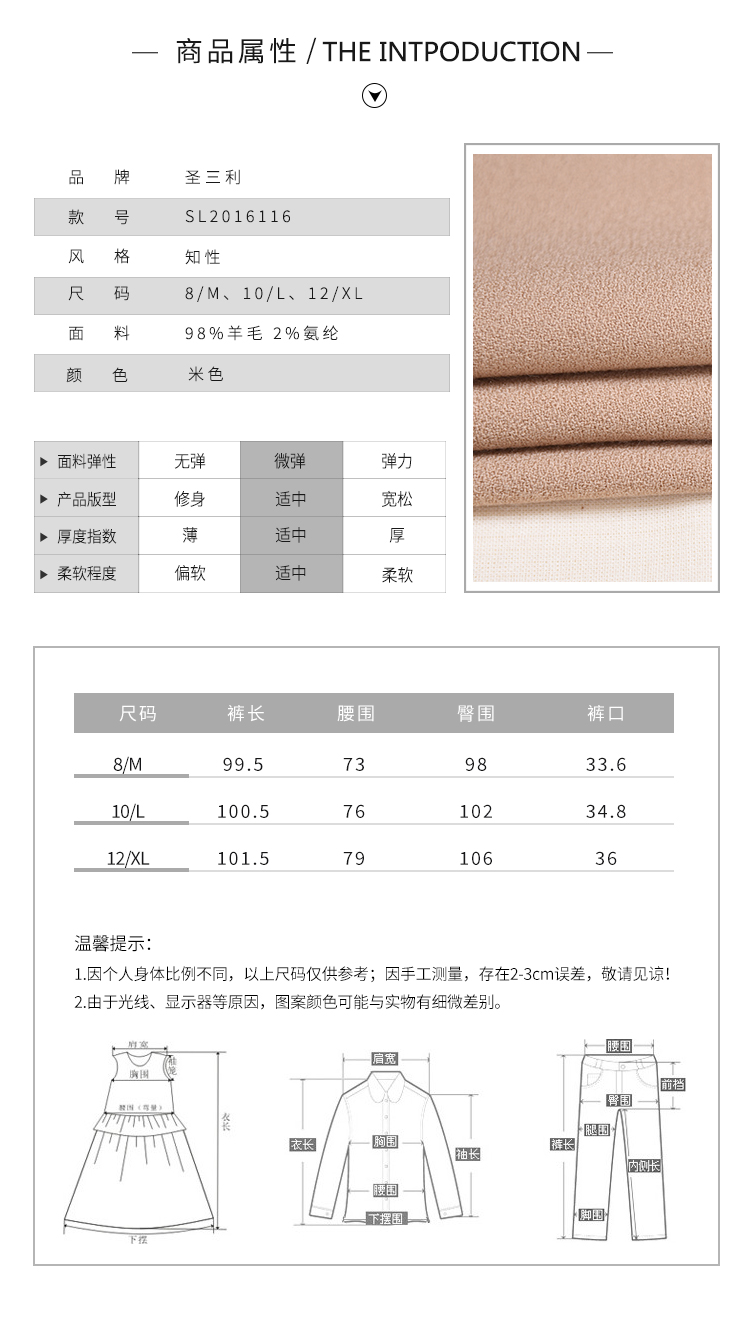 圣三利女装 新品锥字型澳洲羊毛精纺烟管裤SL2016116