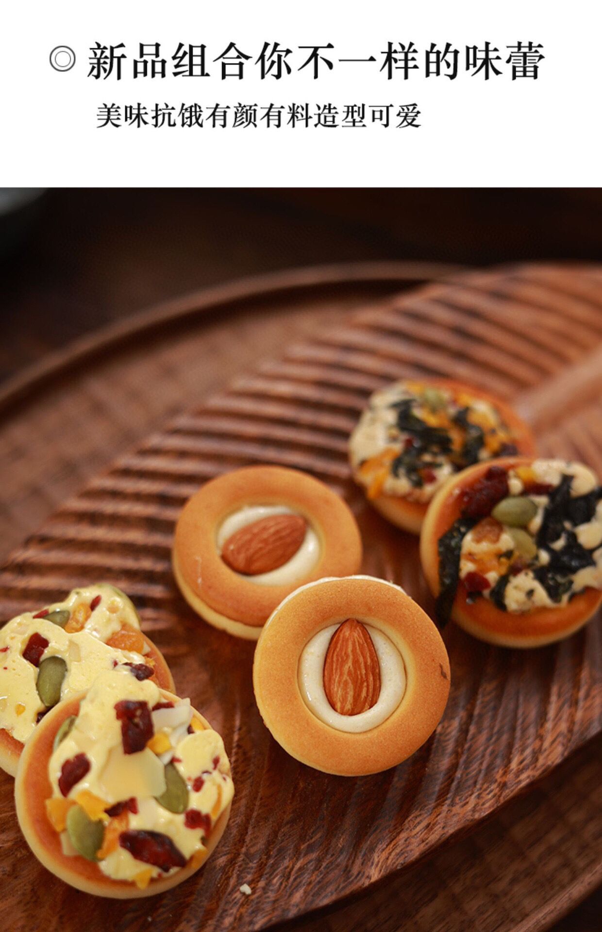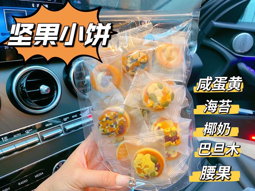 分别是咸蛋黄,椰奶,海苔,腰果,巴旦木认准品质我们是馅料爆满的坚果小饼