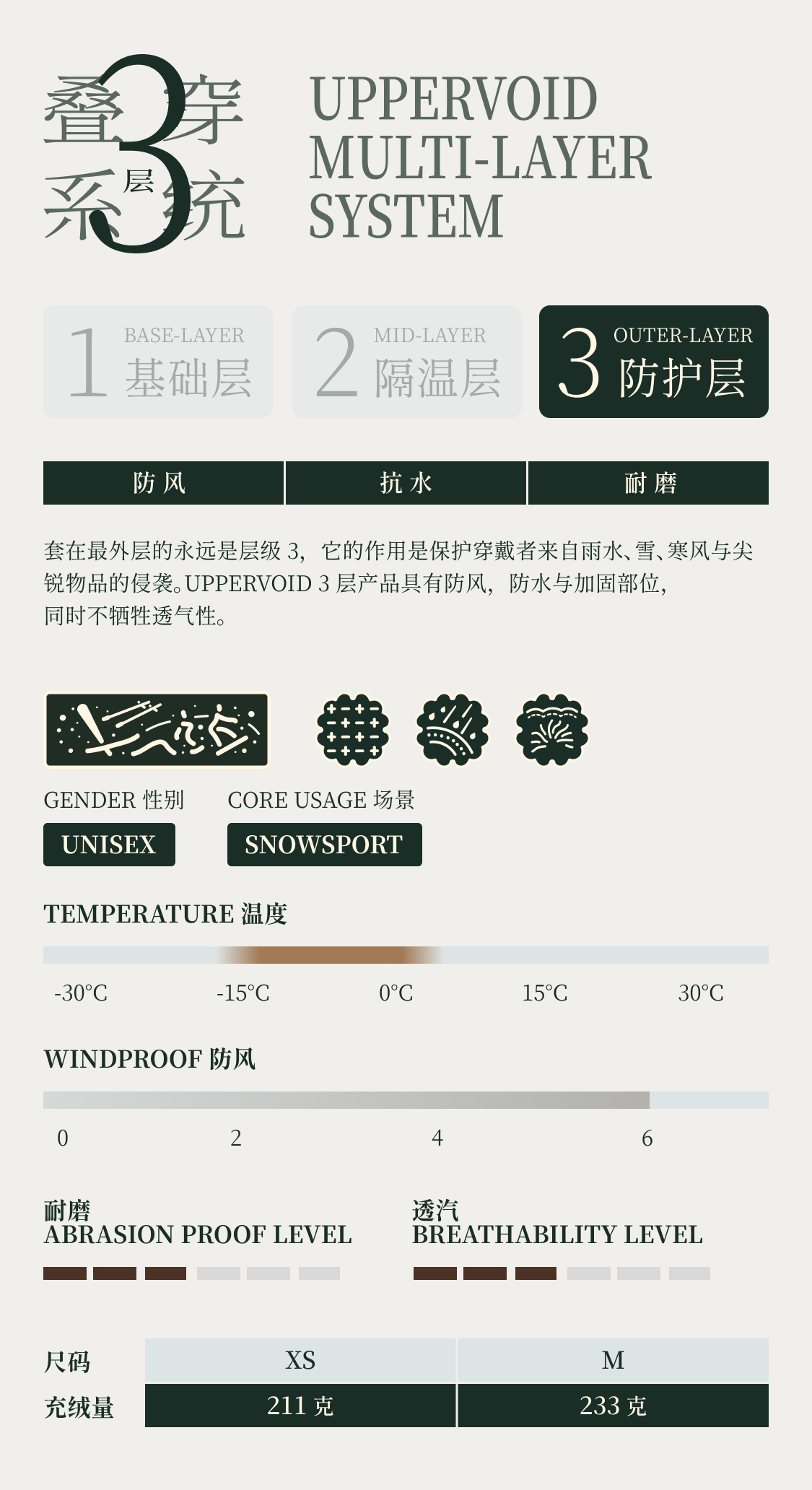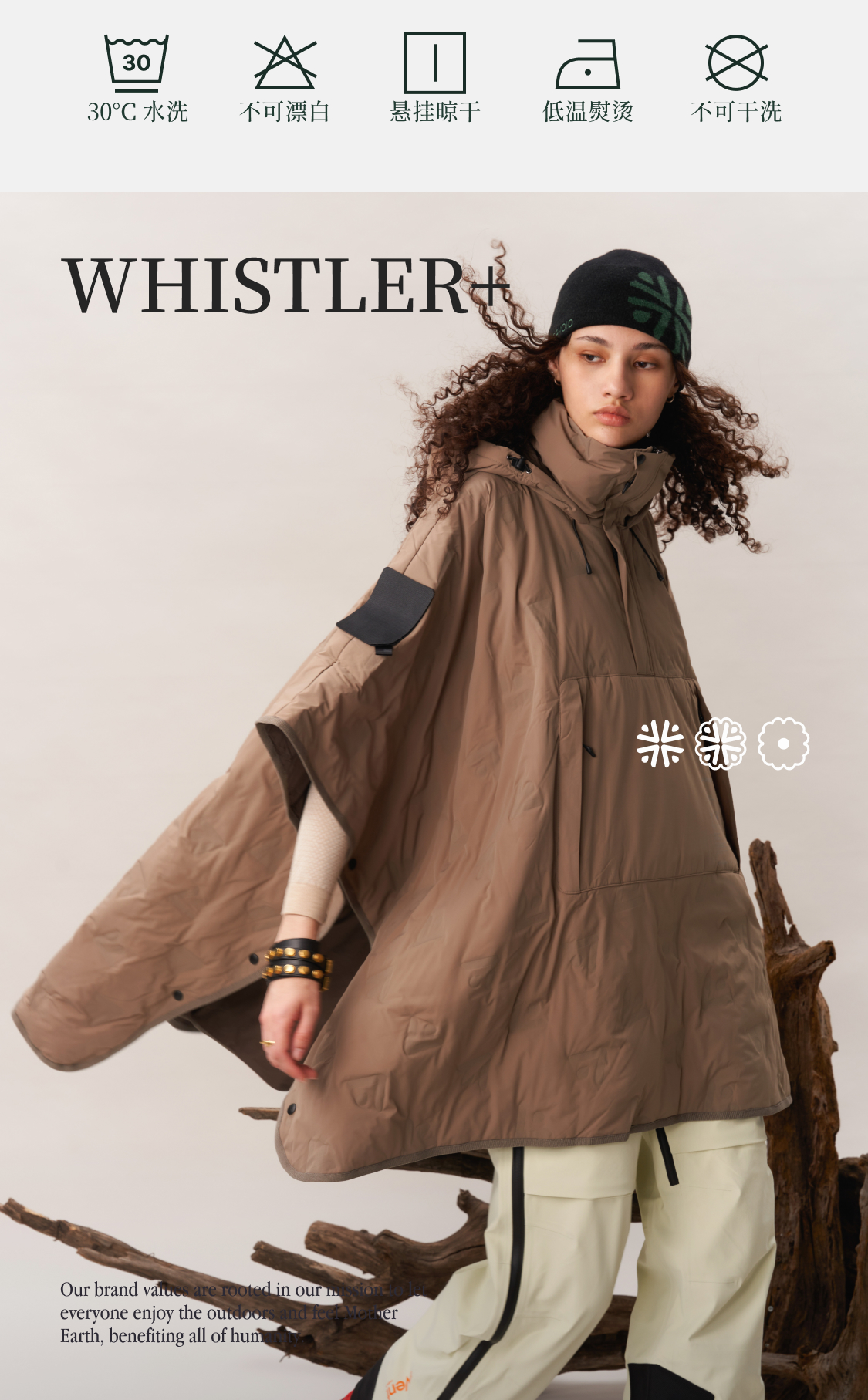 WHISTLER滑雪披风户外防水保暖鹅绒自收纳UPPERVOID二普纬度
