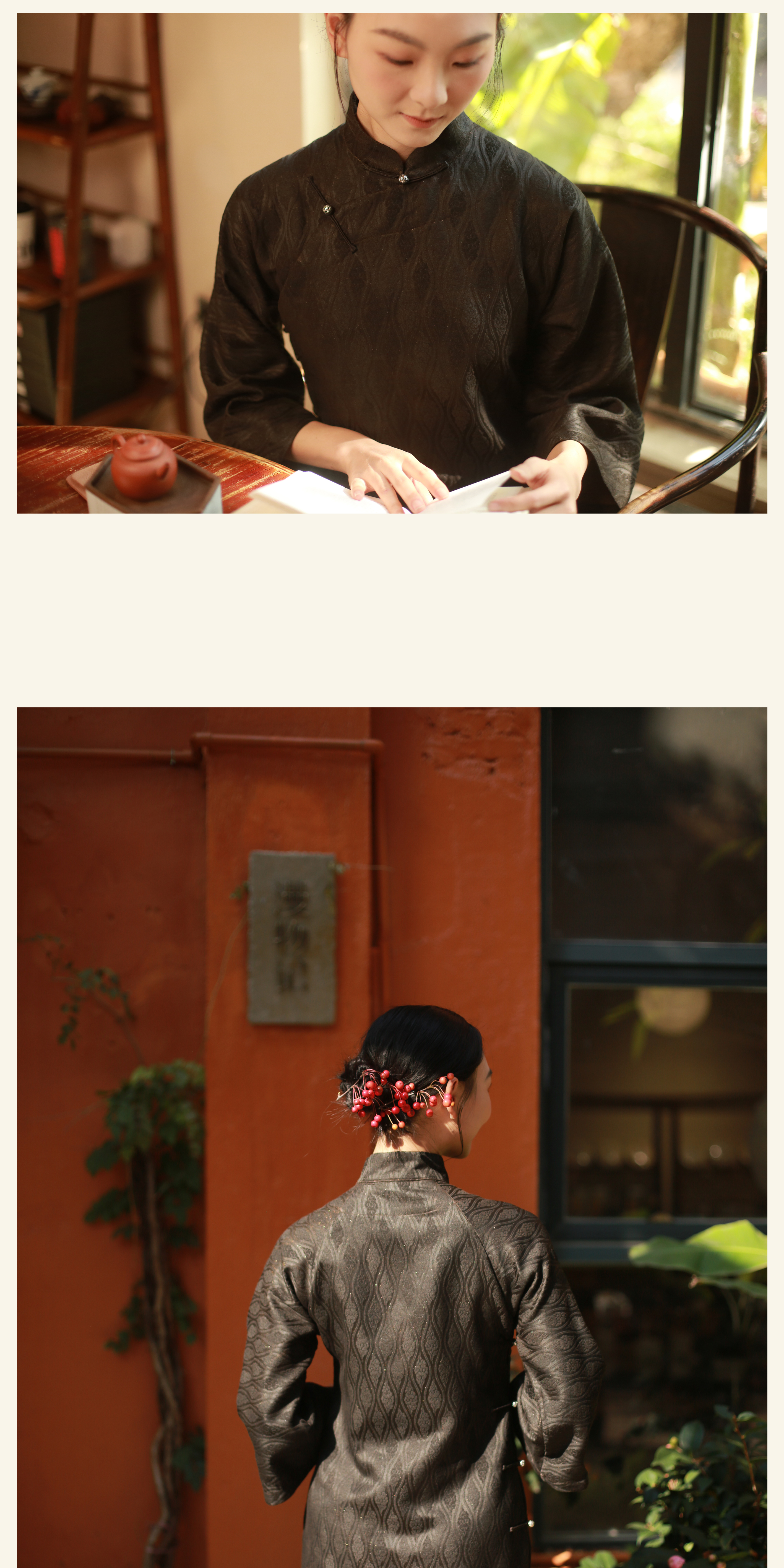 漫物记甲丝麻+龟裂纹斜襟立领双面马xys-324