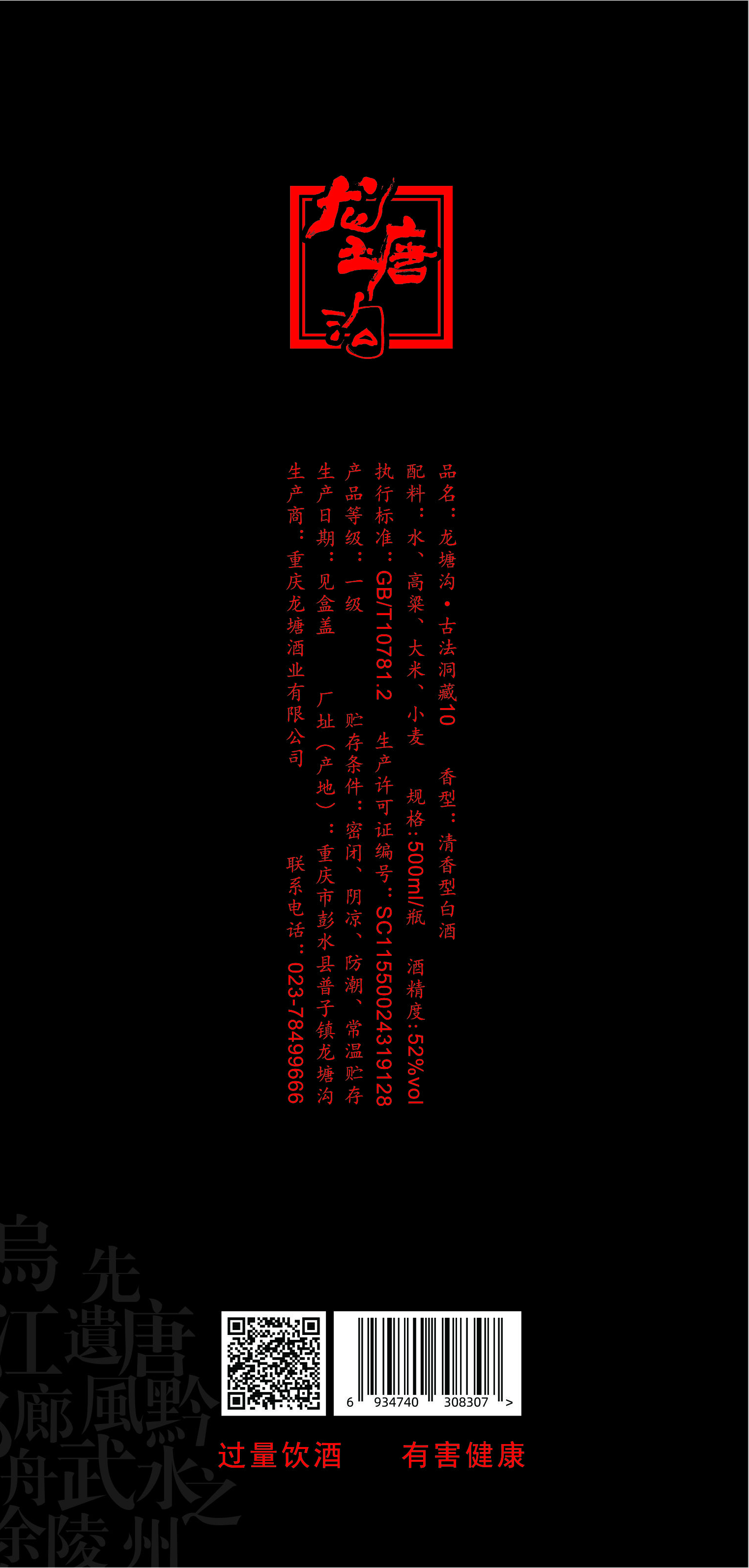 重庆老字号龙塘酒业 龙塘沟·古法洞藏10 全国统一零售价 468/瓶 清香芬芳,绵甜醇厚,口齿生津,回味悠长。适合知己享用、品鉴收藏。