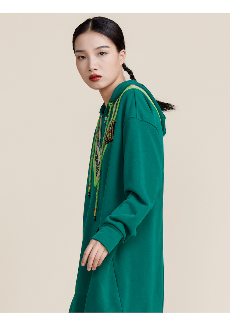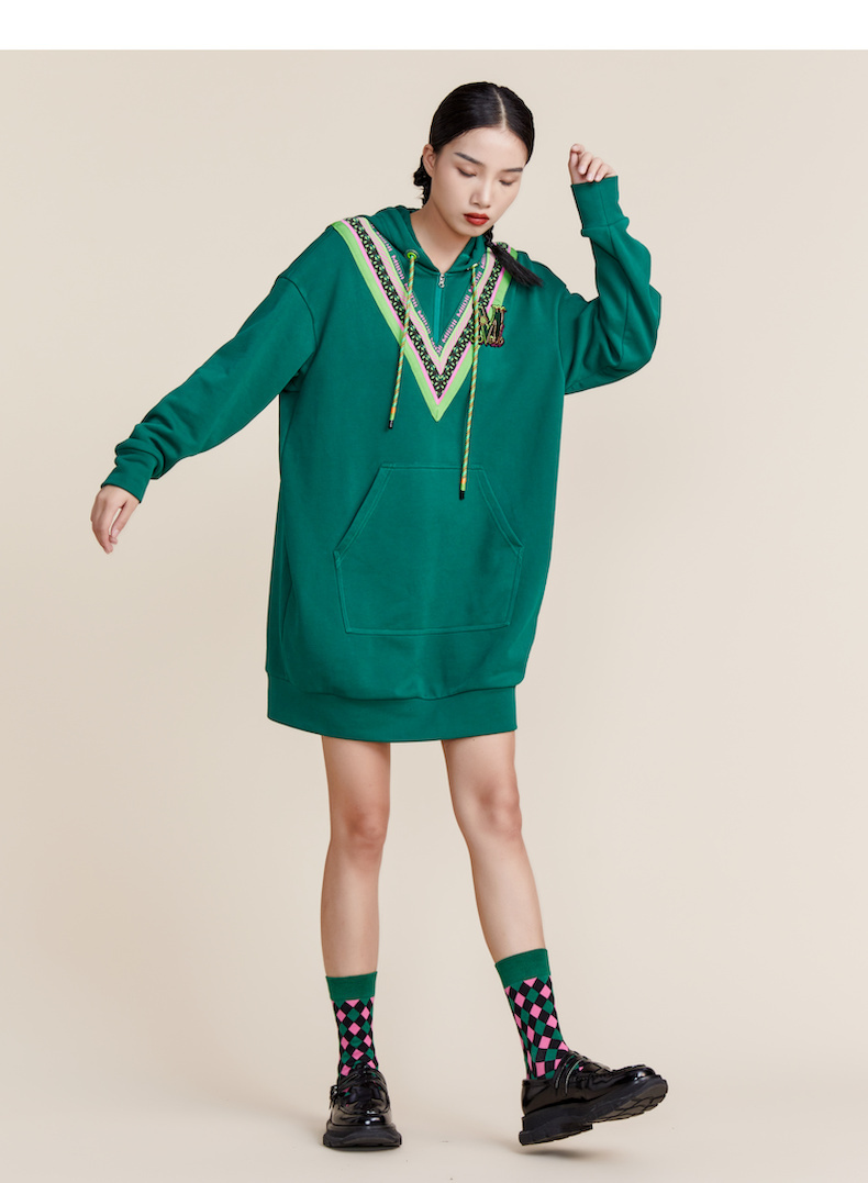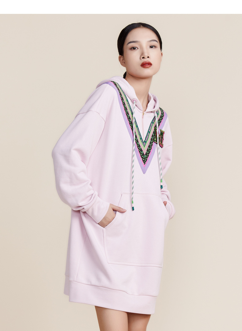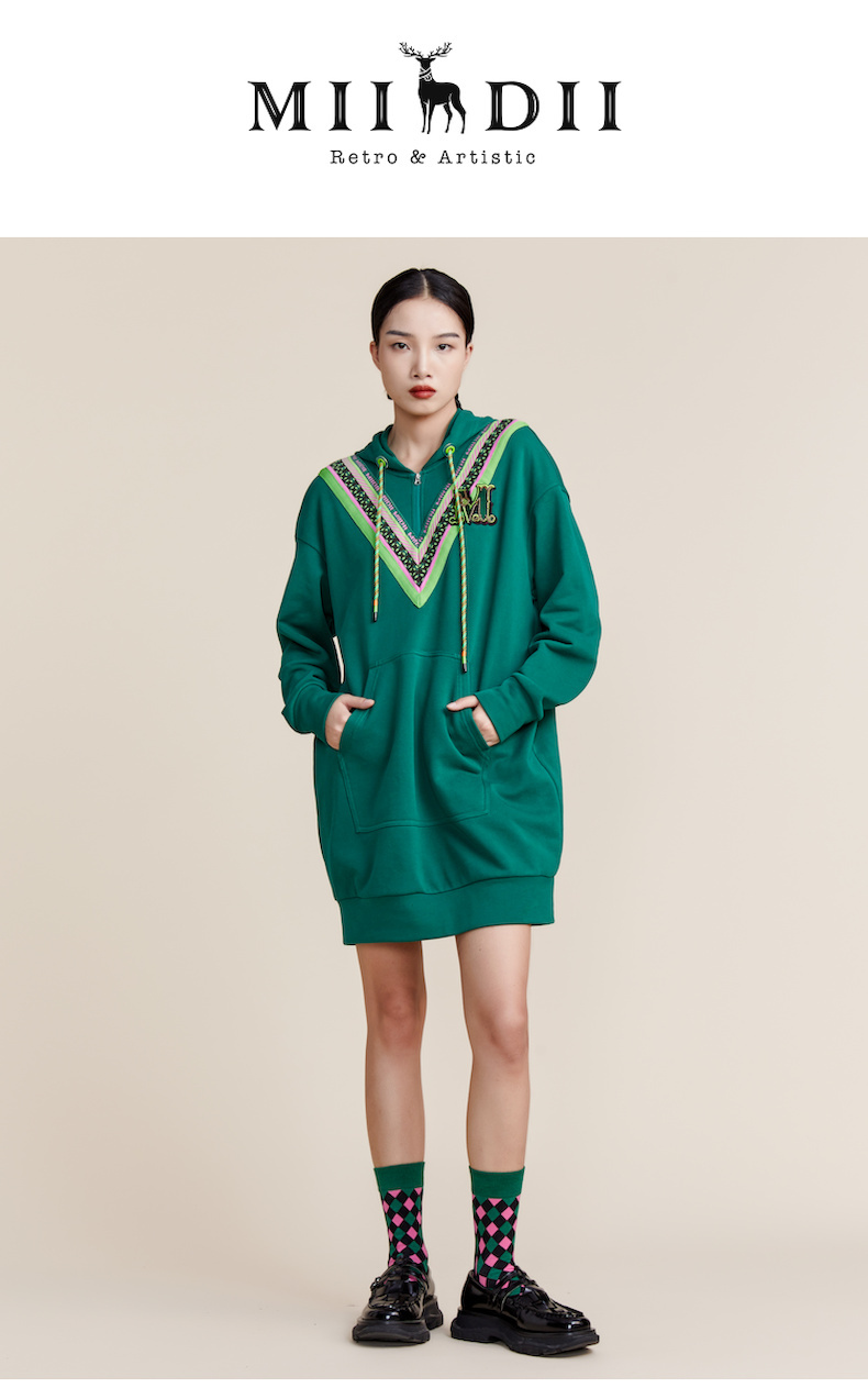 MIIDII谜底2022春新款时尚减龄休闲连帽卫衣连衣裙221ML0147