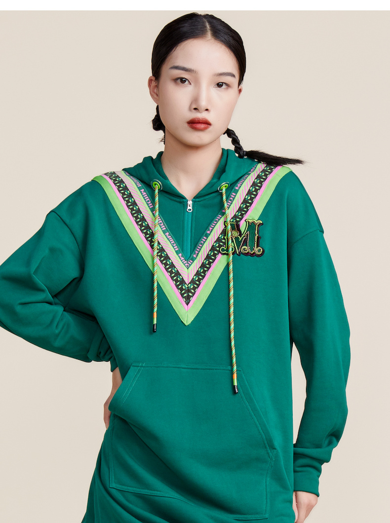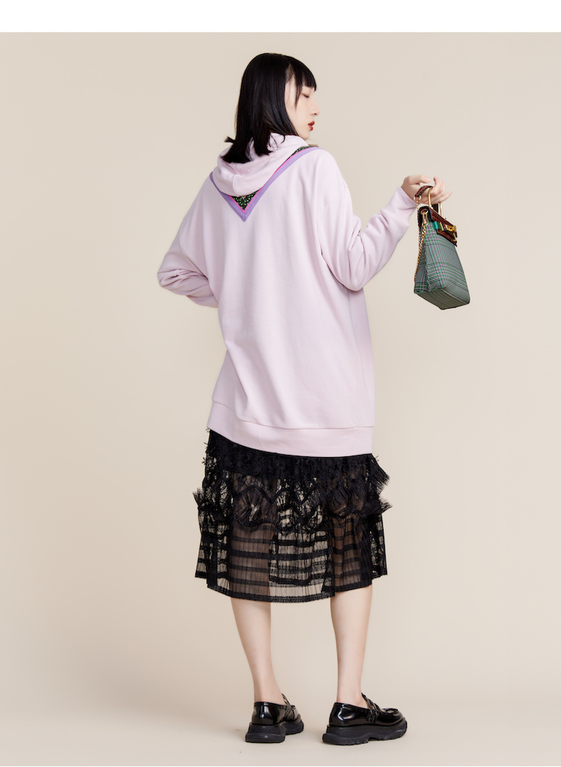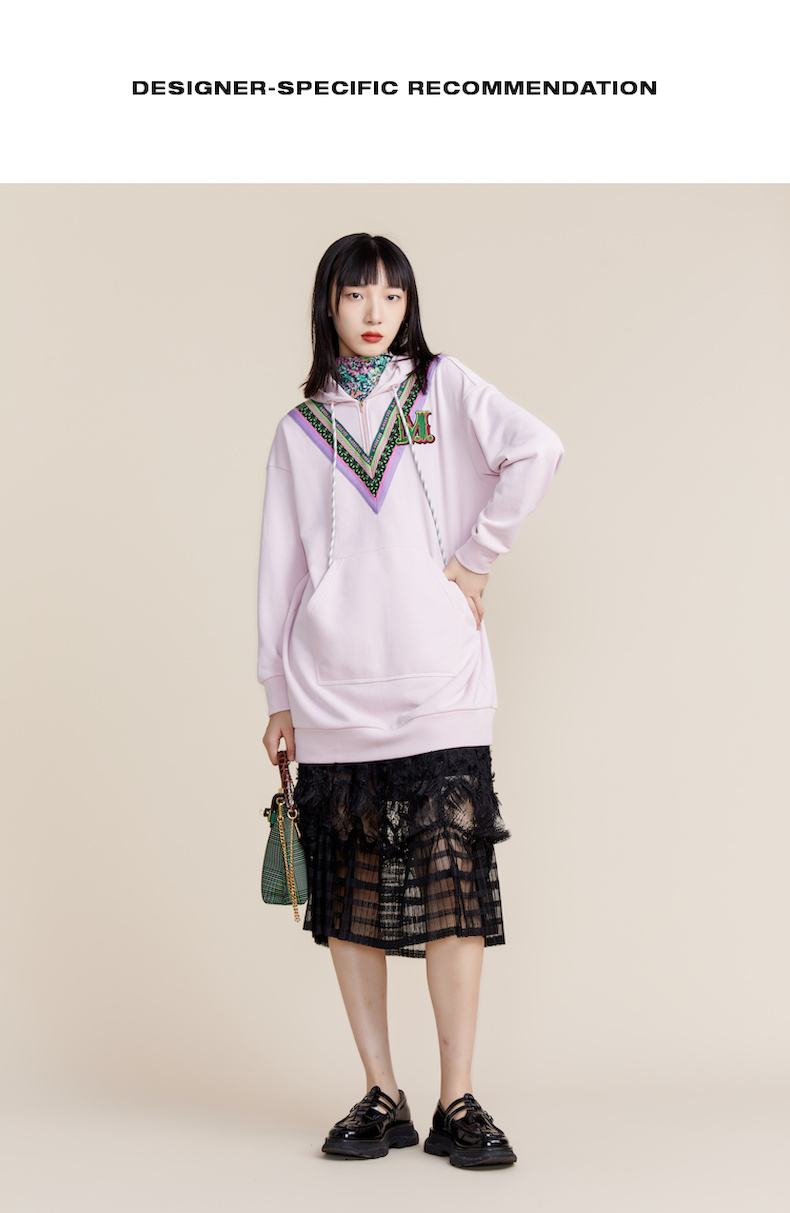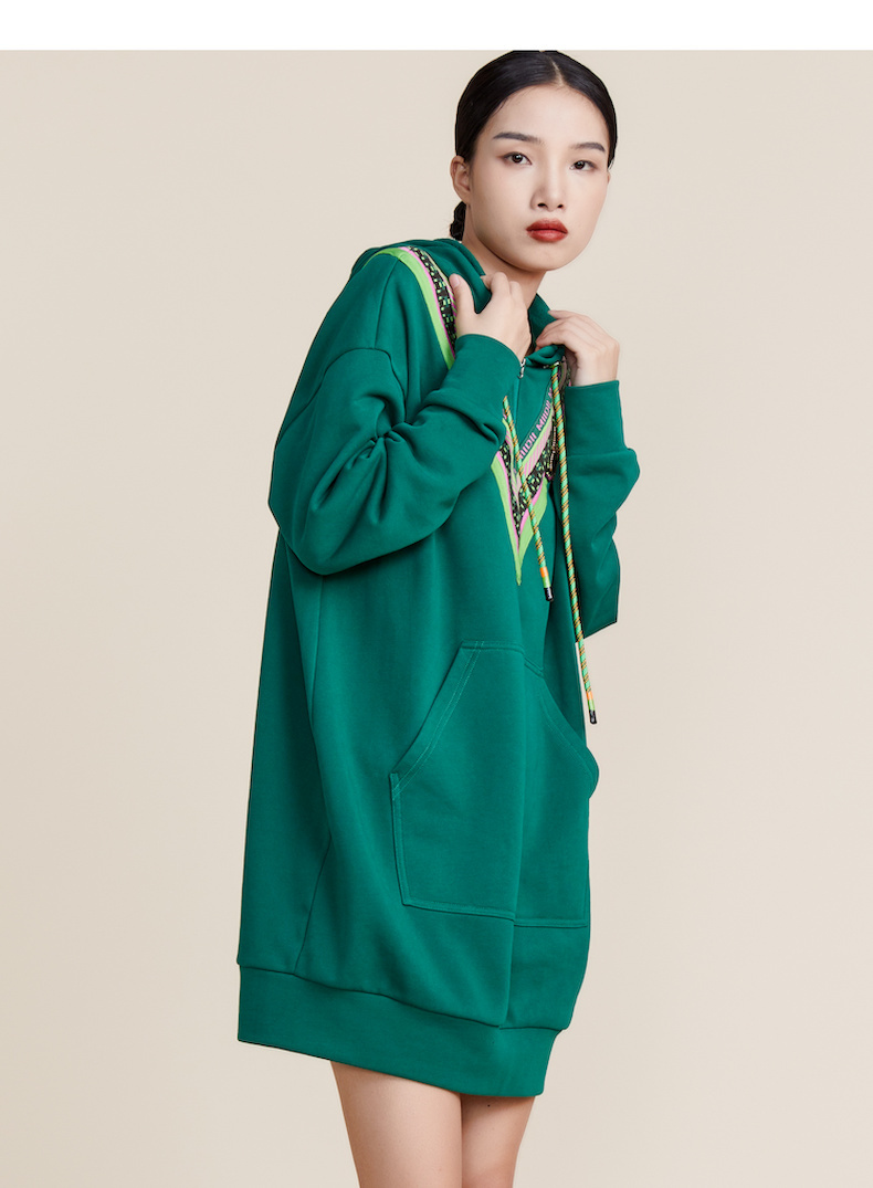 MIIDII谜底2022春新款时尚减龄休闲连帽卫衣连衣裙221ML0147
