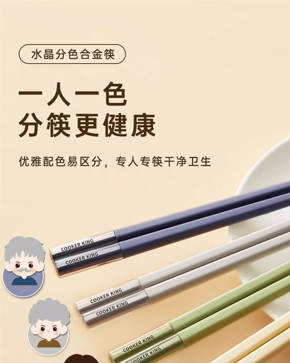 炊大皇筷子一人一筷便携个人专用快防滑防霉家用合金新款筷子装带筷托