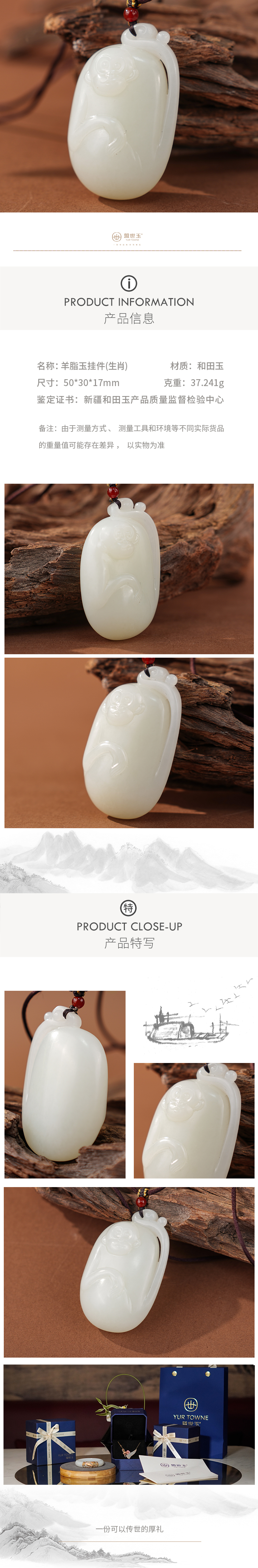 「年礼优选」【灵猴献瑞】羊脂白玉挂件