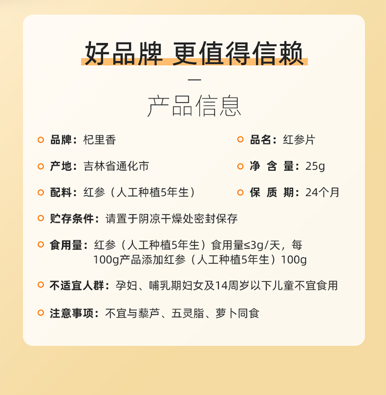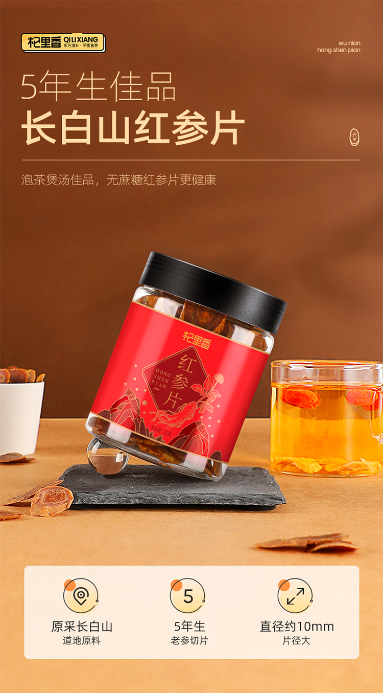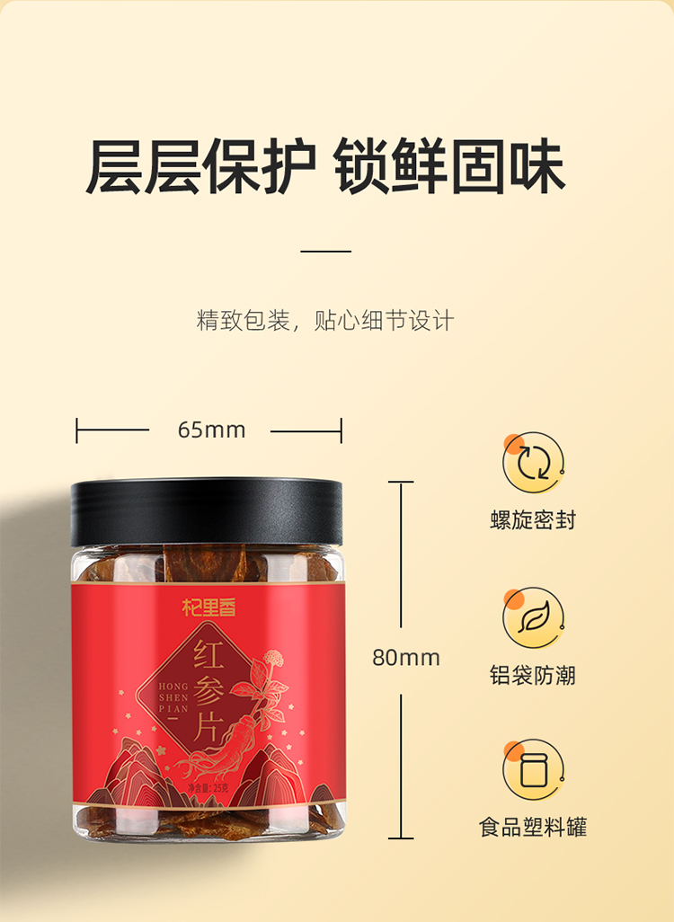 杞里香25g罐装红参片 优质产地才能产好参 主根切片 薄片 可煲汤 熬粥、泡水 精力满满 元气满满