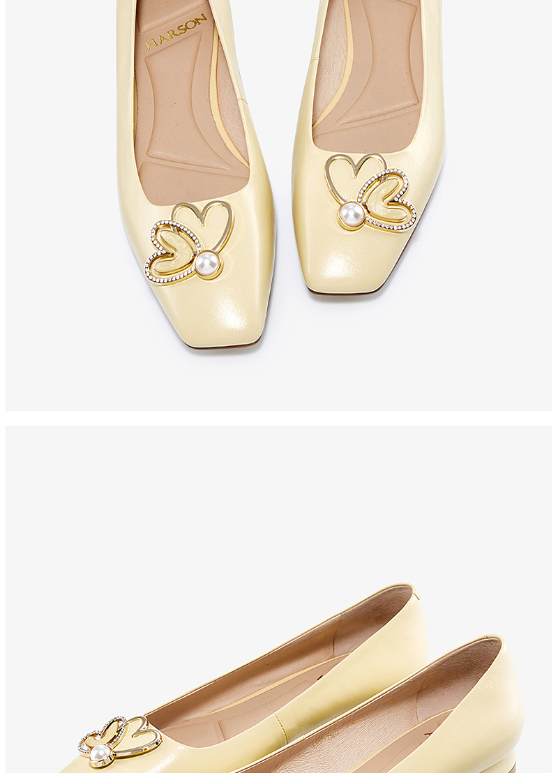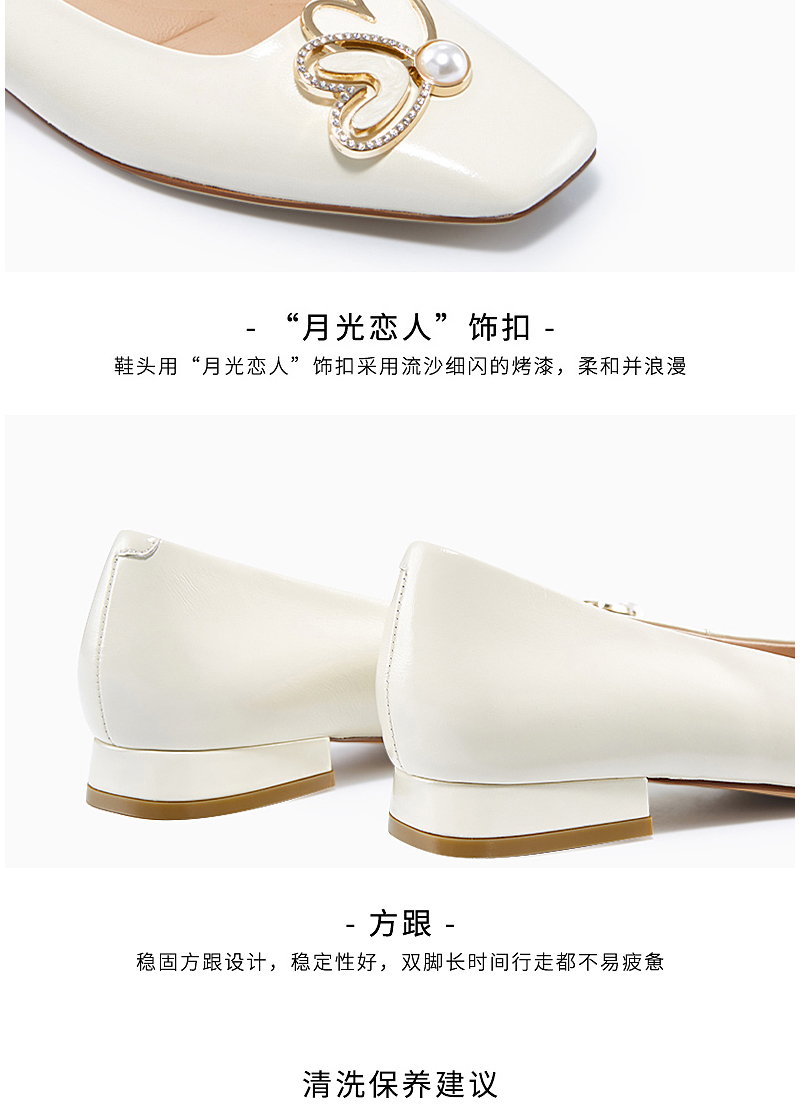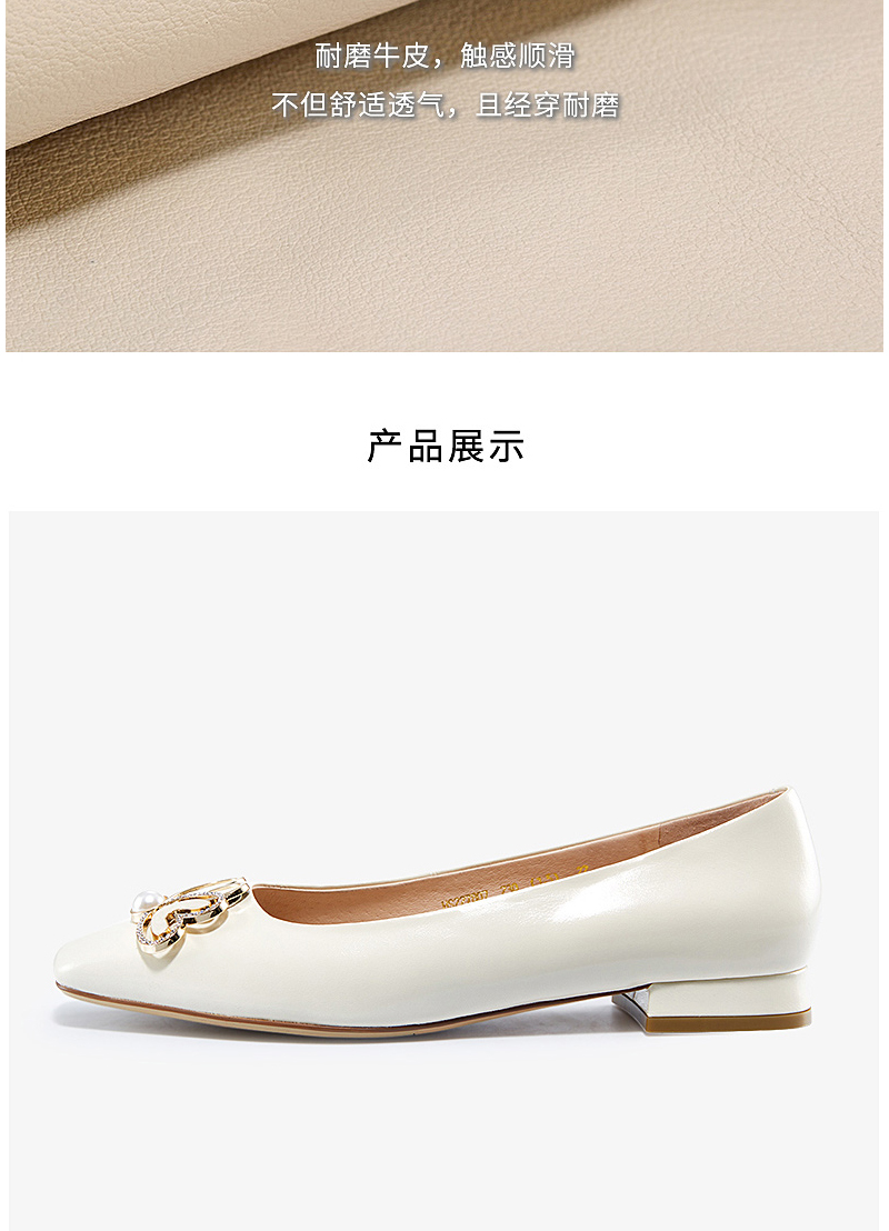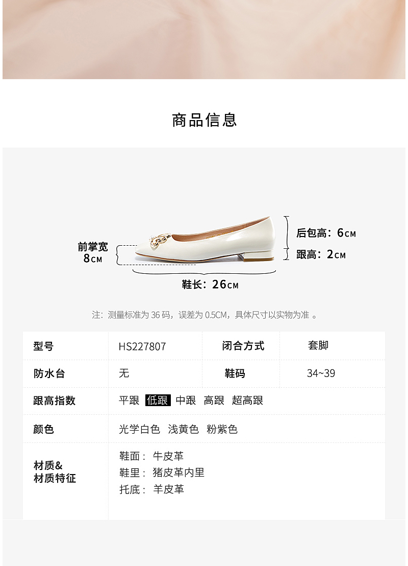 哈森女鞋2022春季新款休闲方跟方头日常通勤鞋饰扣浅口女单鞋HS227807