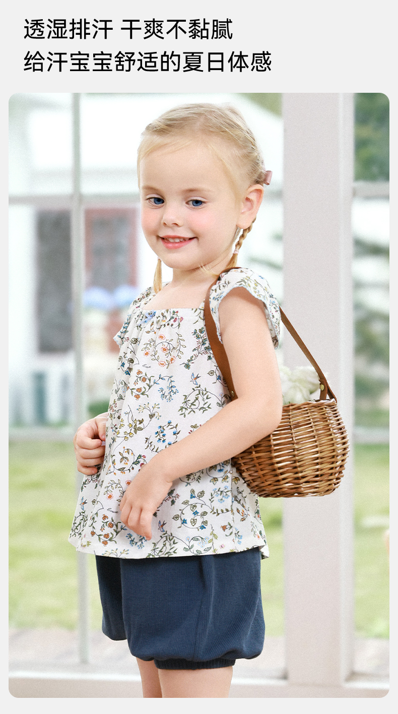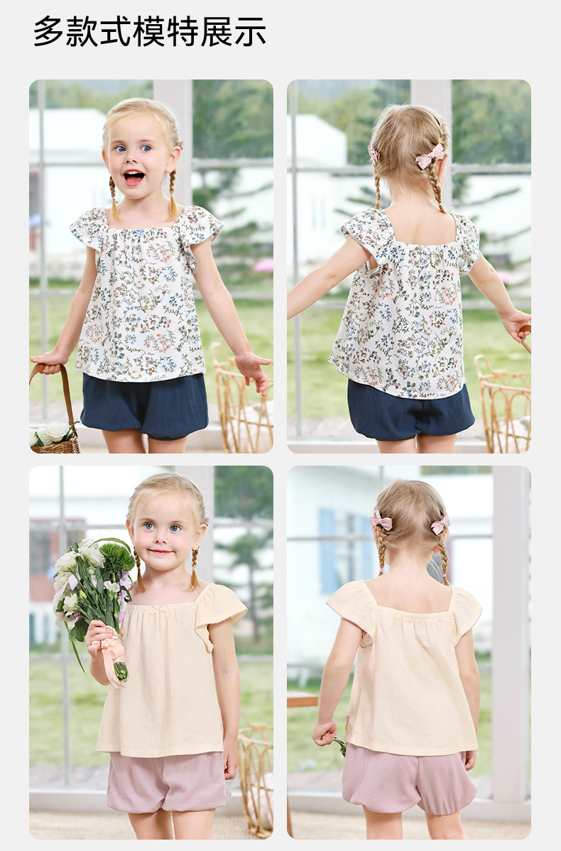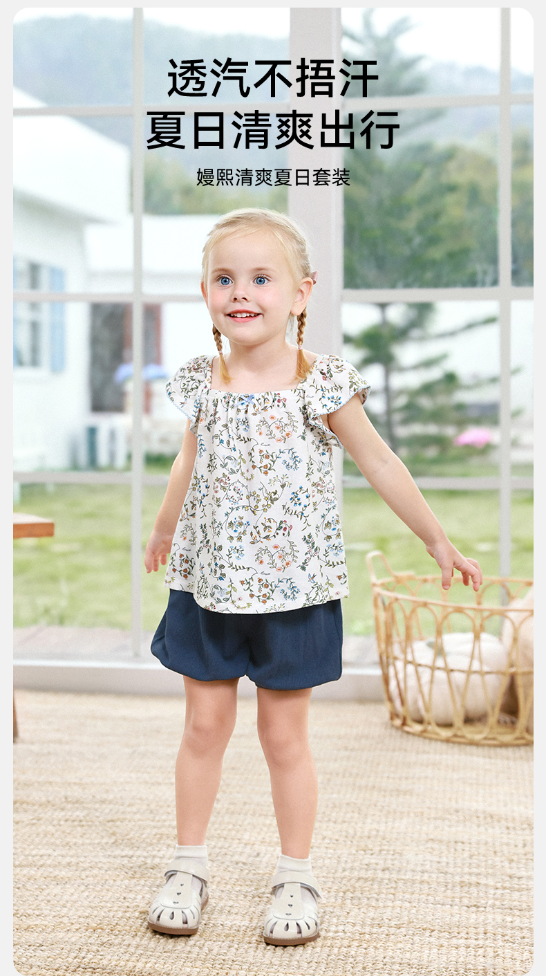 【宝宝服饰】嫚熙童装2025新款夏季儿童套装薄款女童短袖T恤女宝