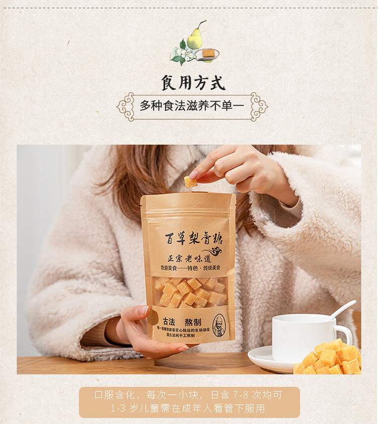 【买一送一 草本润喉】百草梨膏糖 清甜润口美味益身 手工制作古法熬制 烟民常用喉者必备 养生小零食250g/袋