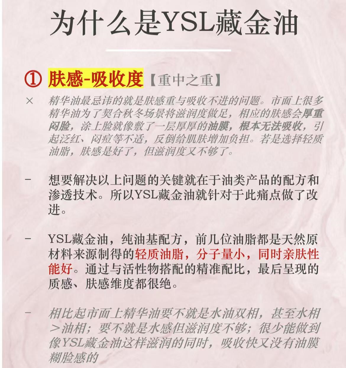 YSL藏金油是我目前用下来吸收速度最快的了!