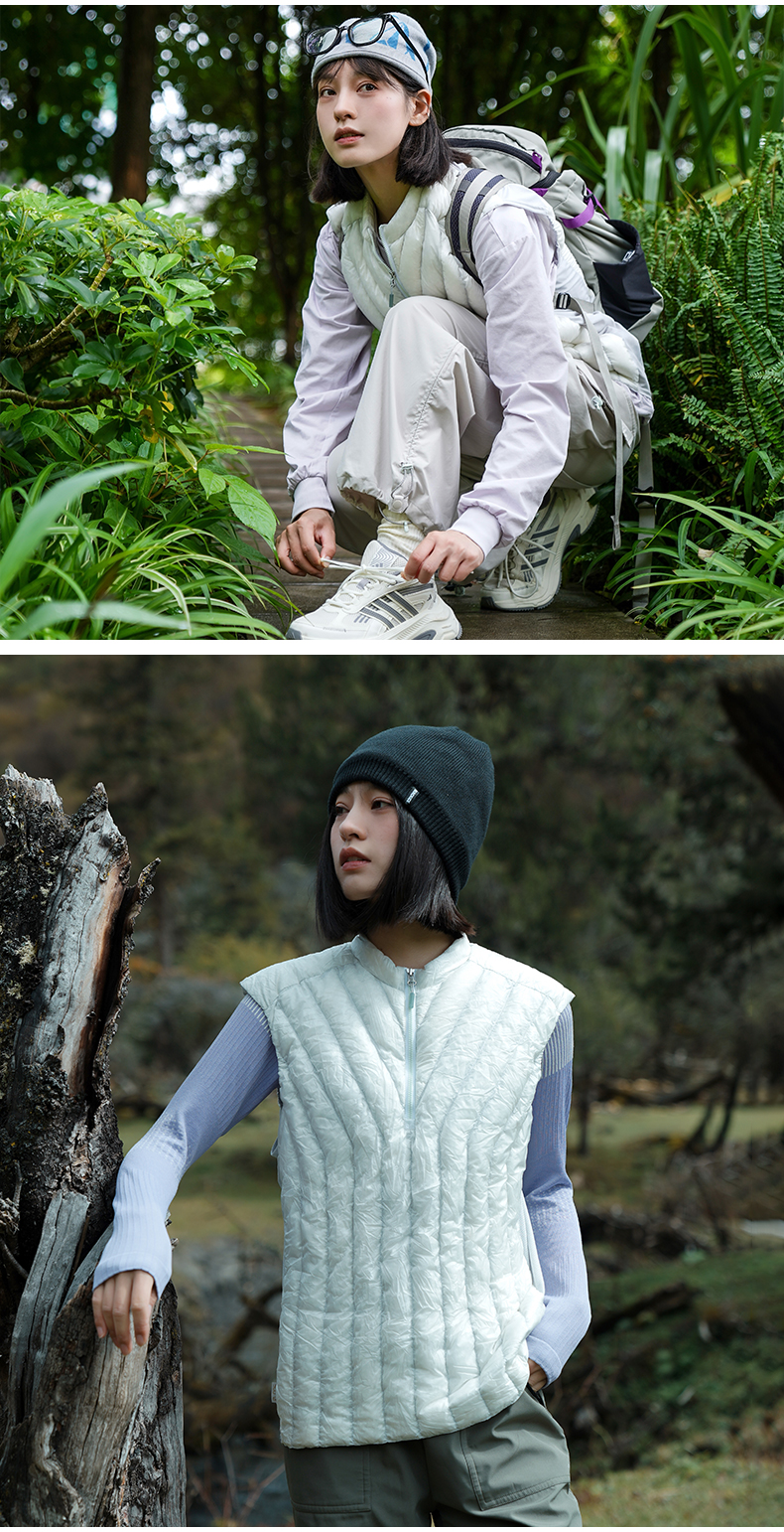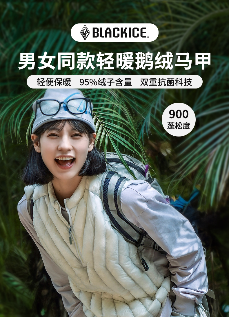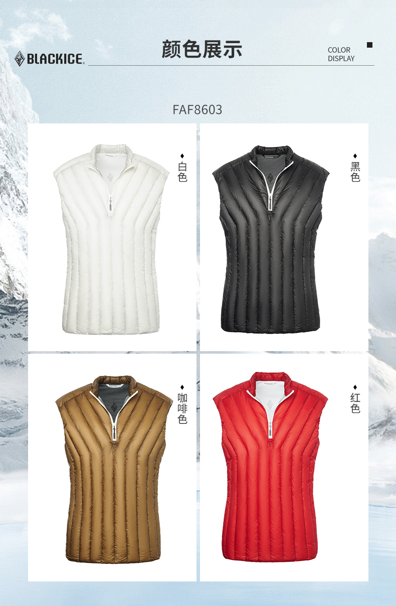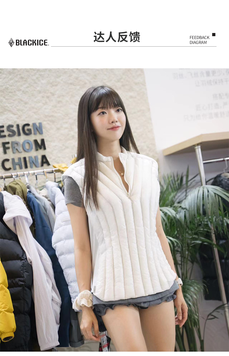 24新黑冰户外冬男女款900蓬鹅绒薄款半拉链羽绒马甲保暖背心8603