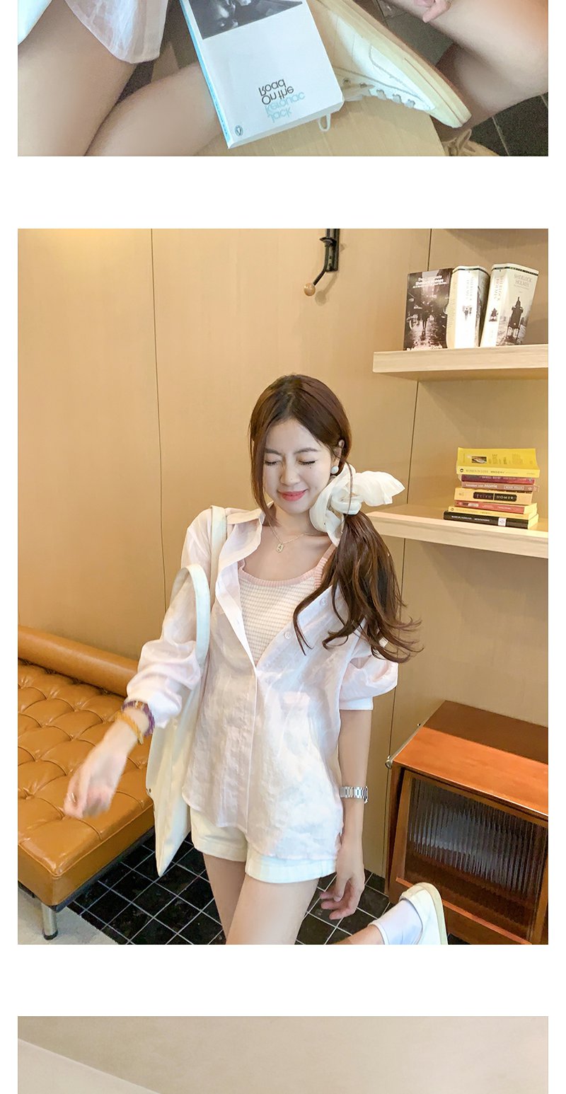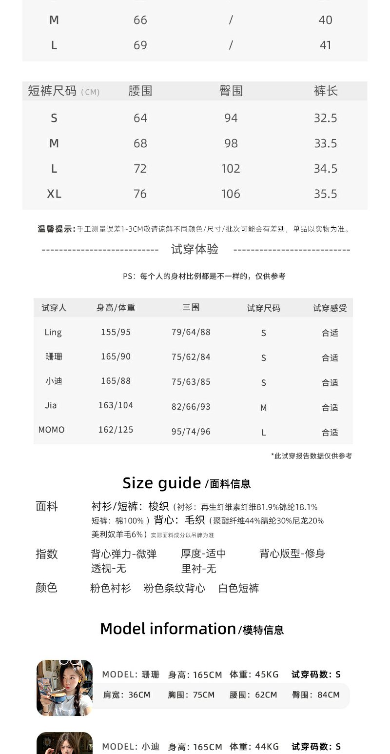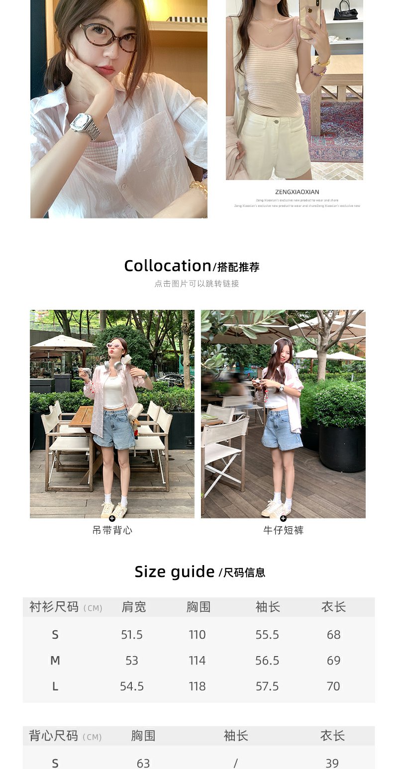 <曾小咸推荐>韩版粉色长袖衬衫条纹背心套装