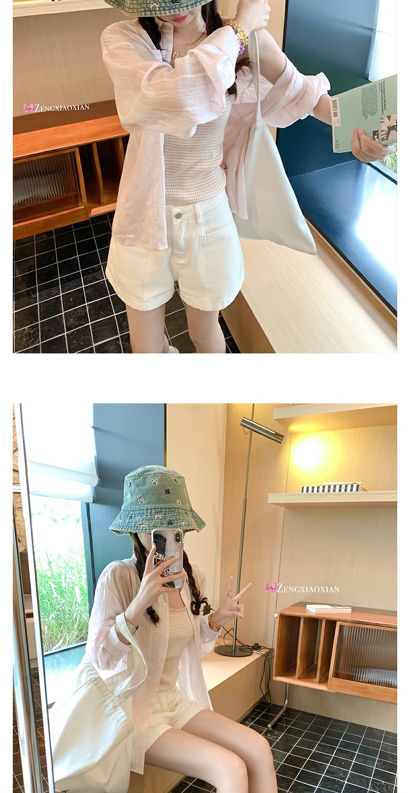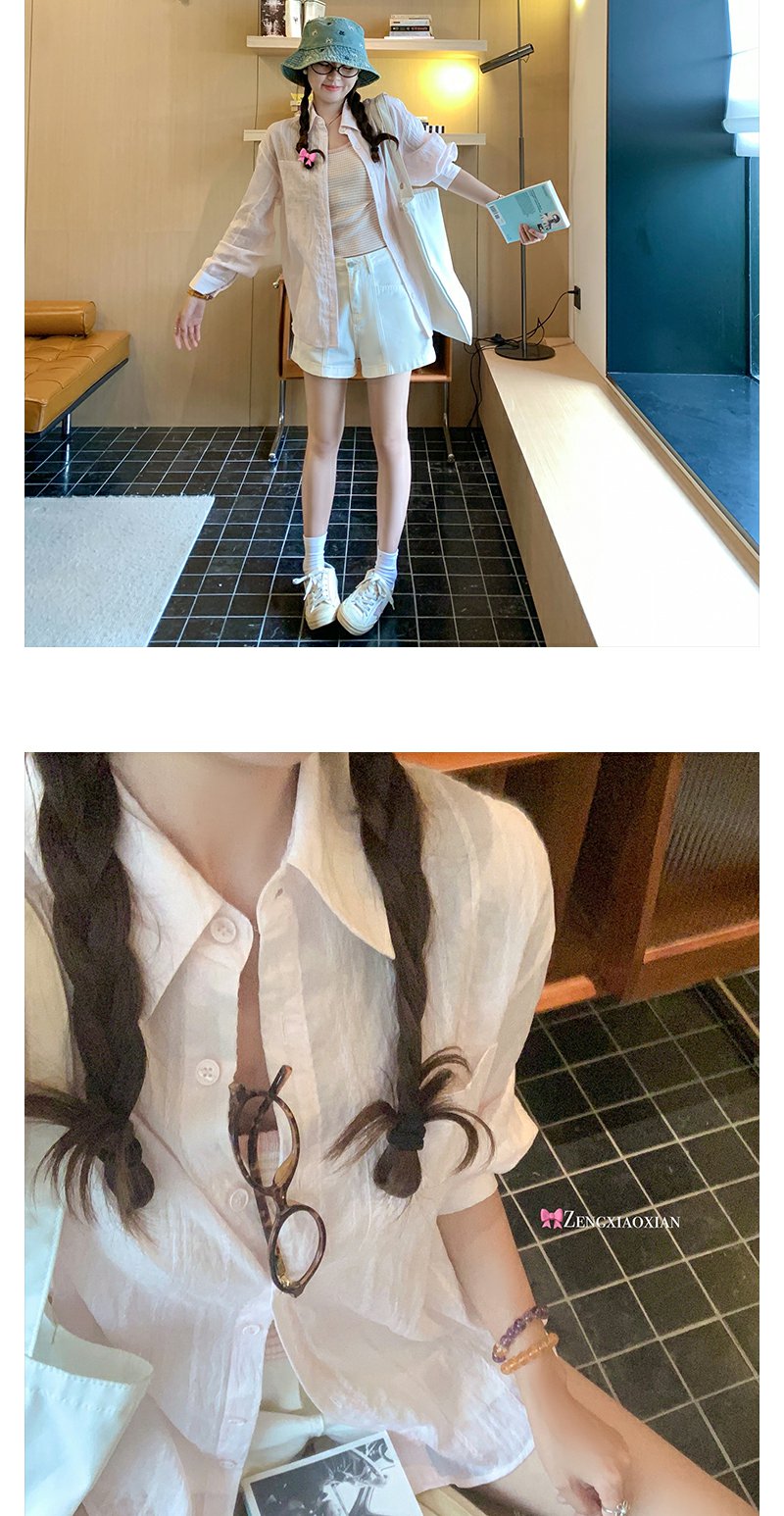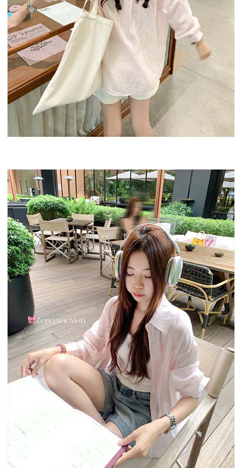 <曾小咸推荐>韩版粉色长袖衬衫条纹背心套装