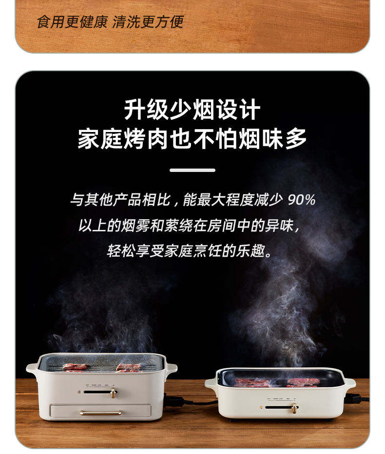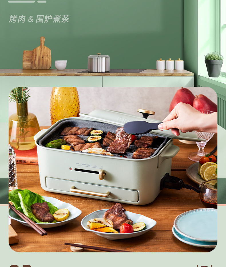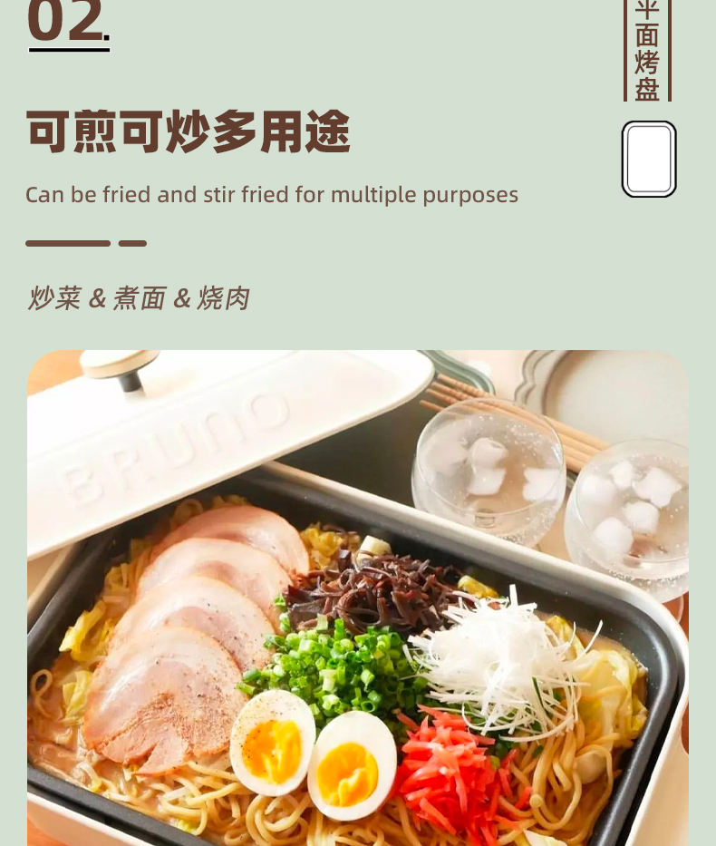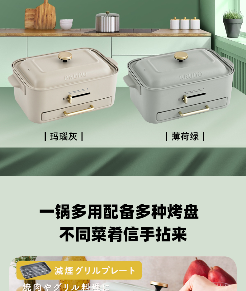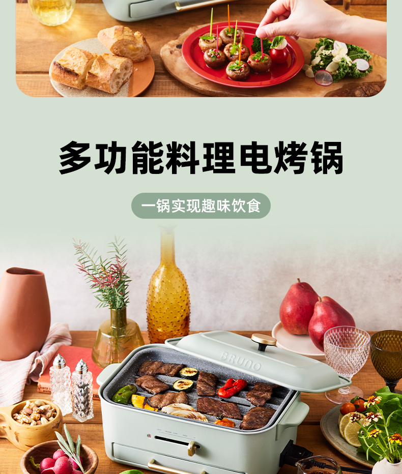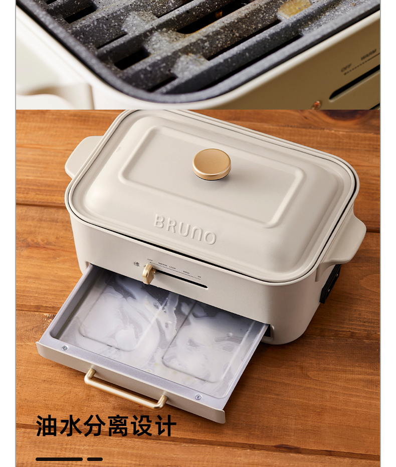 【煎蒸煮烤炸一体电火锅】BRUNO少烟多功能料理锅家用煎蒸煮烤炸电烤肉火锅一体聚嗨电烤锅