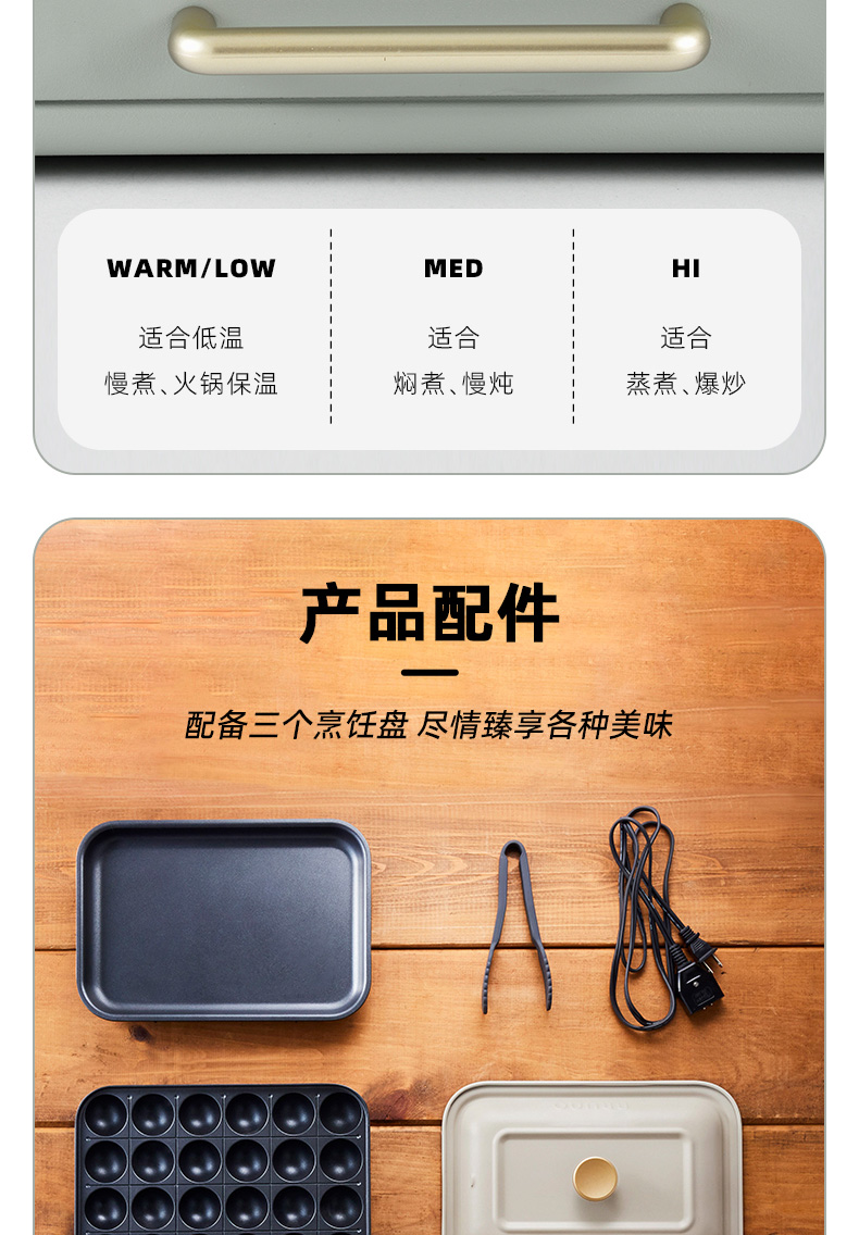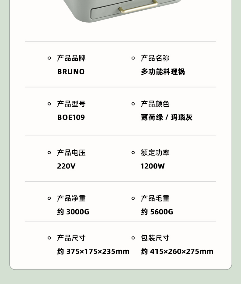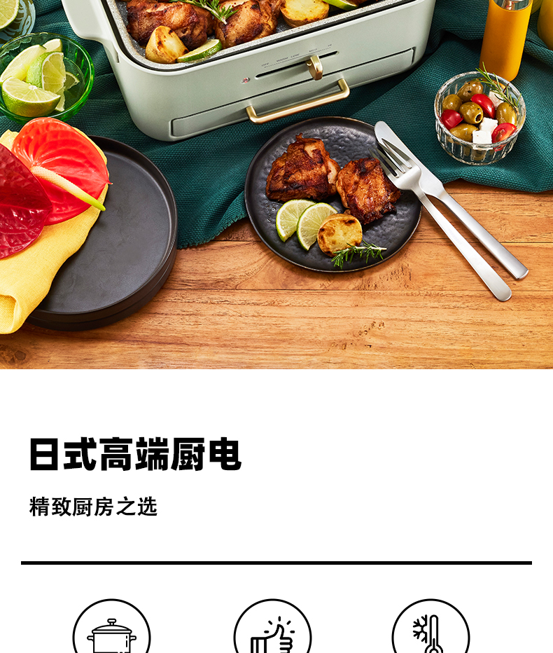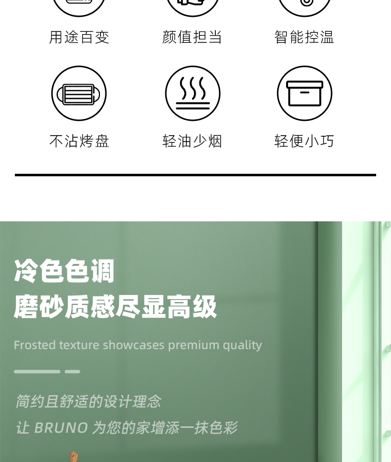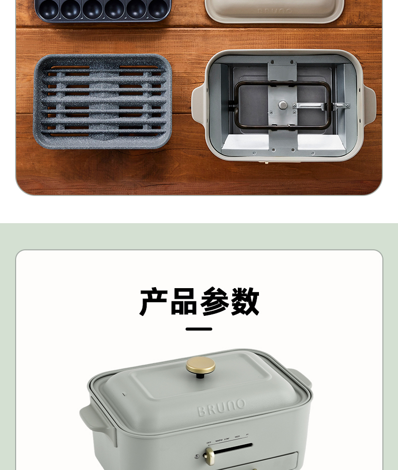 【煎蒸煮烤炸一体电火锅】BRUNO少烟多功能料理锅家用煎蒸煮烤炸电烤肉火锅一体聚嗨电烤锅