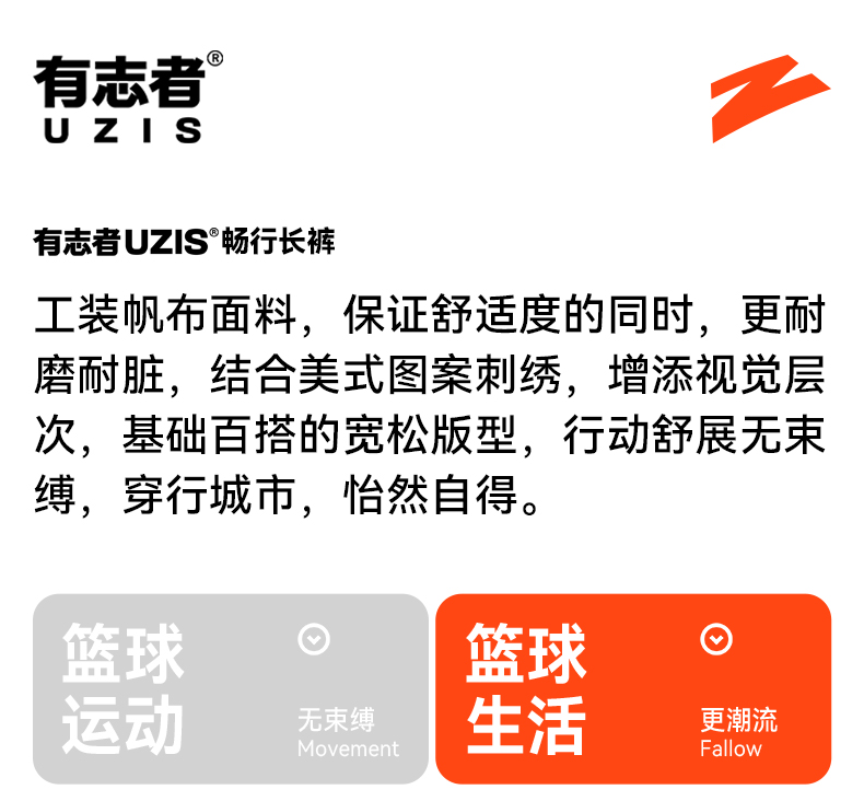 有志者UZIS 篮球运动长裤男复古休闲宽松跑步训练束脚工装裤[畅行