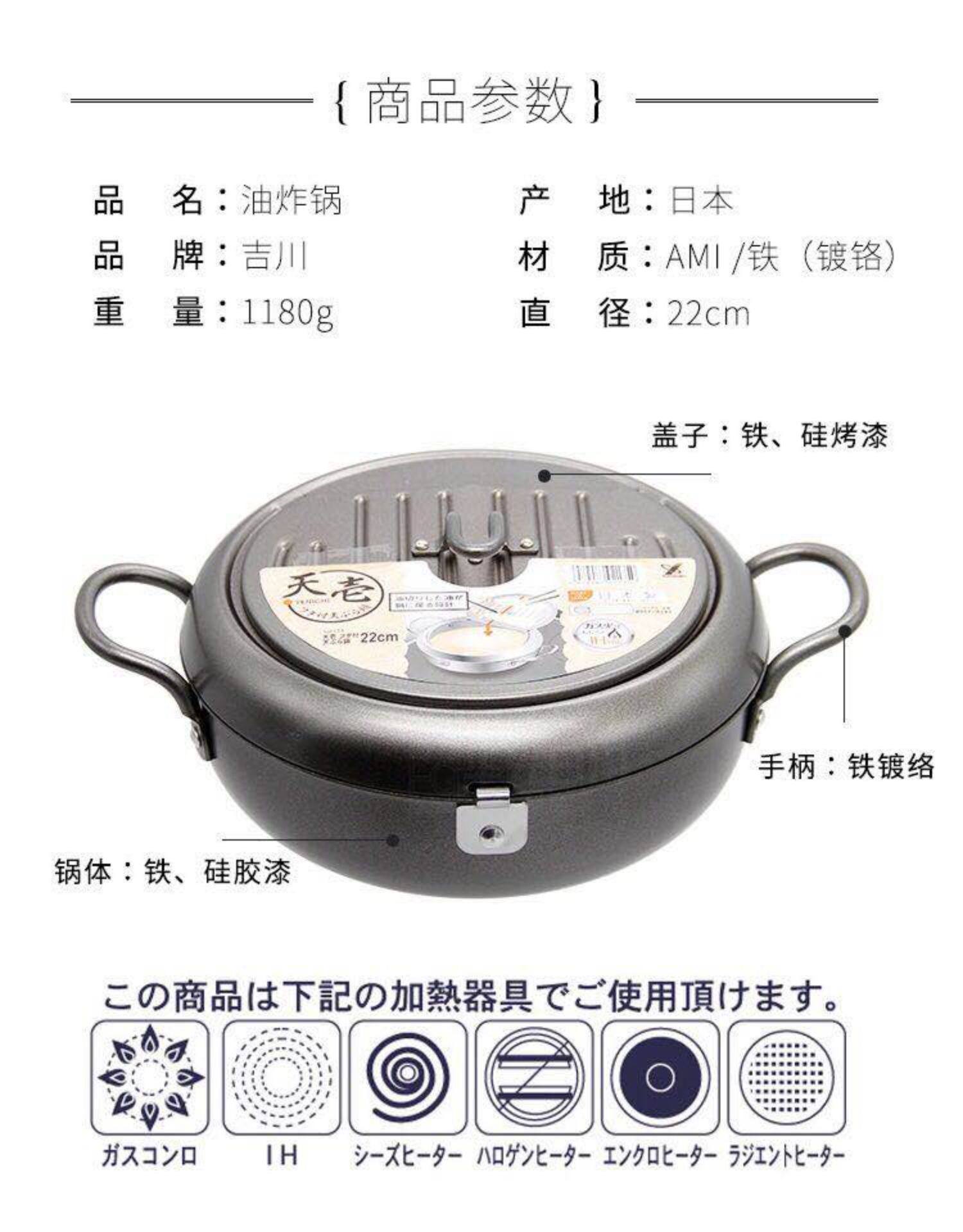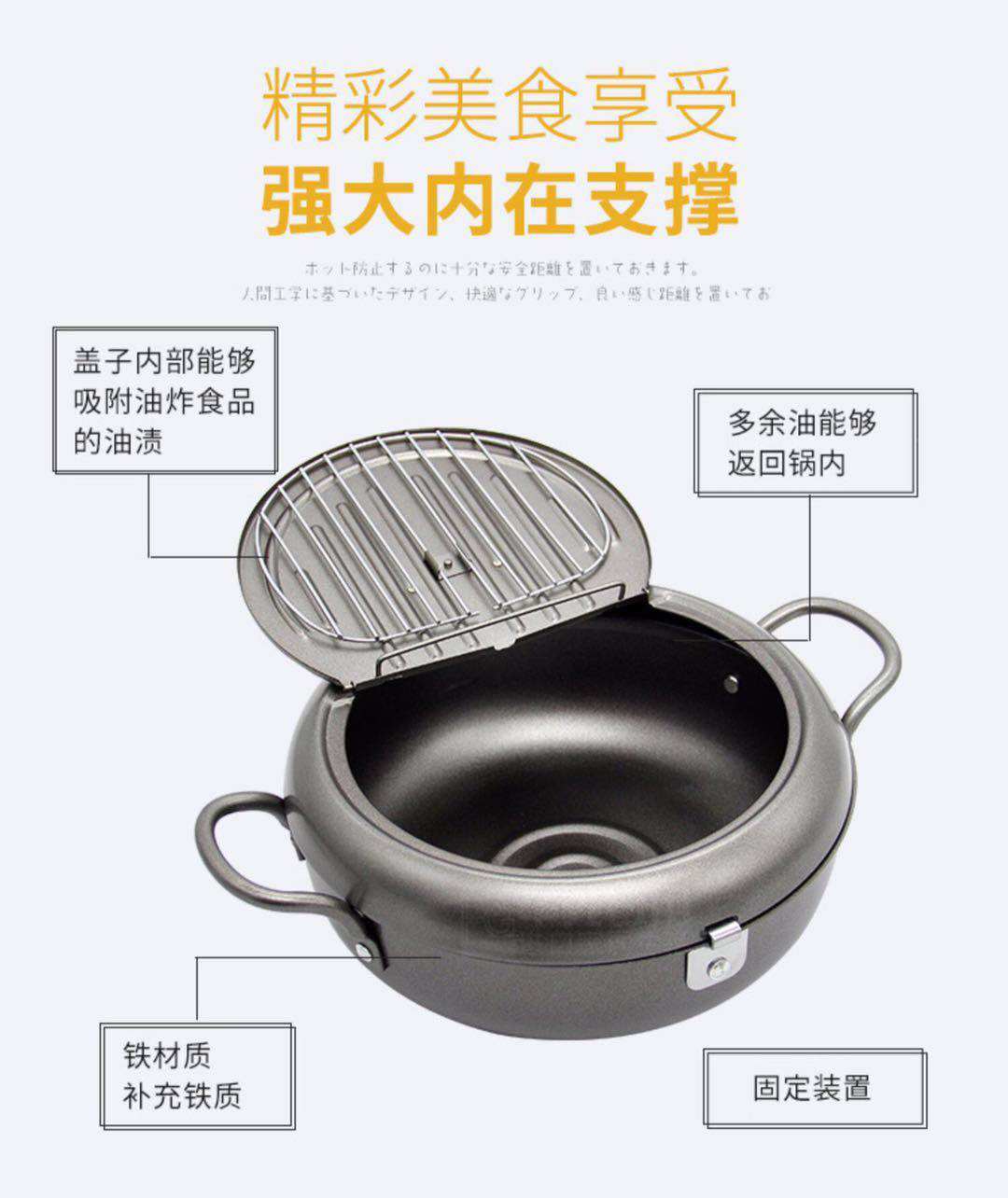 【日本进口油炸锅】原装进口天妇罗炸锅 含滤油架 家用油炸锅