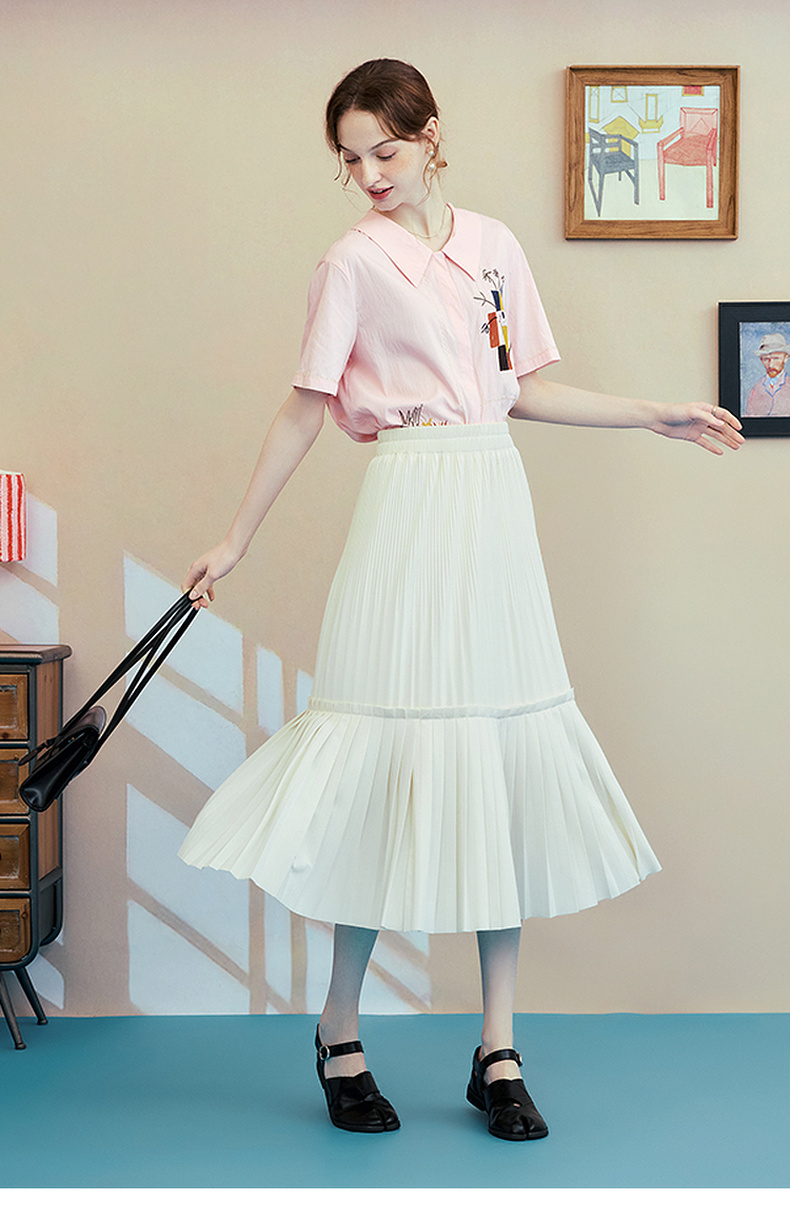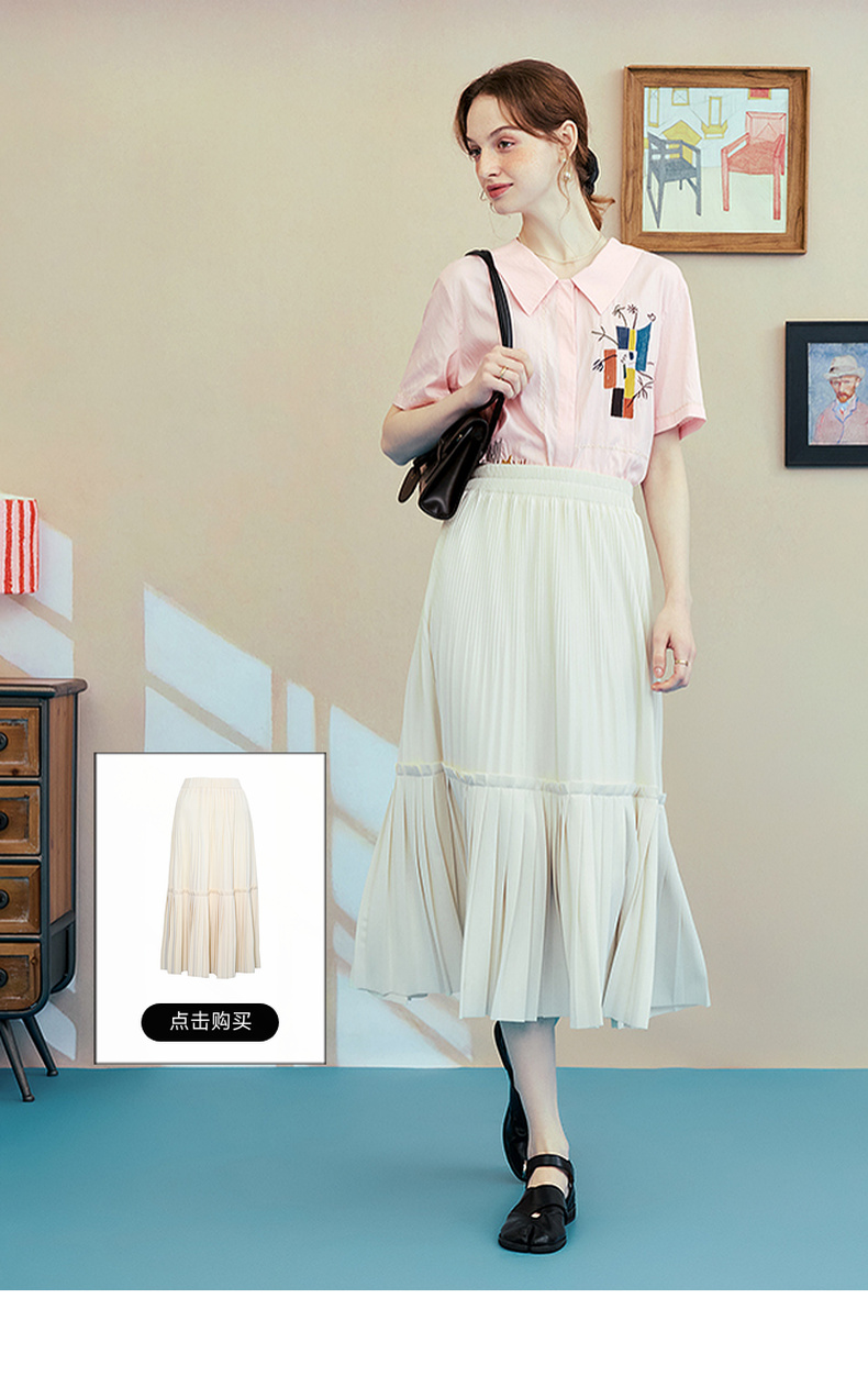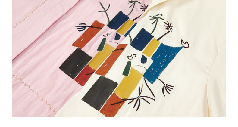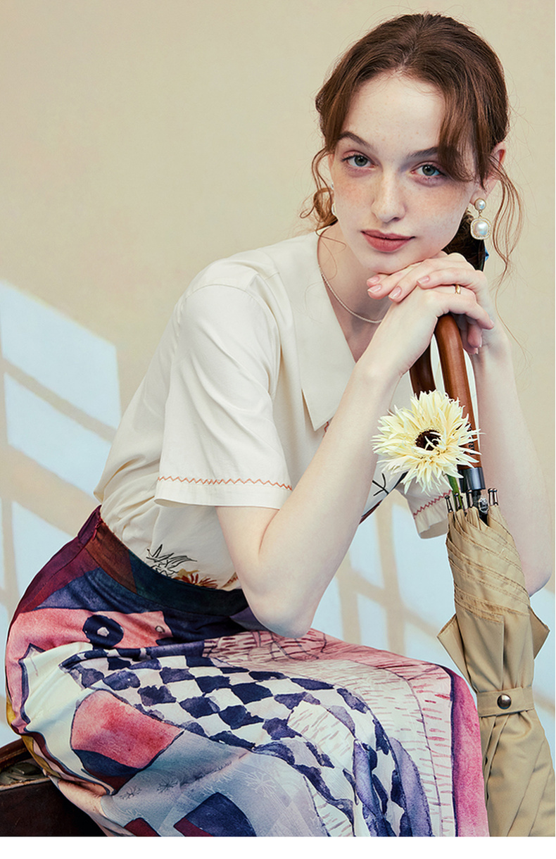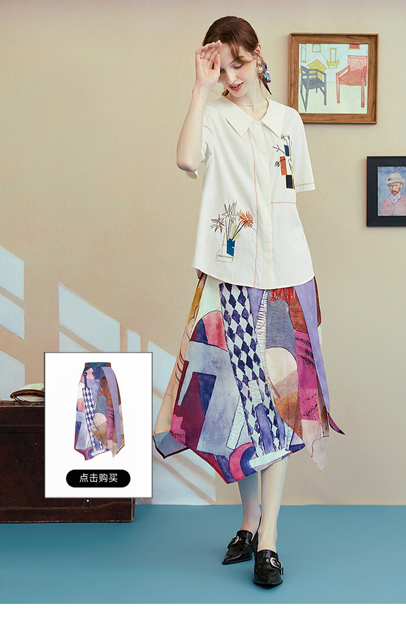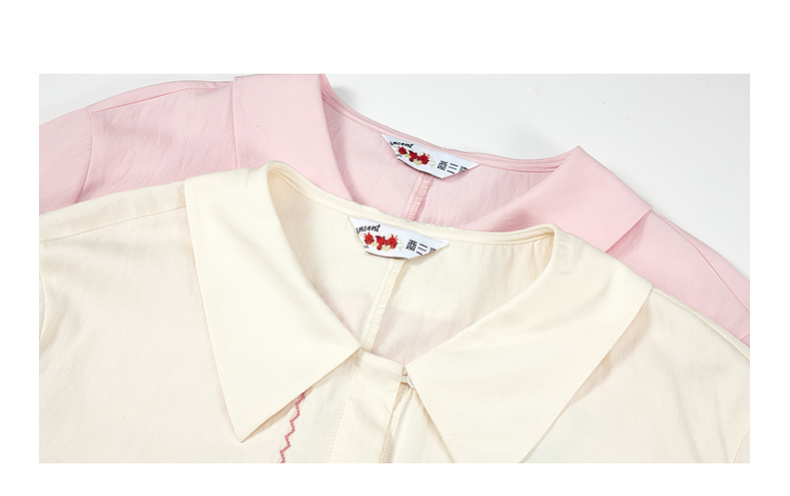 两三事 欧若灵光 2025夏季新款文艺风手绘涂鸦刺绣印花短袖衬衫女