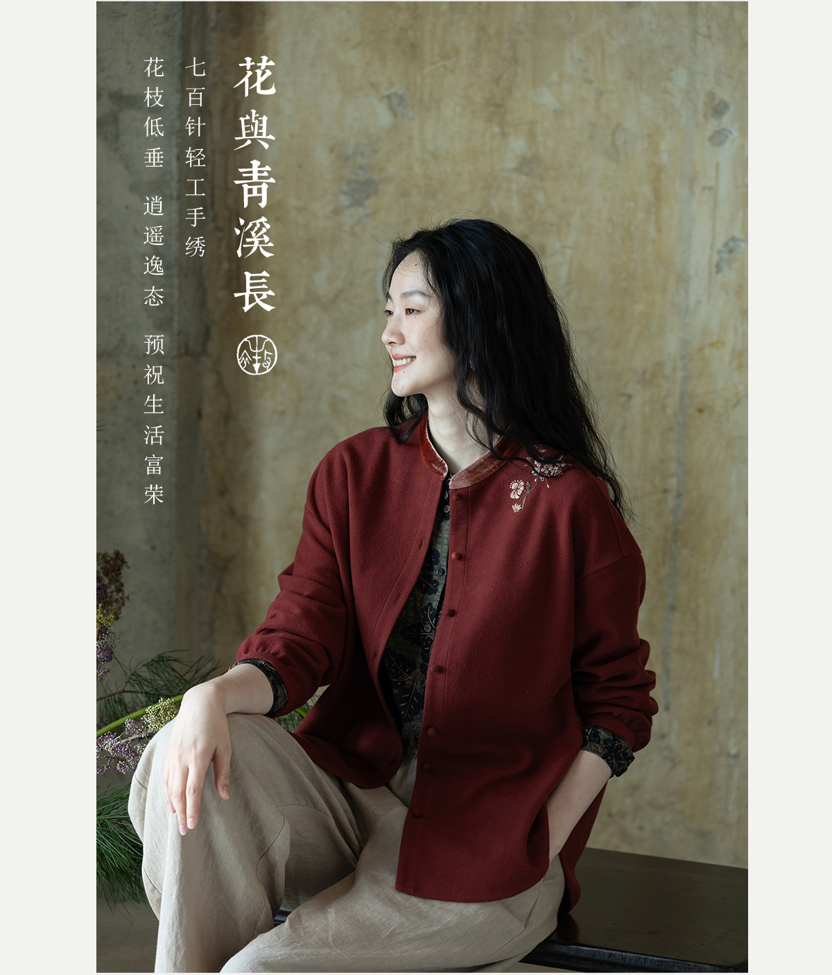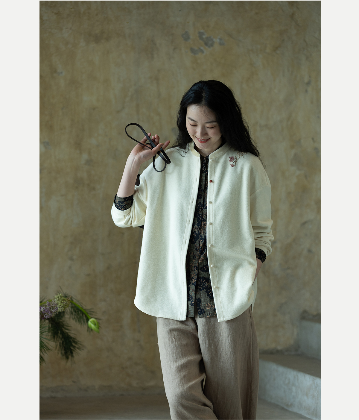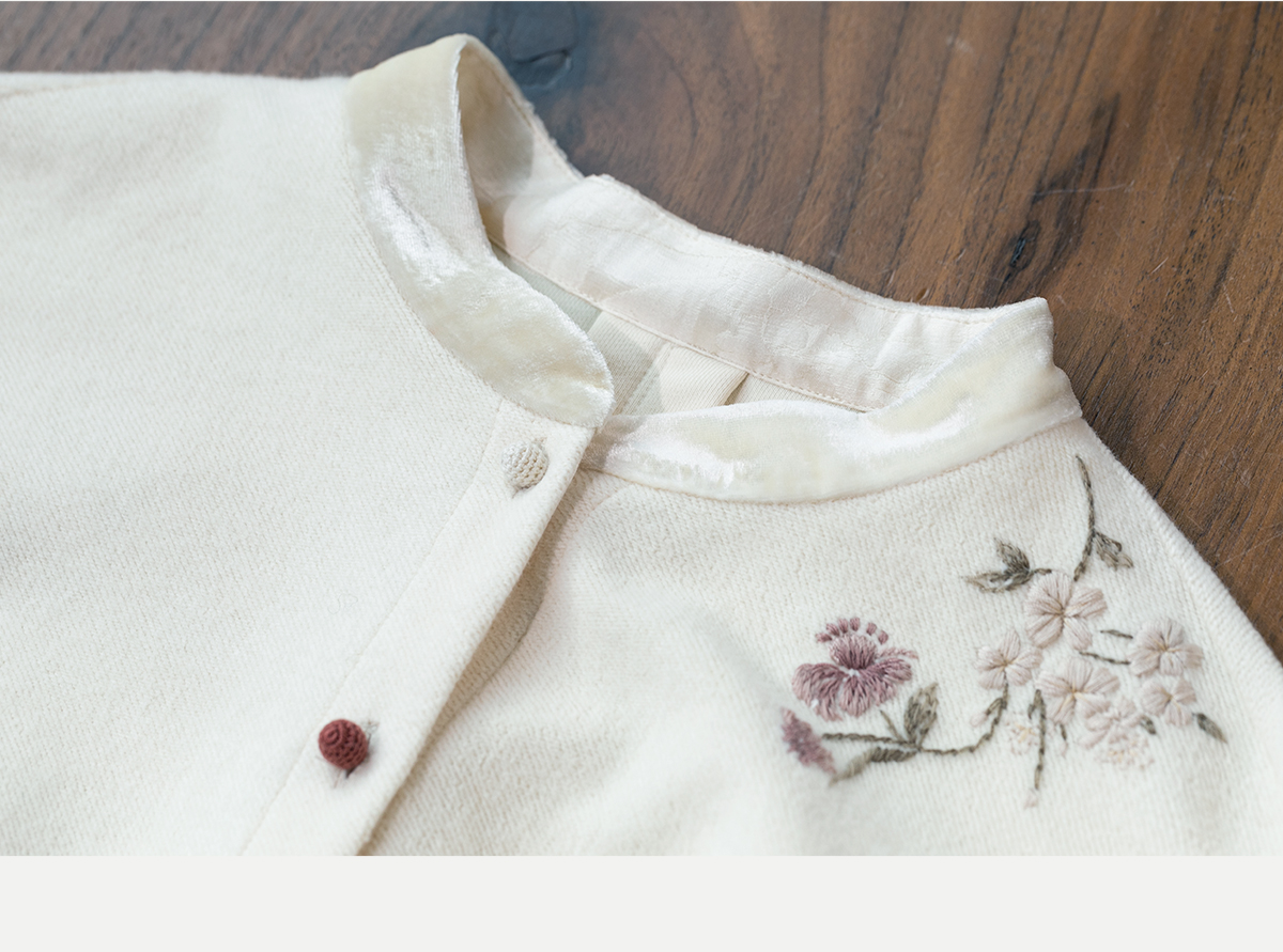 牧衣游原创 舒适棉手工刺绣短外套女秋柔软百搭宽松文艺开衫 珈奈