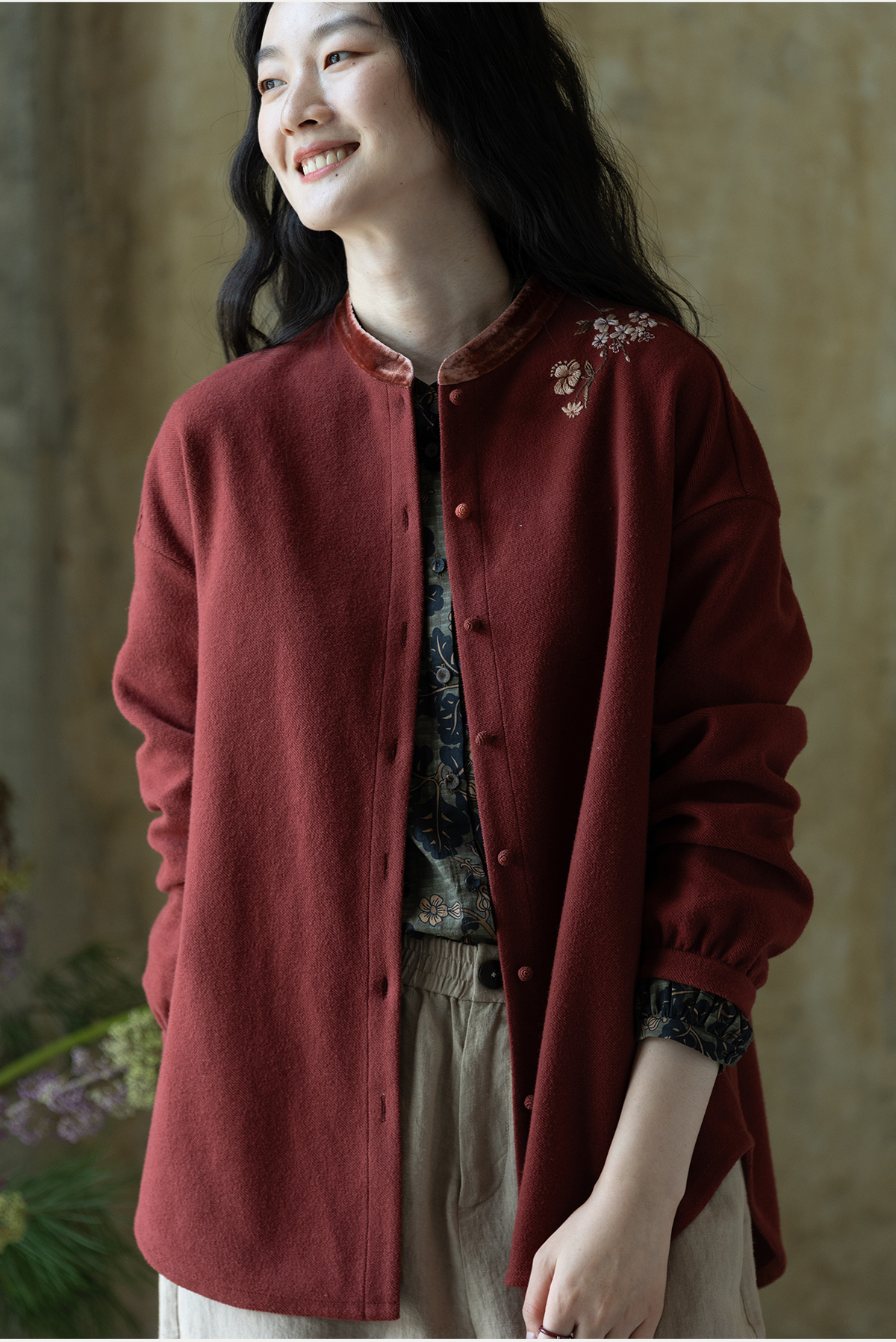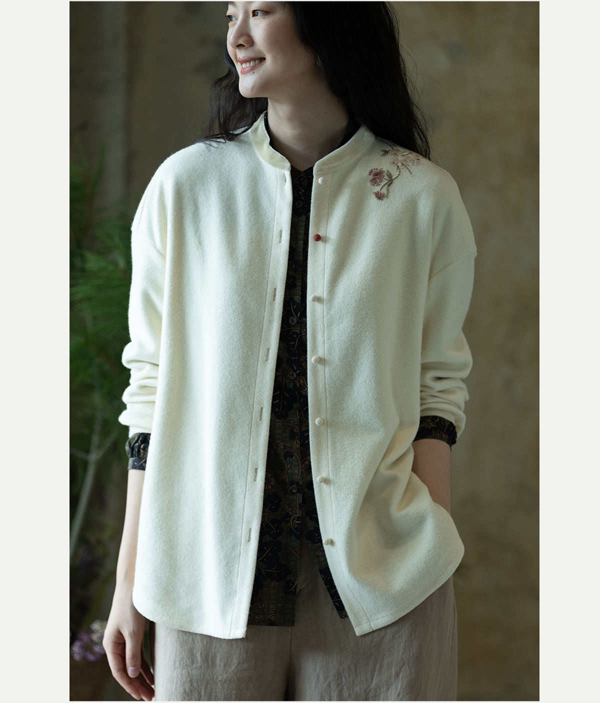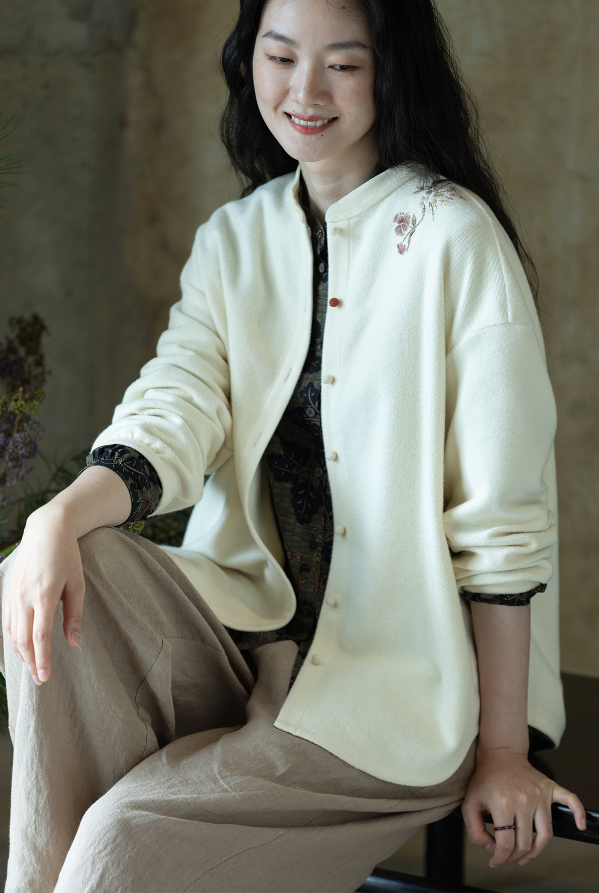 牧衣游原创 舒适棉手工刺绣短外套女秋柔软百搭宽松文艺开衫 珈奈