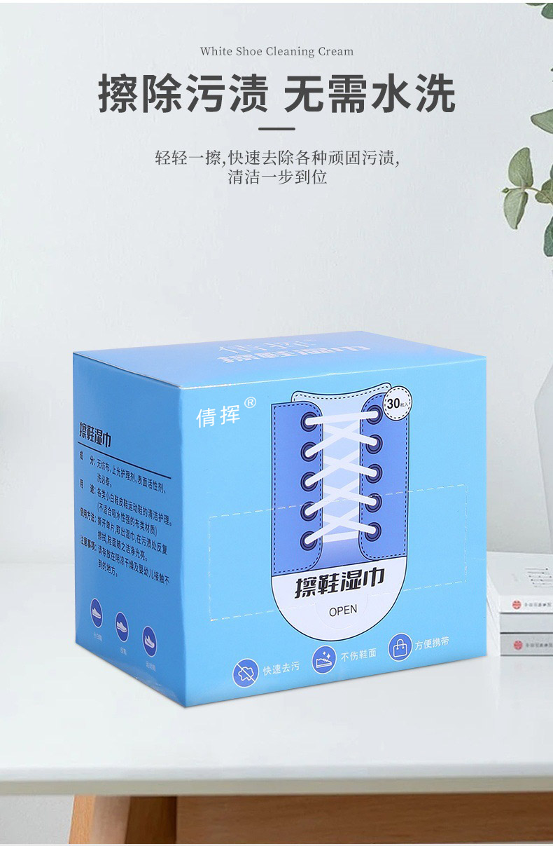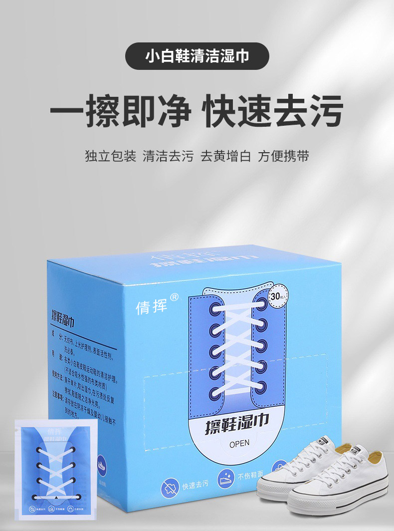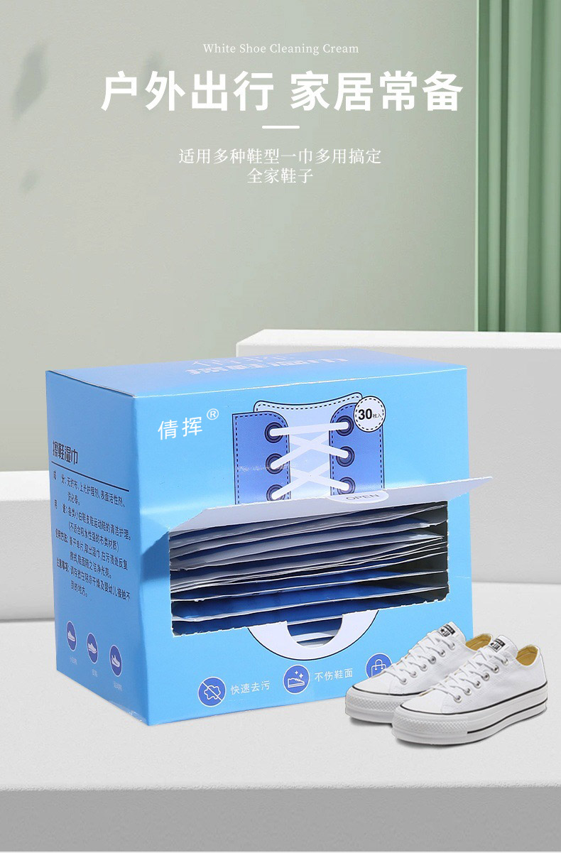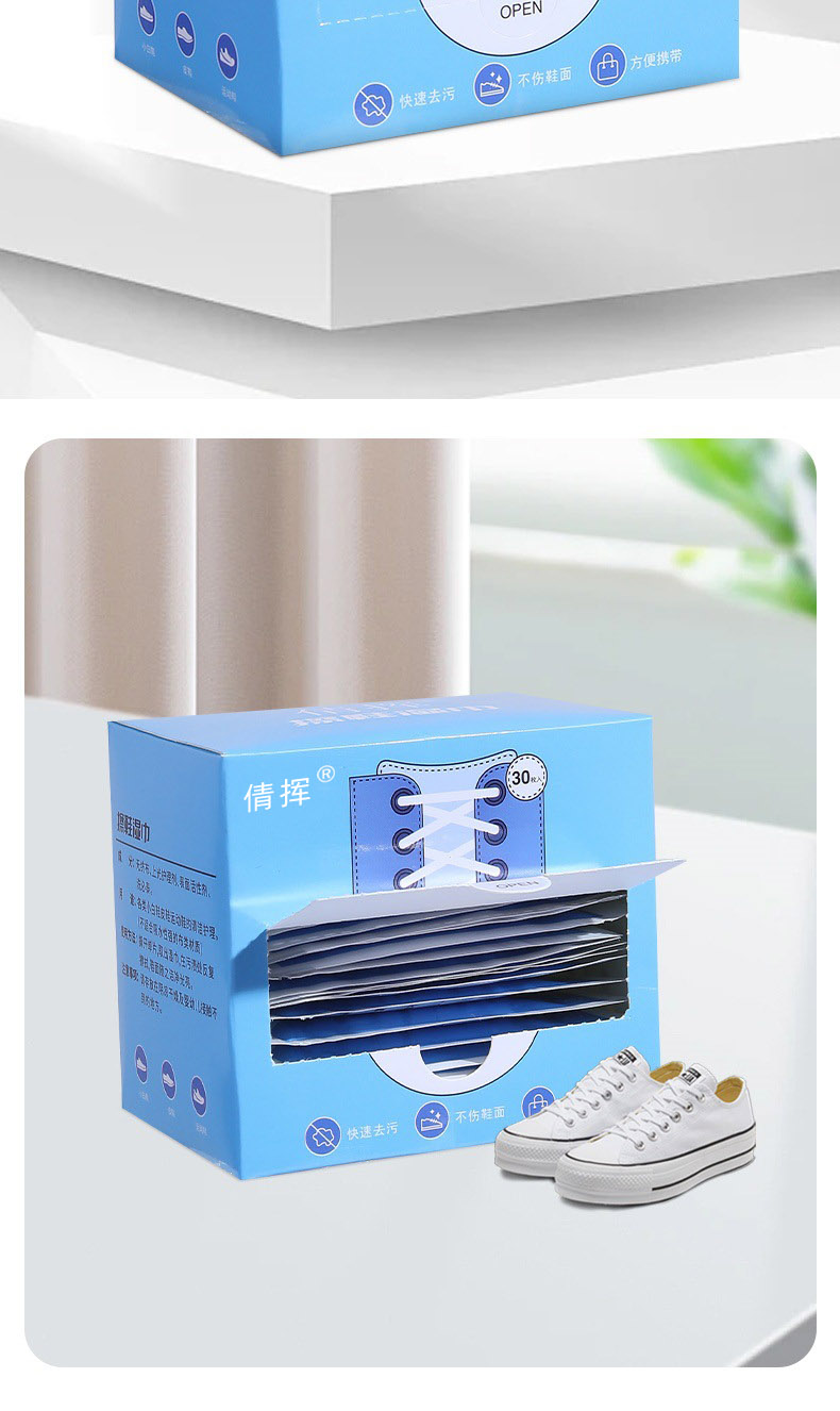倩挥 小白鞋擦鞋湿巾盒装 运动鞋一次性清洁湿巾便携擦鞋巾擦鞋网红独立包装深层清洁