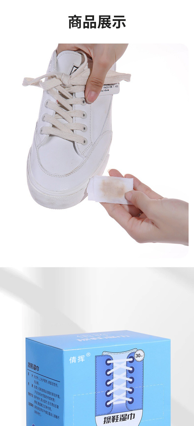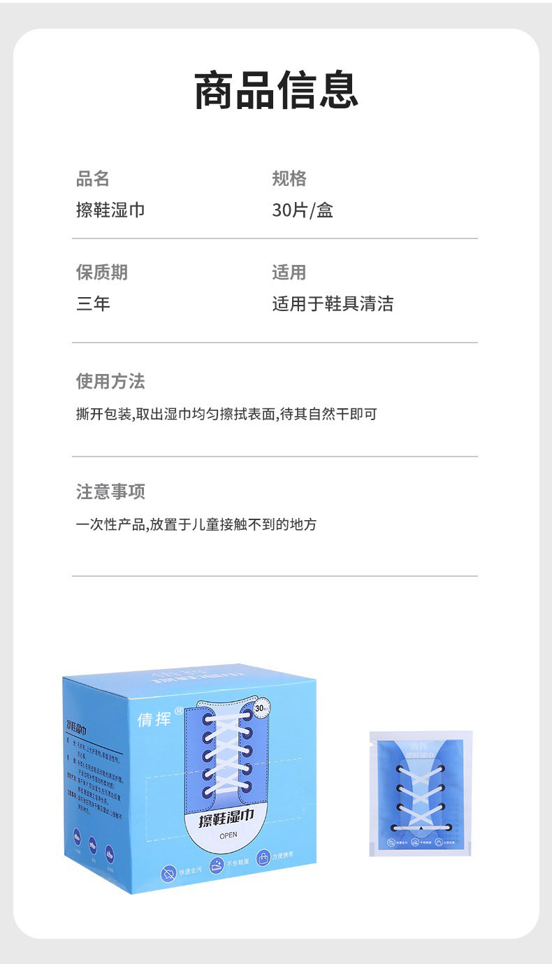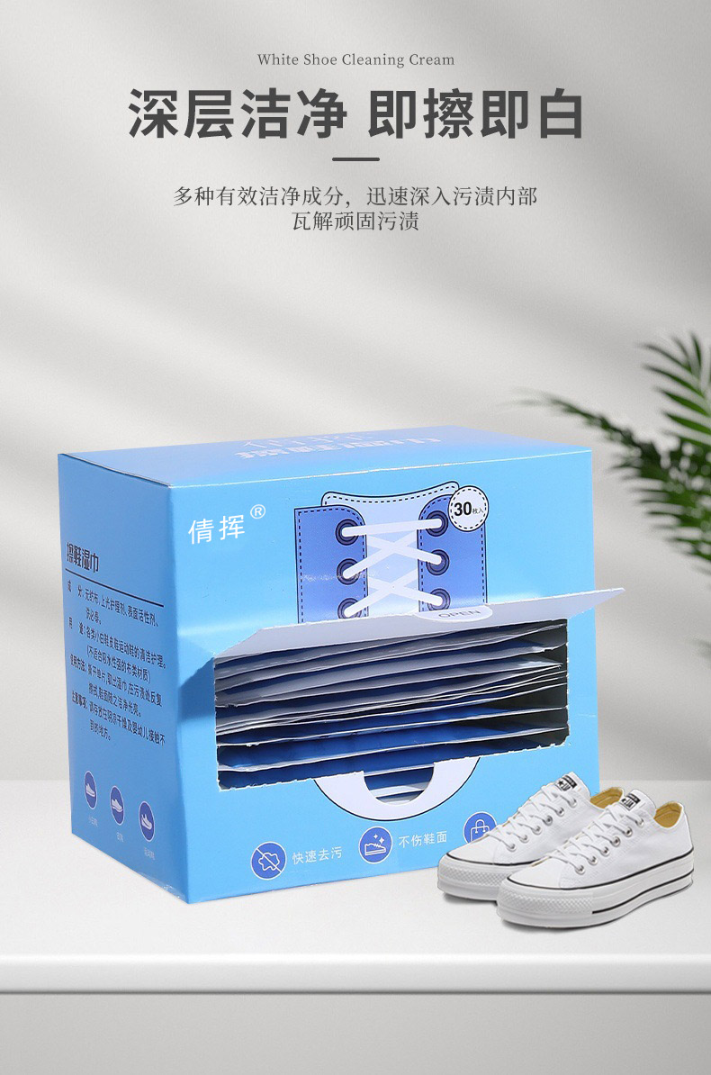 倩挥 小白鞋擦鞋湿巾盒装 运动鞋一次性清洁湿巾便携擦鞋巾擦鞋网红独立包装深层清洁
