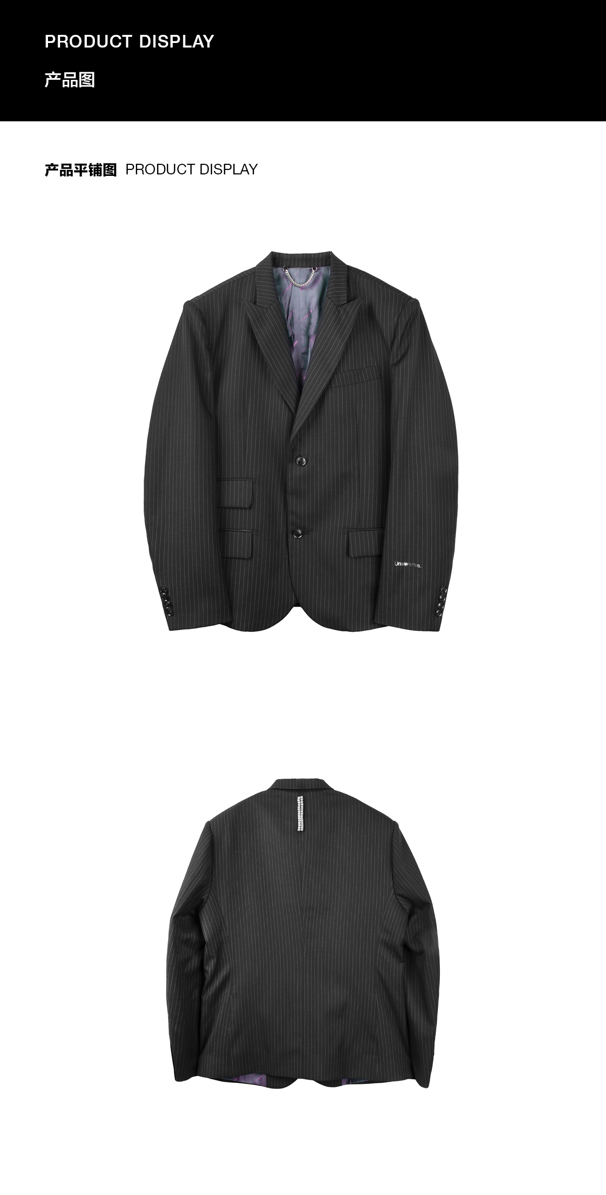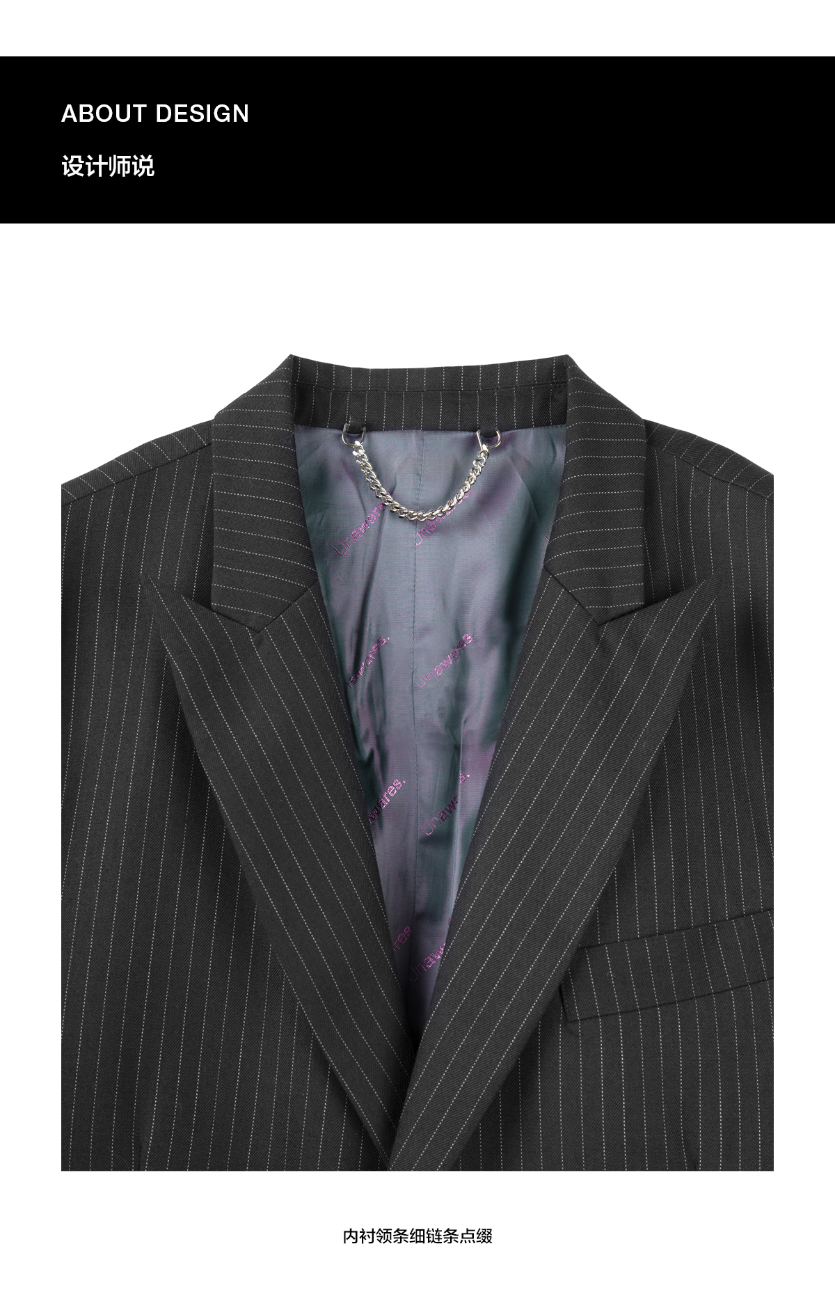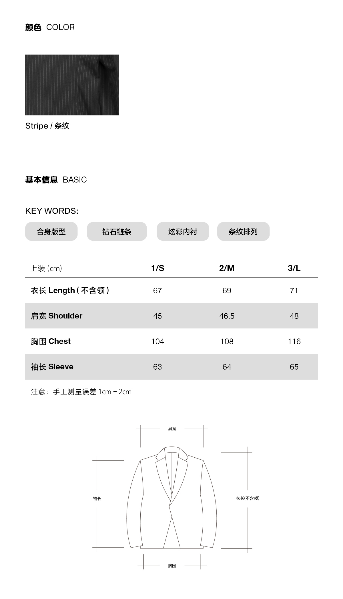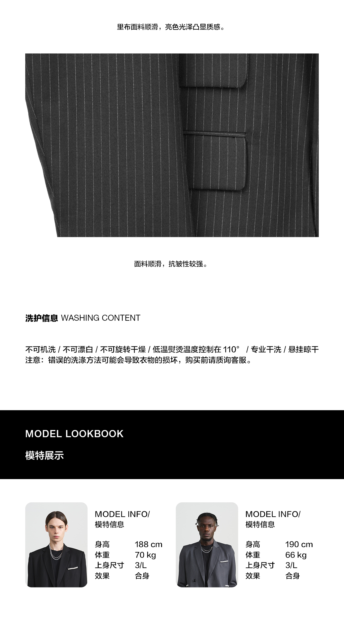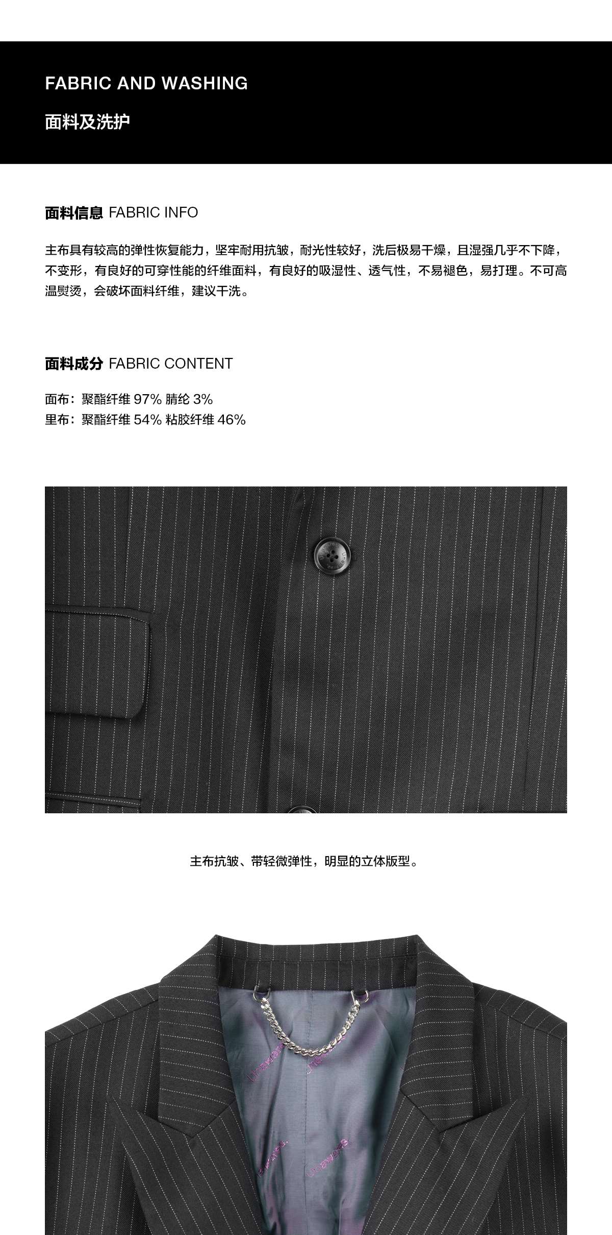 | 衣门襟: 一粒单排扣 | 颜色: STRIPE/黑色条纹 |