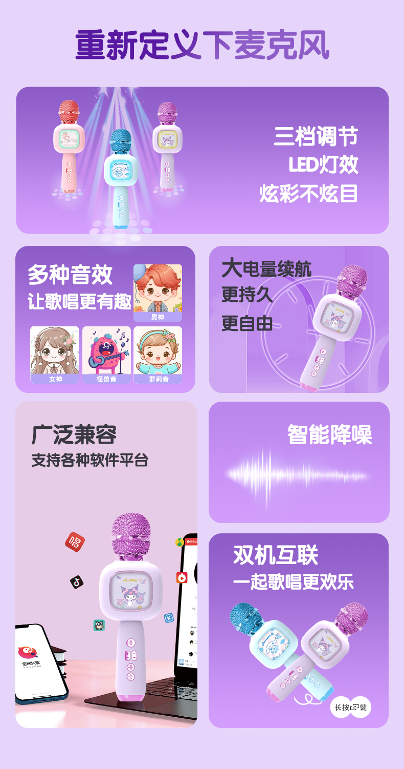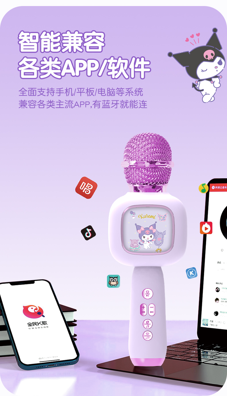 儿童三丽鸥小话筒音响麦克风一体卡拉ok唱歌音乐早教唱歌宝宝玩具