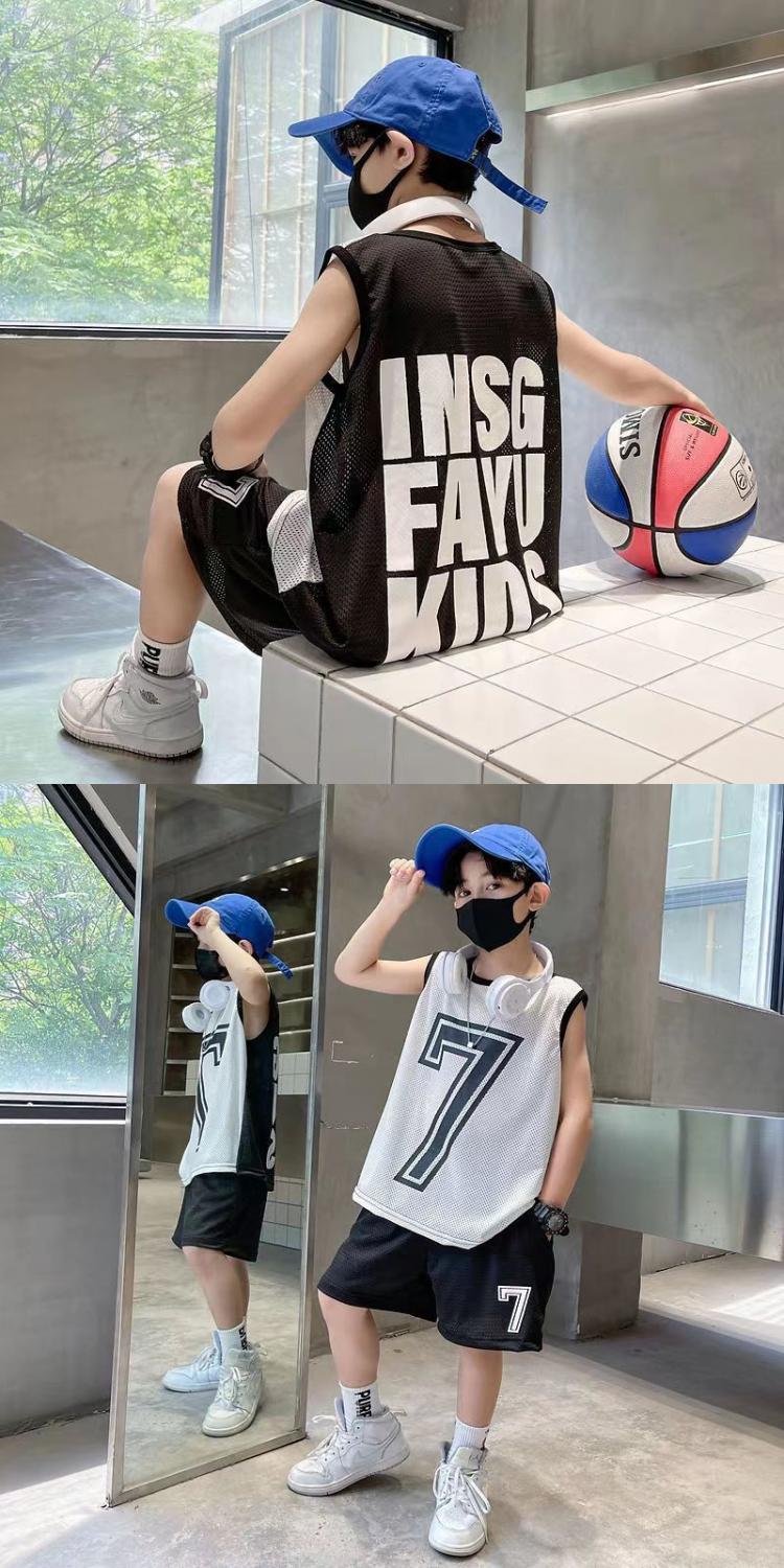【男童夏季背心无袖套装速干篮球服】2023新款儿童夏装运动炸街酷帅,凉爽透气速干排汗sh