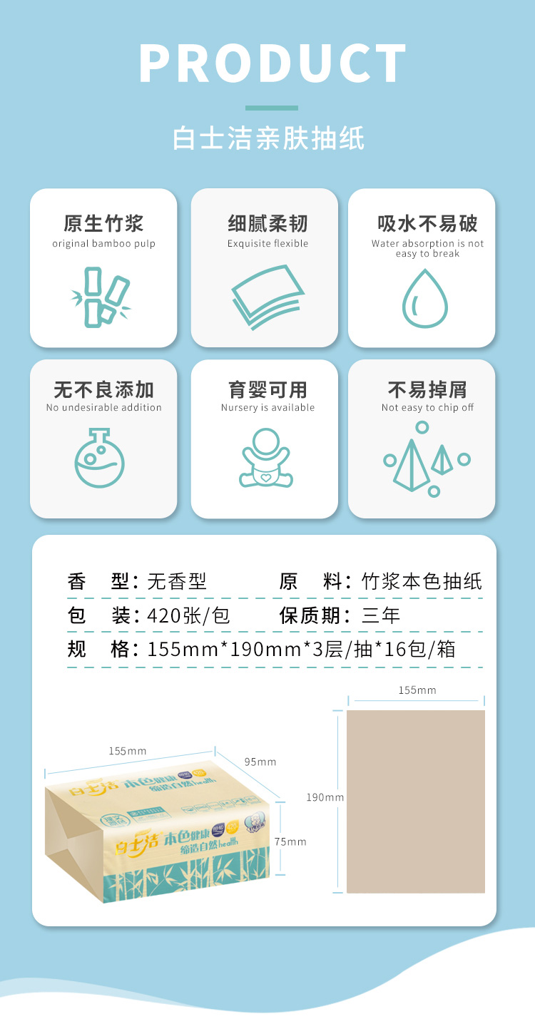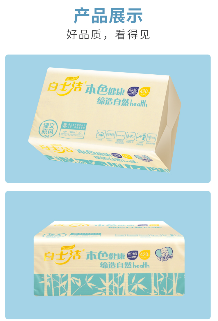 白士洁 | 竹浆品质抽纸420张 16包