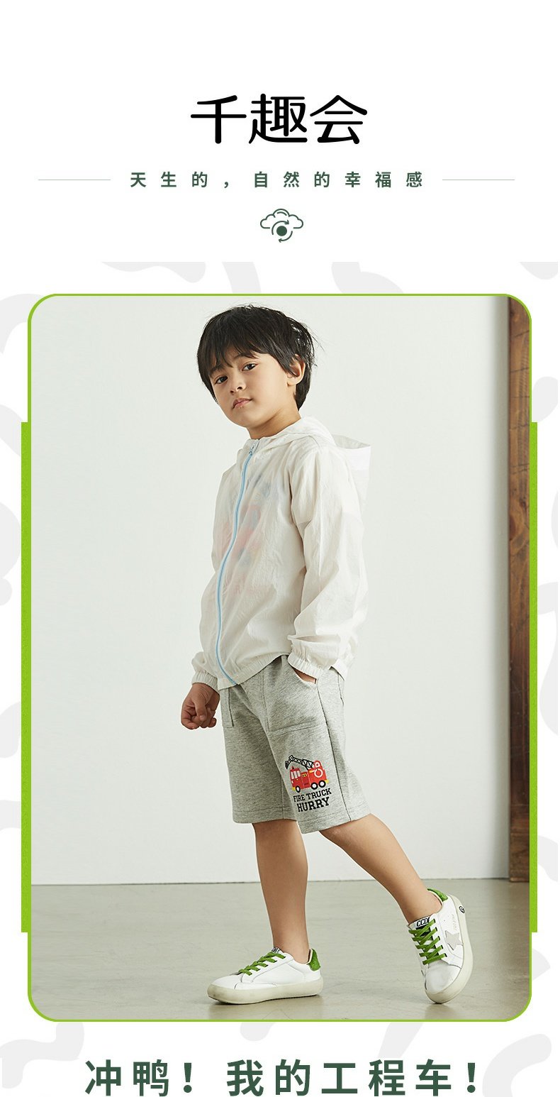 千趣会童装夏季中小童五分裤工程车全棉时尚透气男童短裤中裤