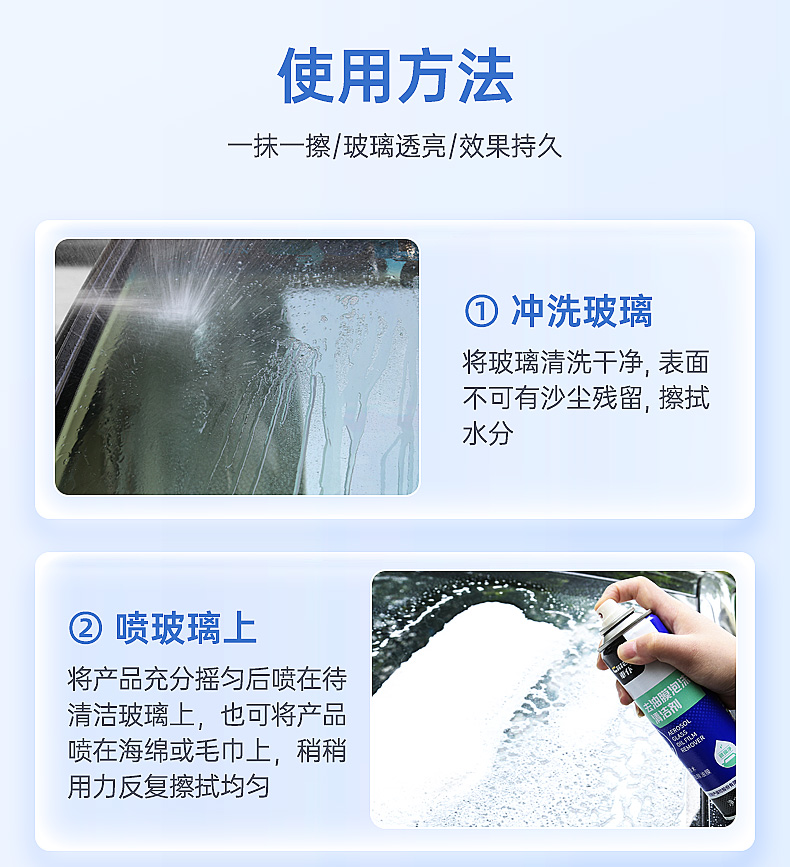 车仆油膜清洁剂清洗汽车前挡风玻璃车窗玻璃去油污泡沫清洁剂