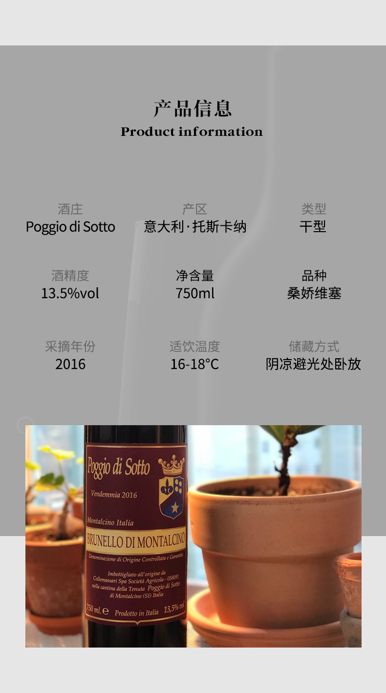Poggio di Sotto意大利索托丘布鲁奈罗珍藏干红葡萄酒2015年