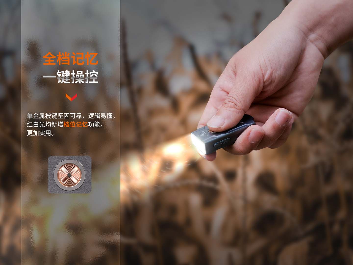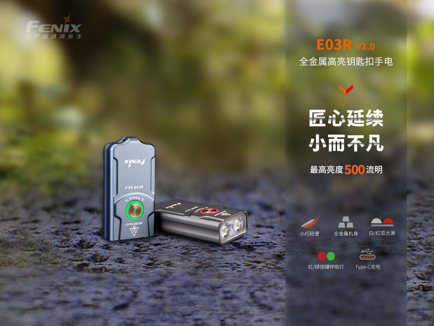 Fenix菲尼克斯E03R V2.0钥匙扣小手电Type-c充电口EDC日常家用便携高亮手电筒