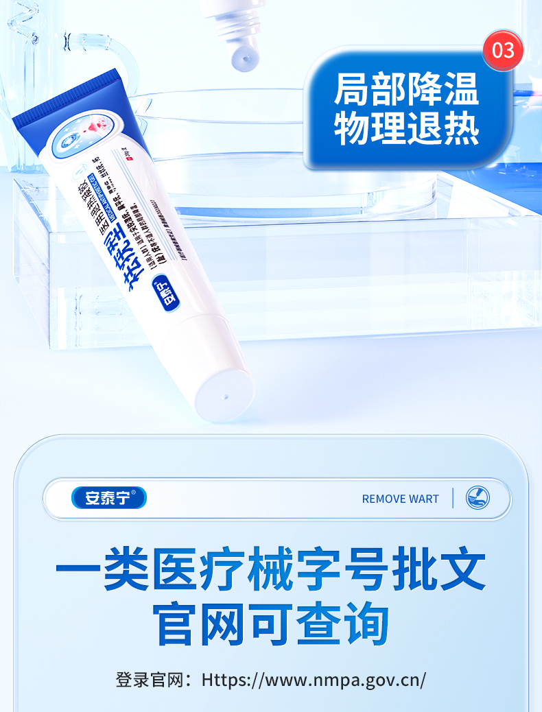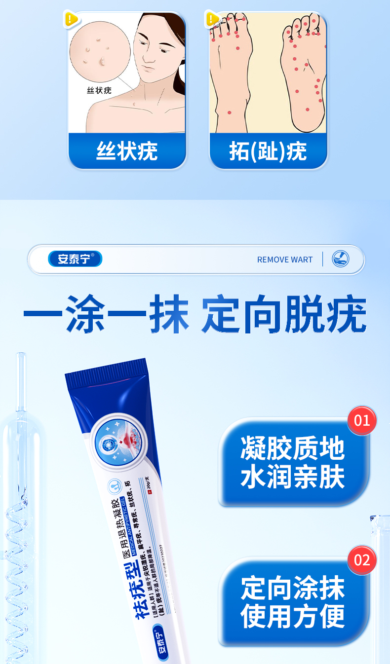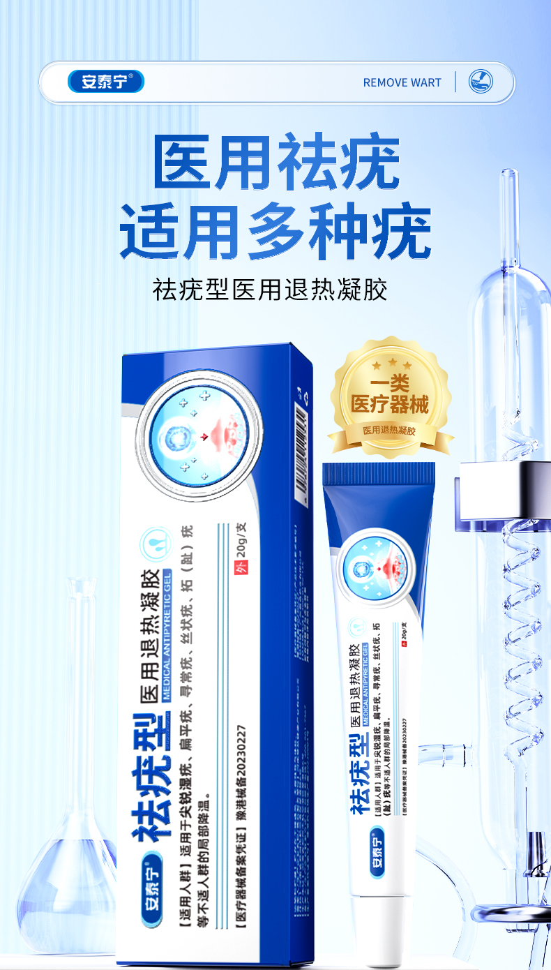 安泰宁祛疣型医用退热凝胶尤净疣清宁乳膏扁平疣去除膏寻常跖疣