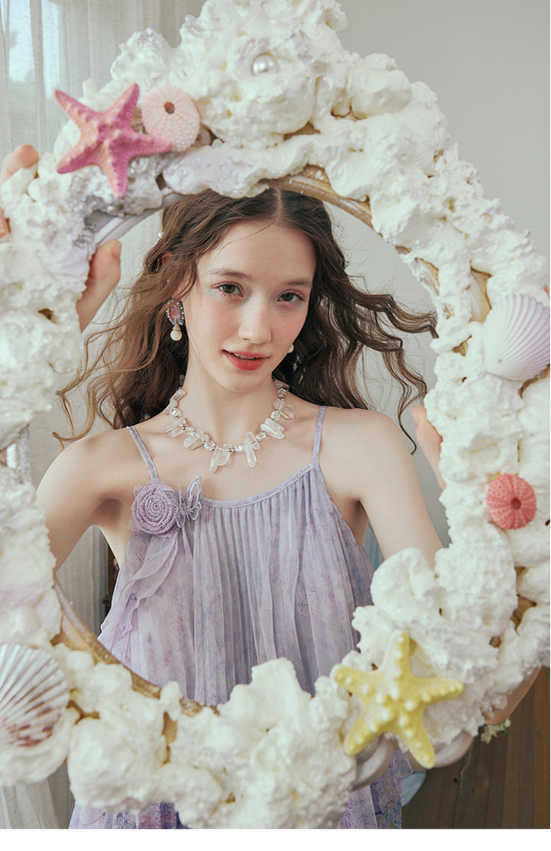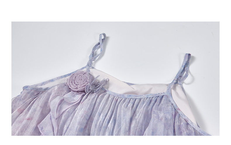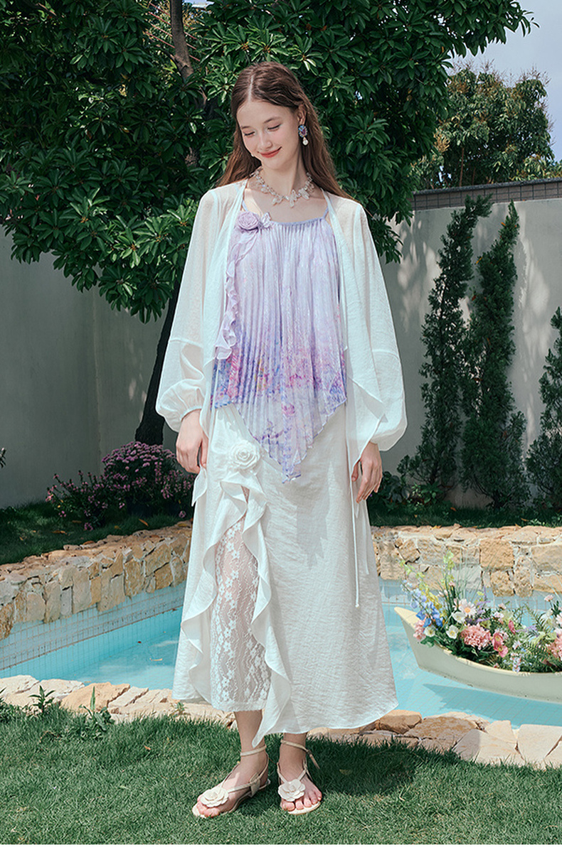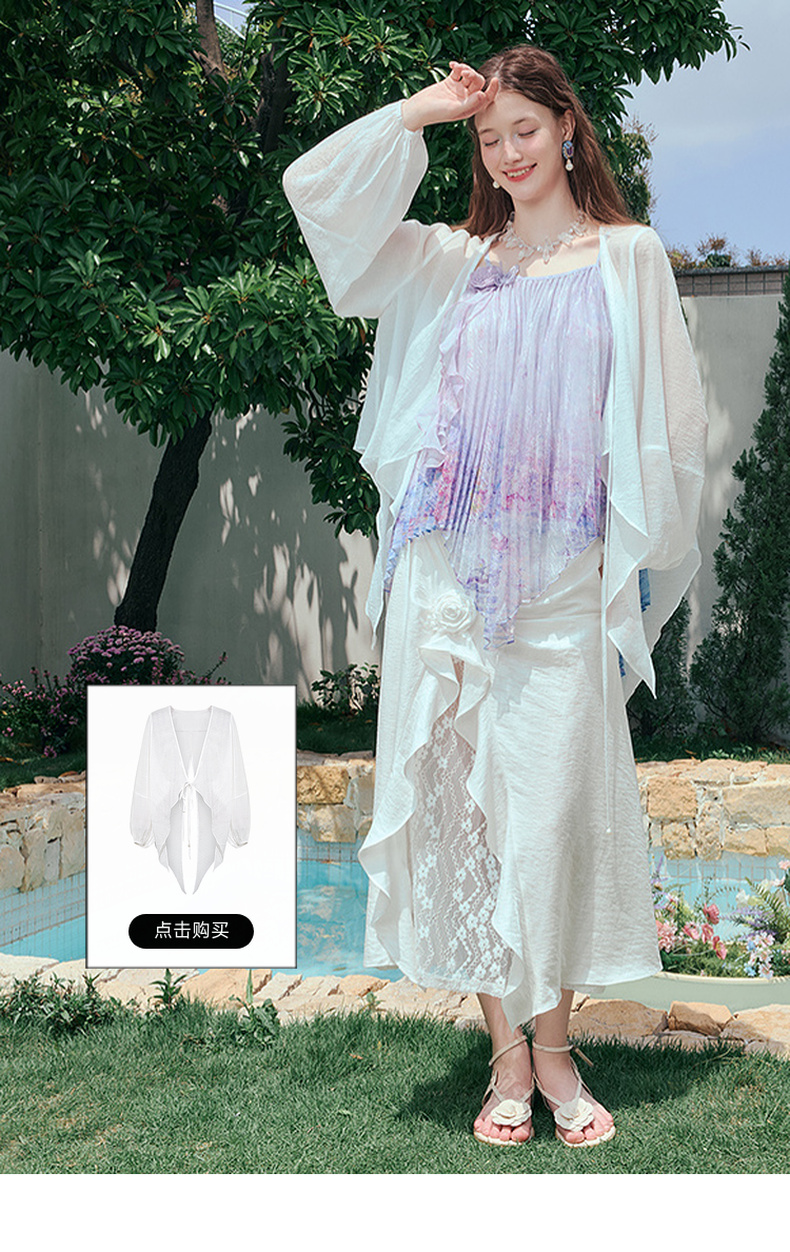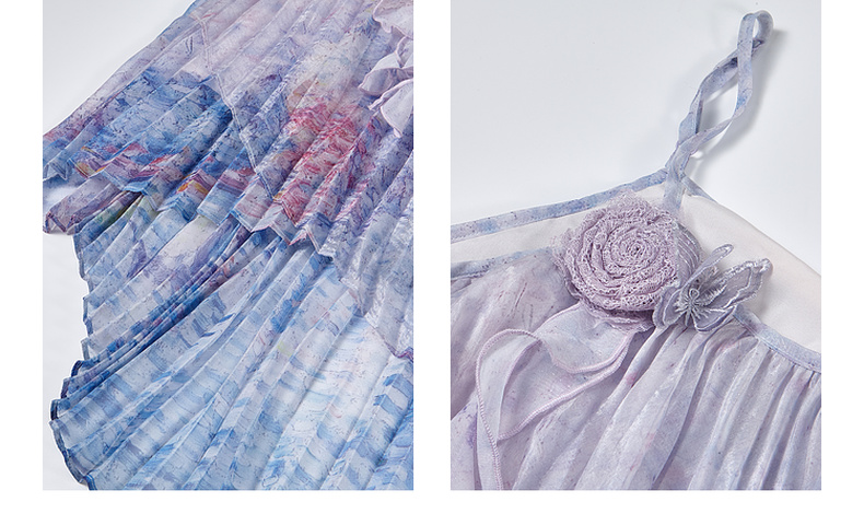 两三事繁花藏夏2025夏新款小清新立体花朵压褶不规则印花吊带衫女