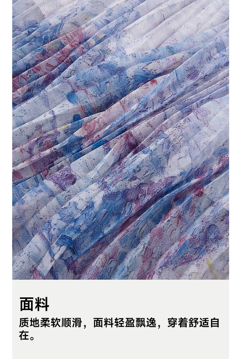 两三事梵高艺术花也谈情夏季压褶拼接印花两面穿雪纺衫女