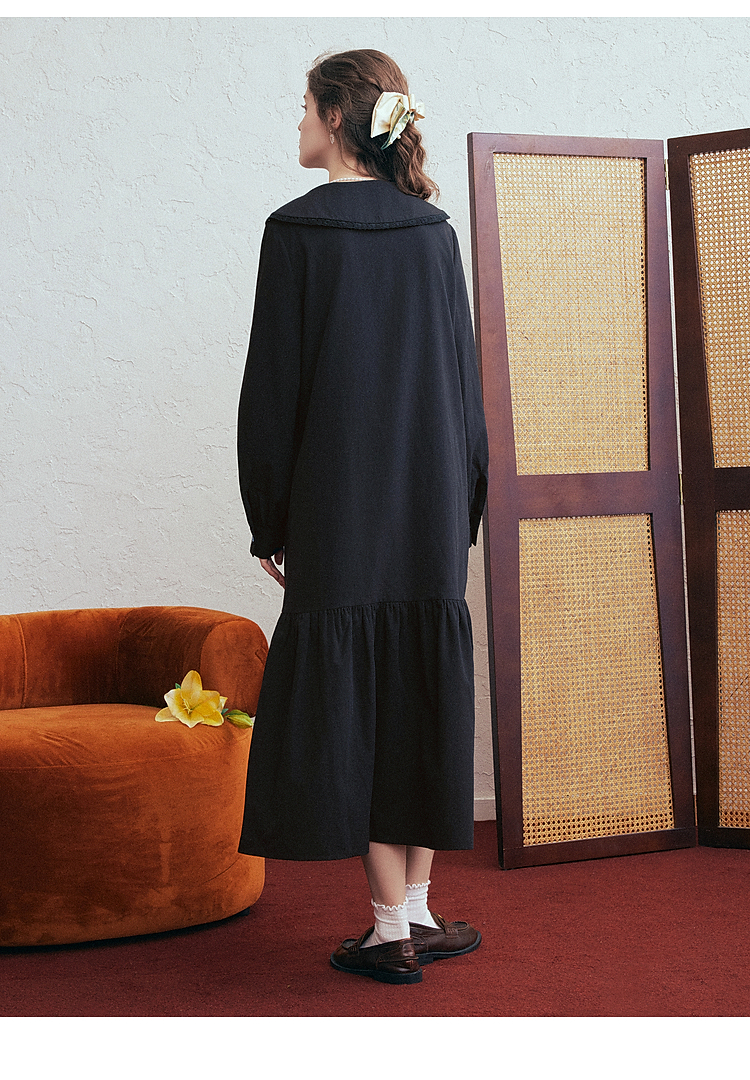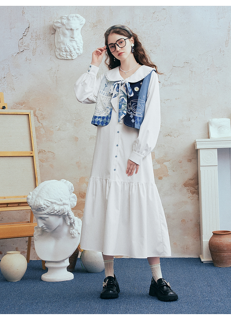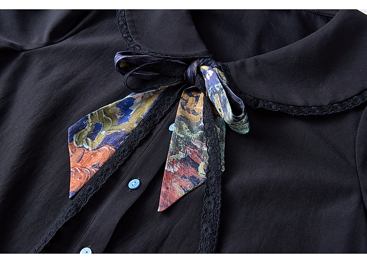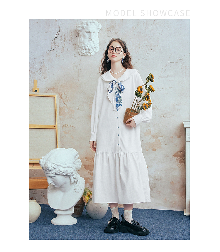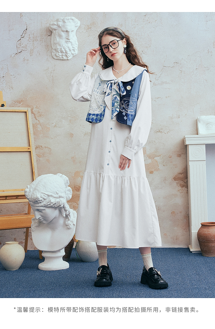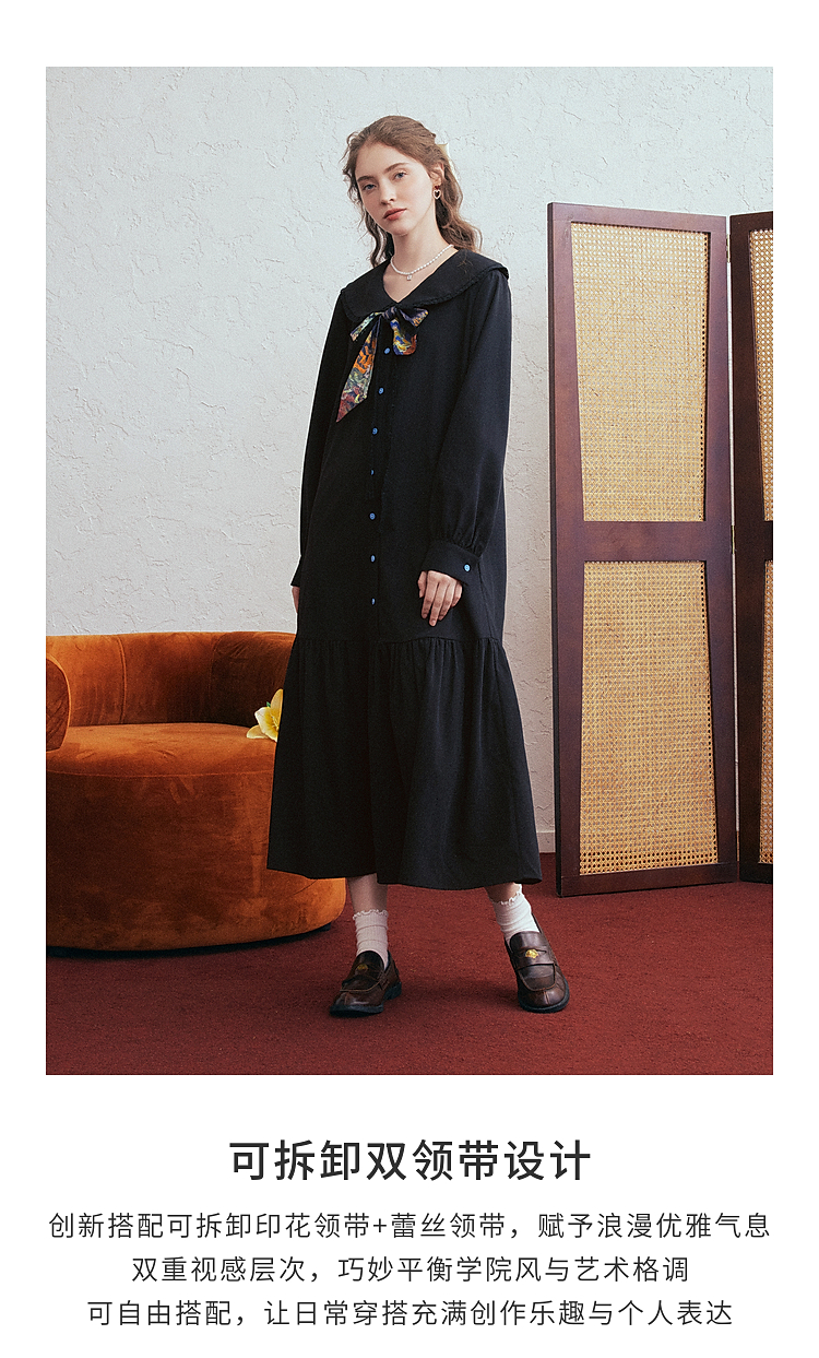 两三事 油画栀子 2026春季新款温柔风印花绑带单排扣衬衫裙连衣裙