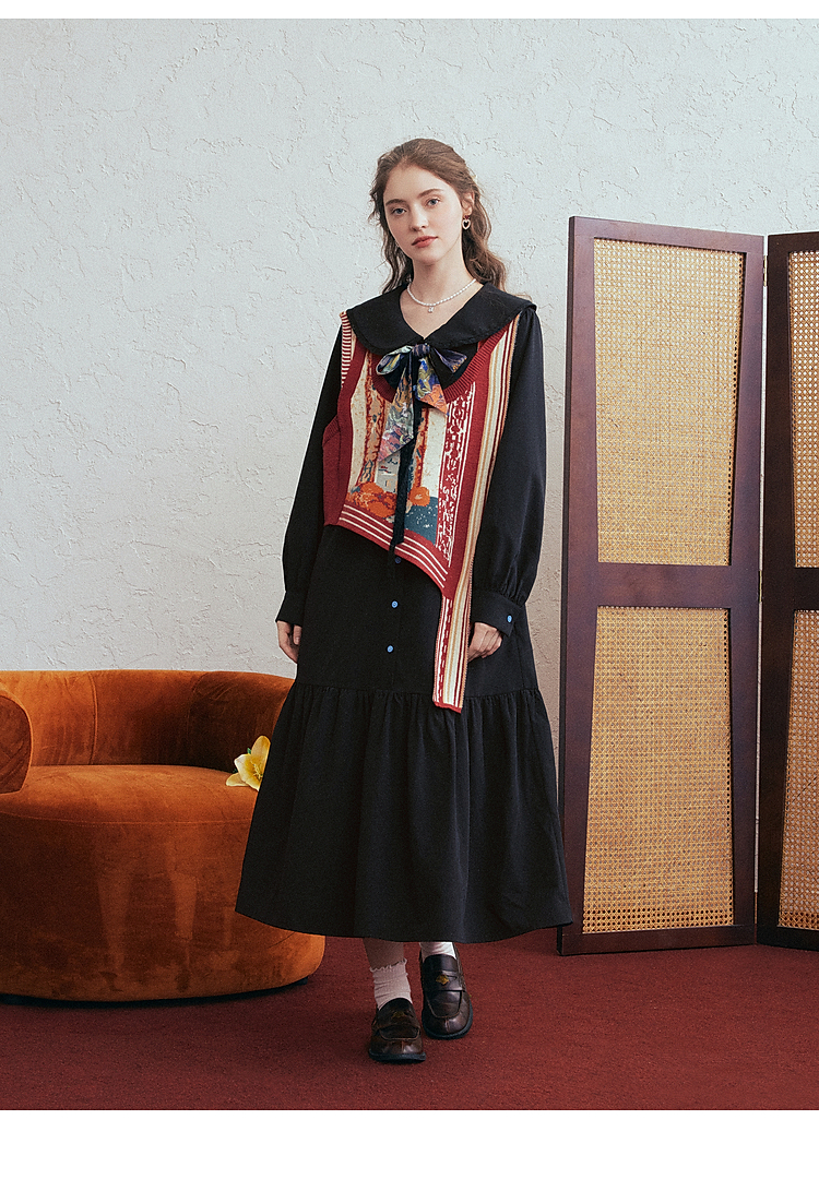 两三事梵高系列静美如秋叶冬新款无袖短款毛衣背心女复古慵懒